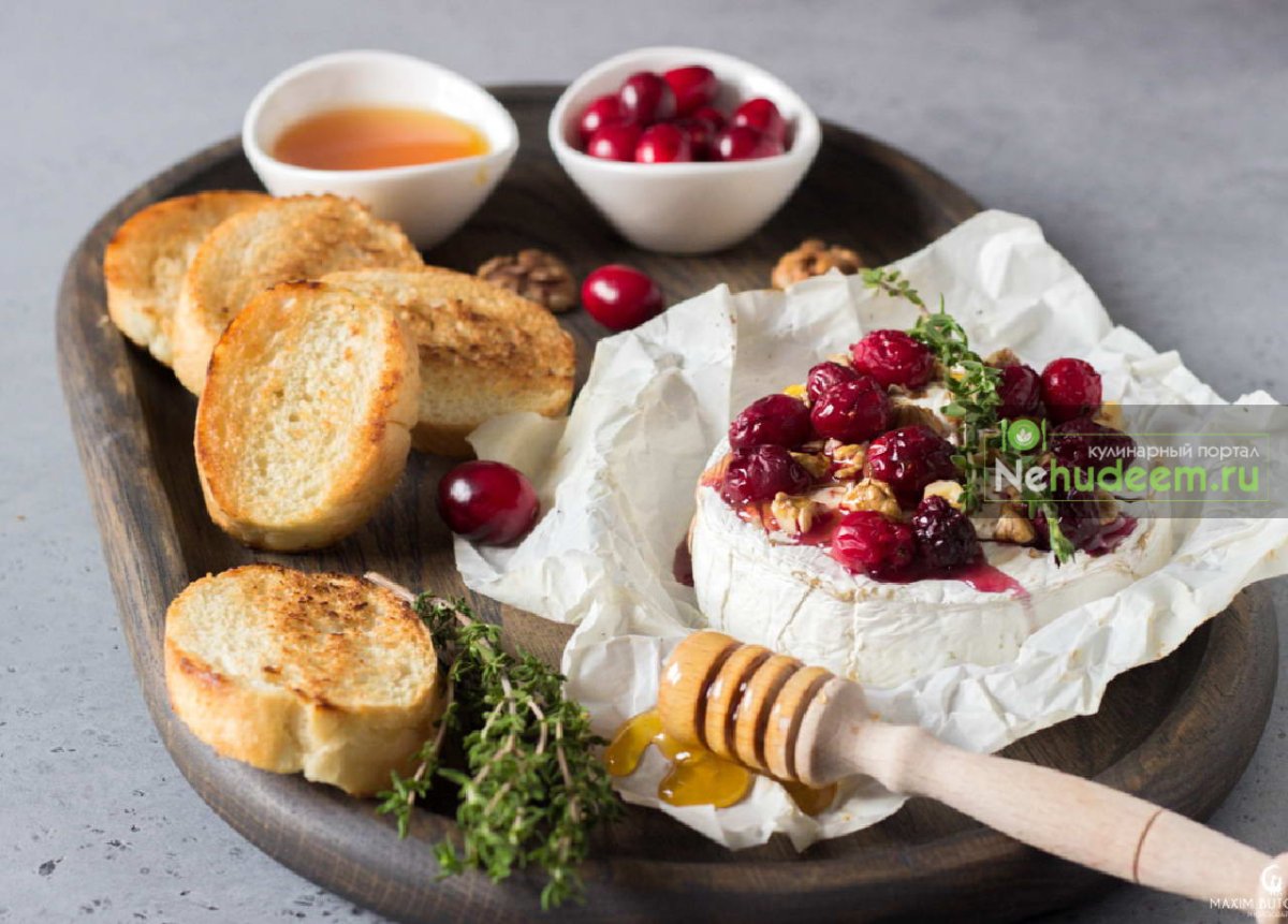 Запеченный камамбер с клюквой