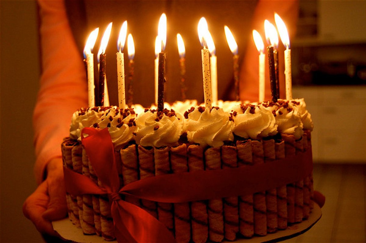 Очень большой торт со свечами
