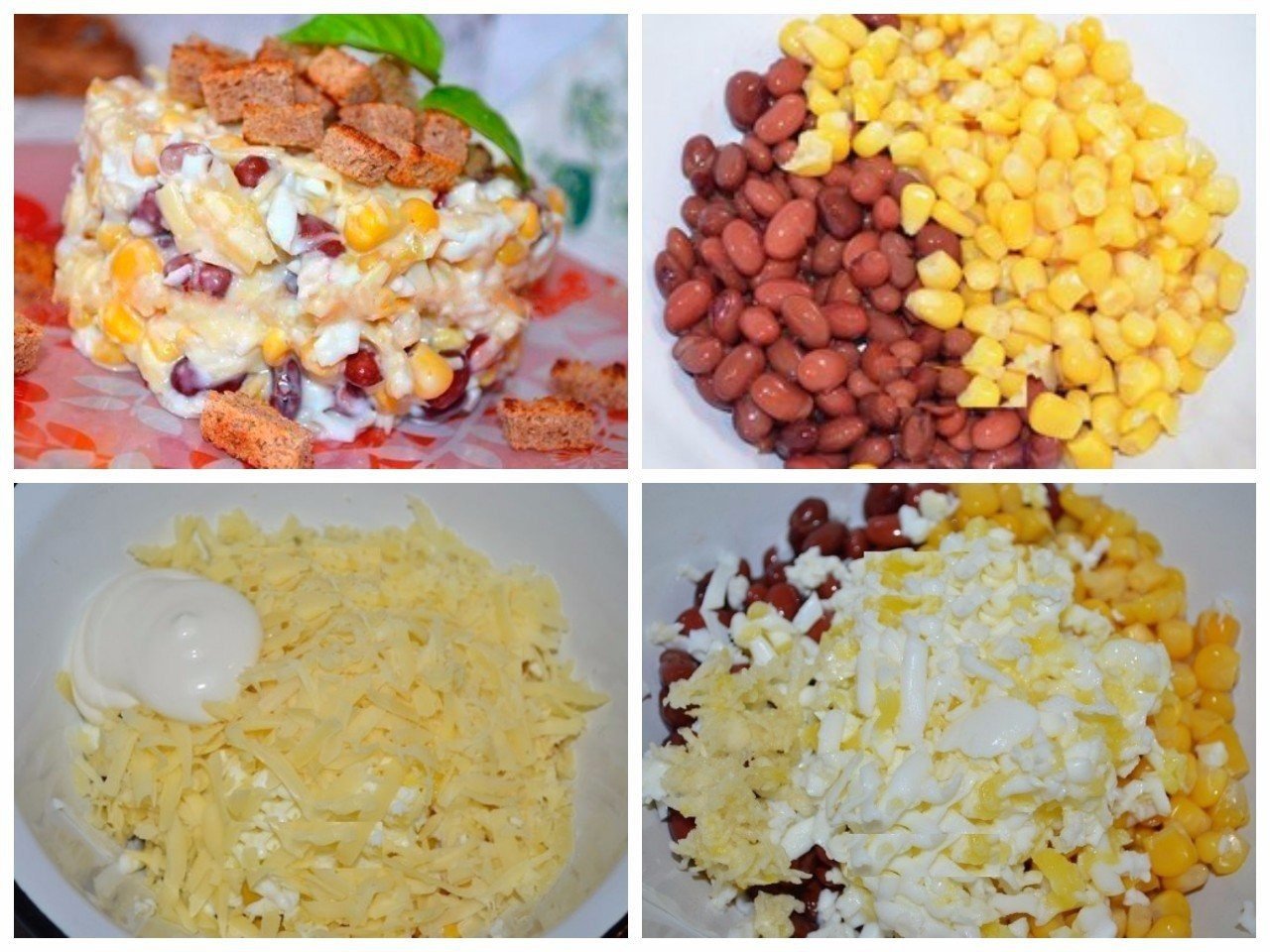 Салат кукуруза фасоль кириешки