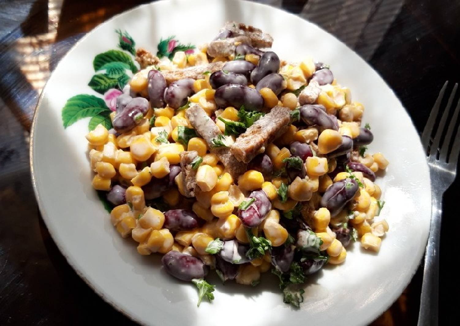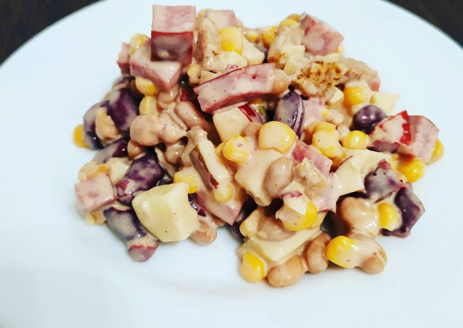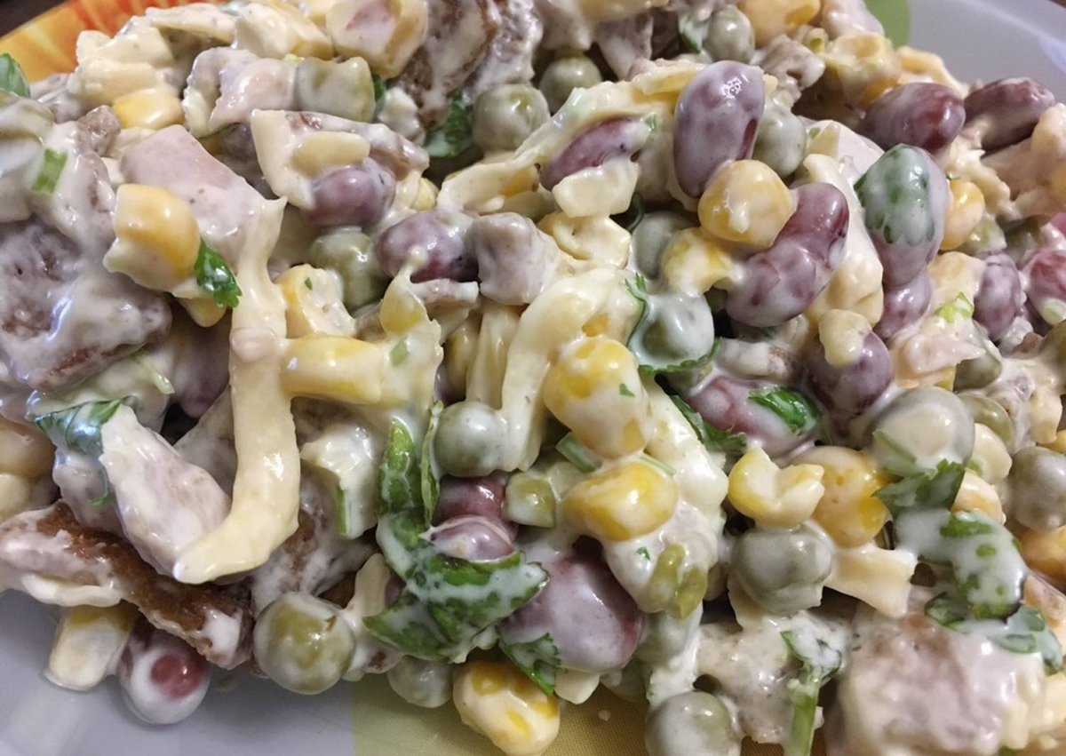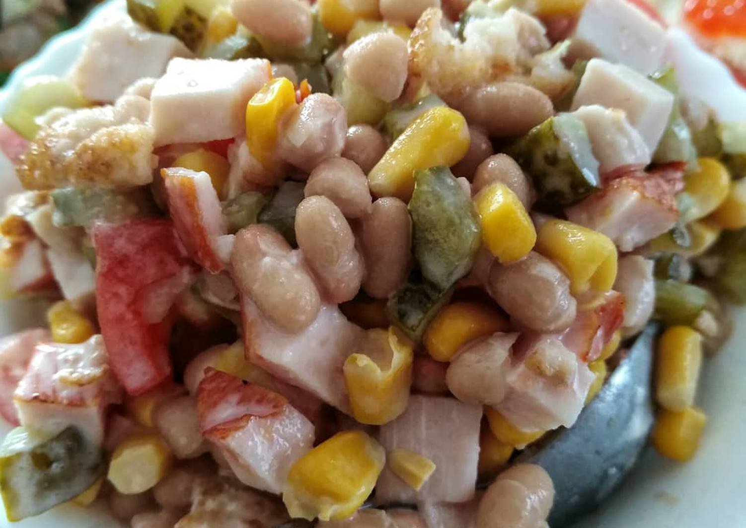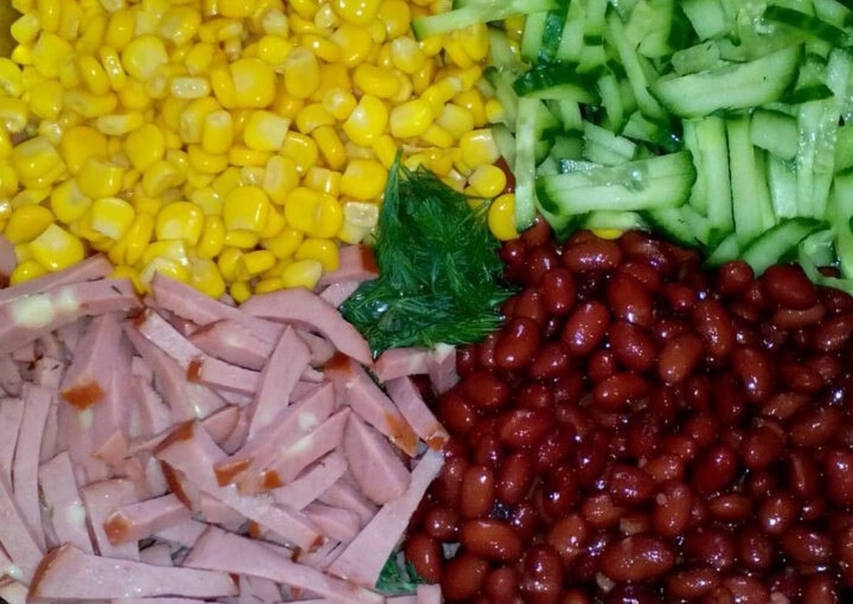 Салат с ветчиной фасолью и кукурузой