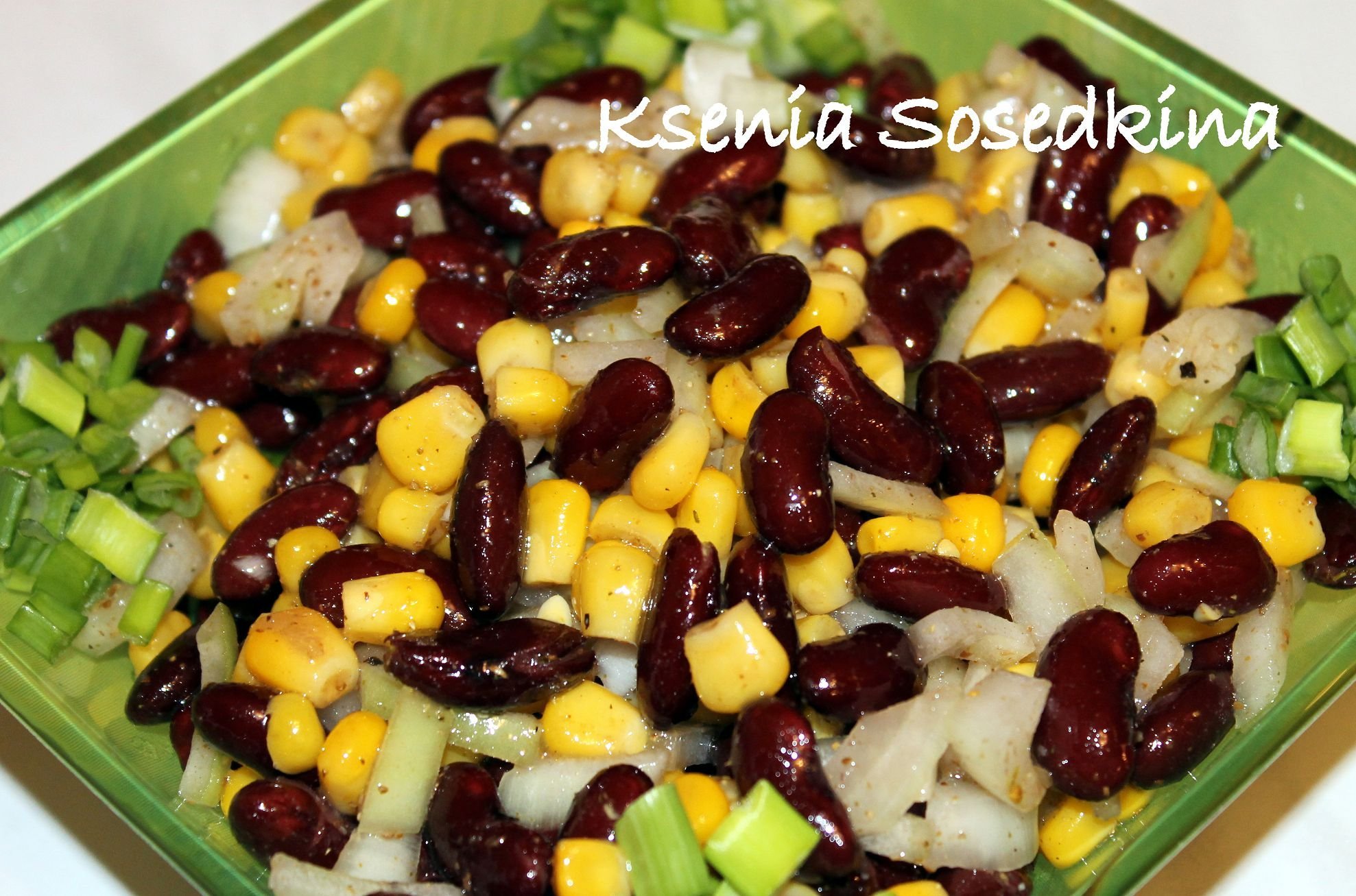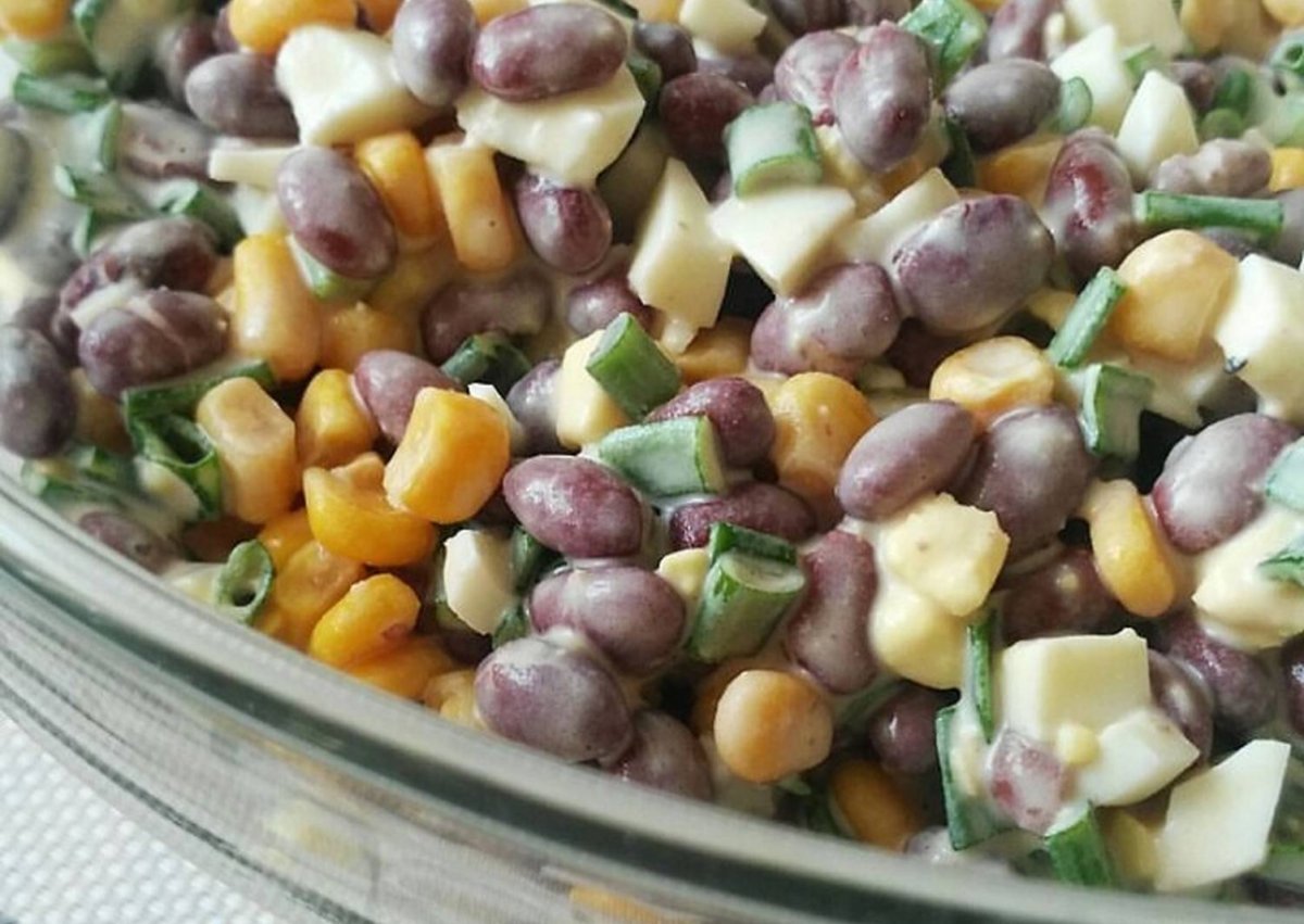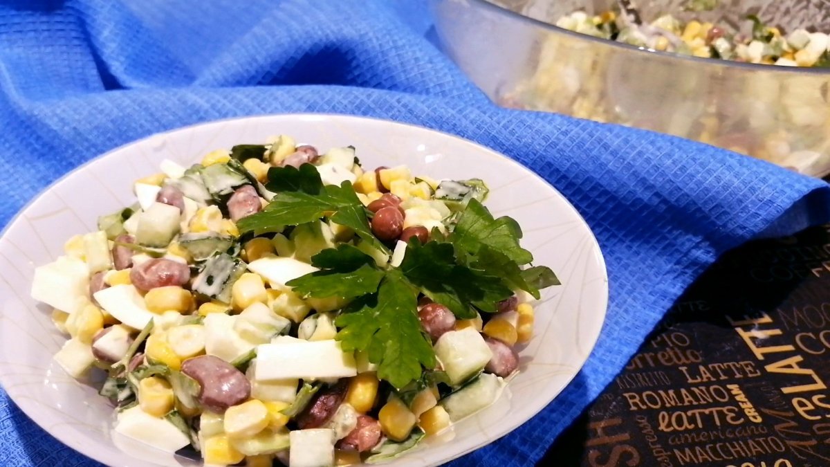 Салат с фасолью консервированной и кукурузой