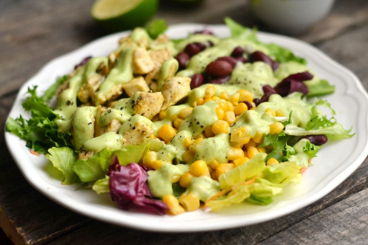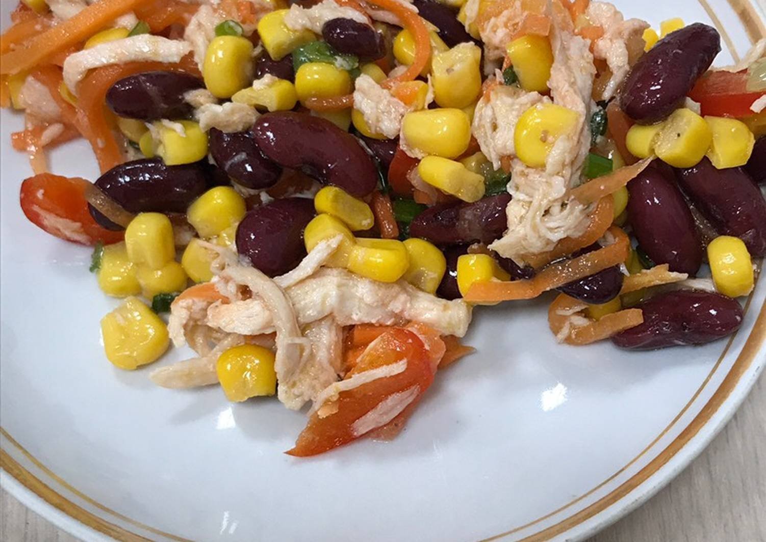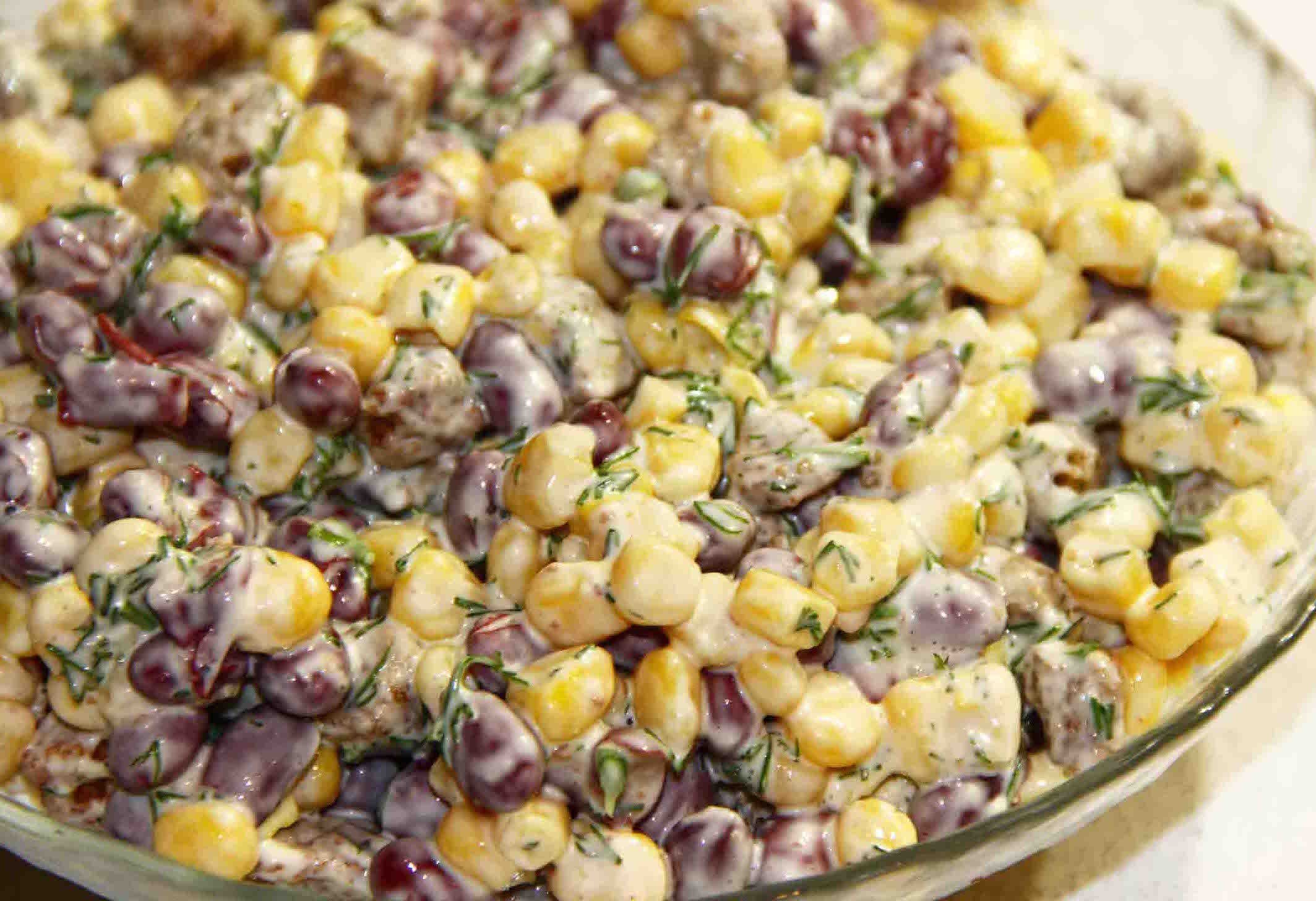 Салат с фасолью и кукурузой и курицей