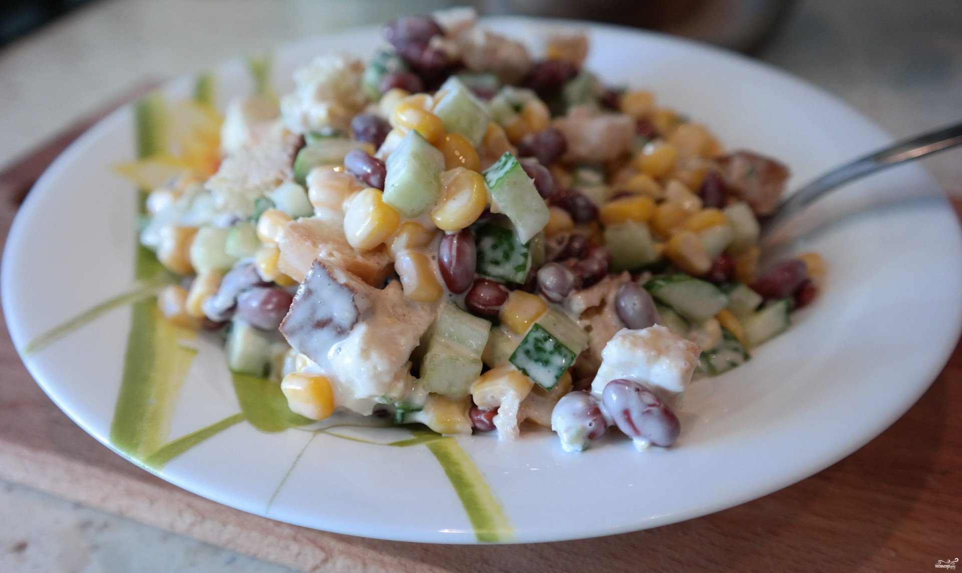 Салат фасоль кукуруза огурец сухарики