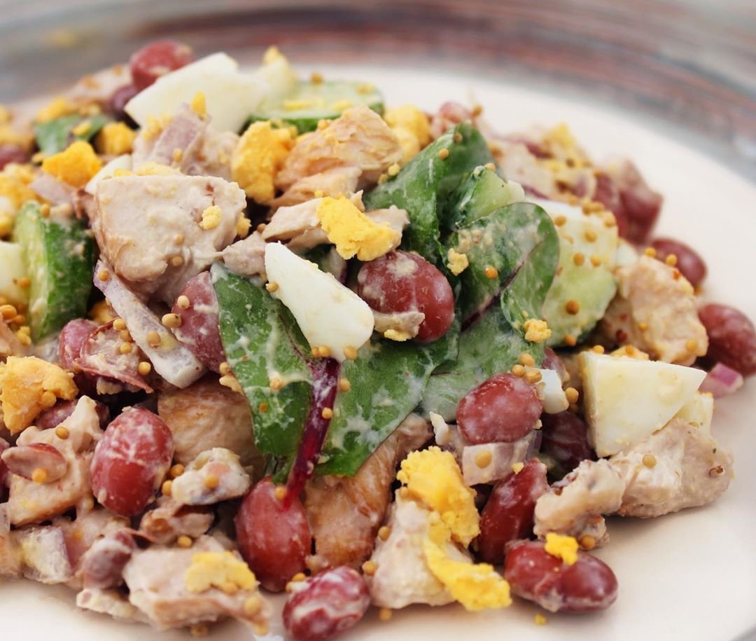 Белковый салат с фасолью