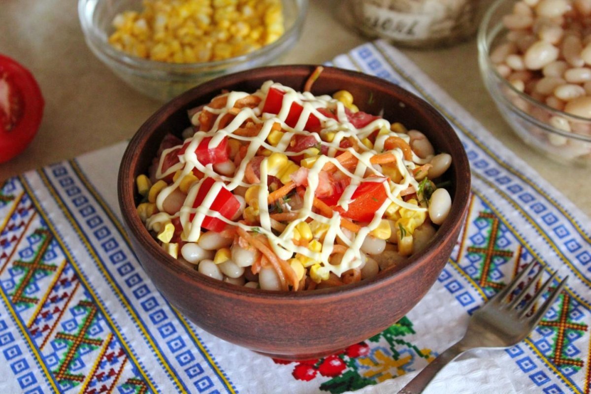 Салат с фасолью и кукурузой