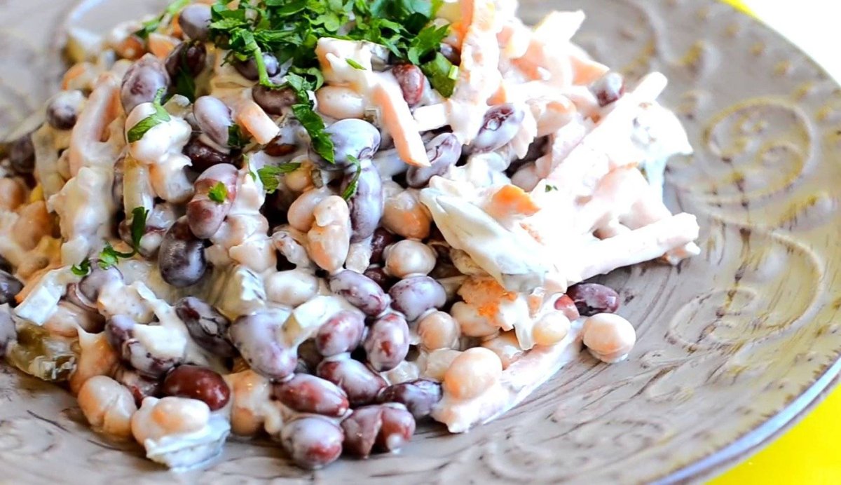 Салат с фасолью и крабовыми палочками
