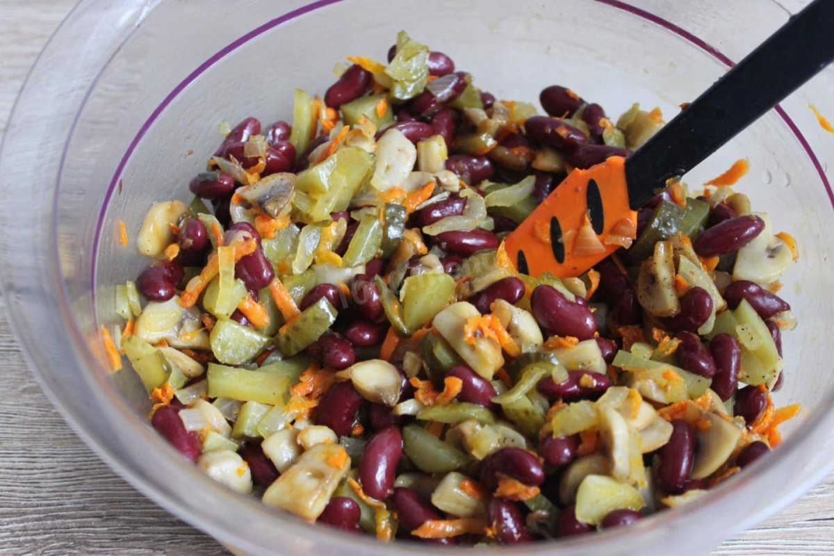 Салатик с фасолью и грибами