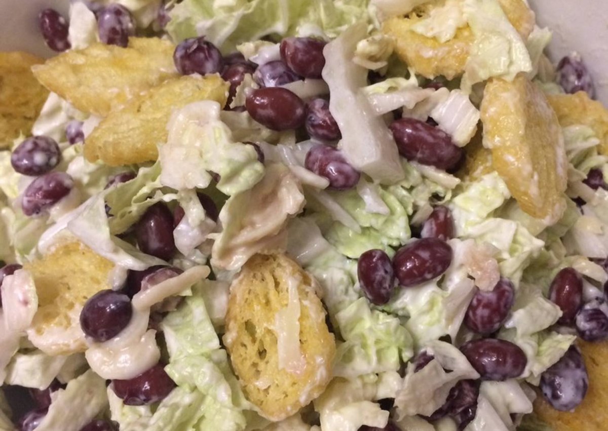 Салат с пекинской капустой фасолью и сухариками