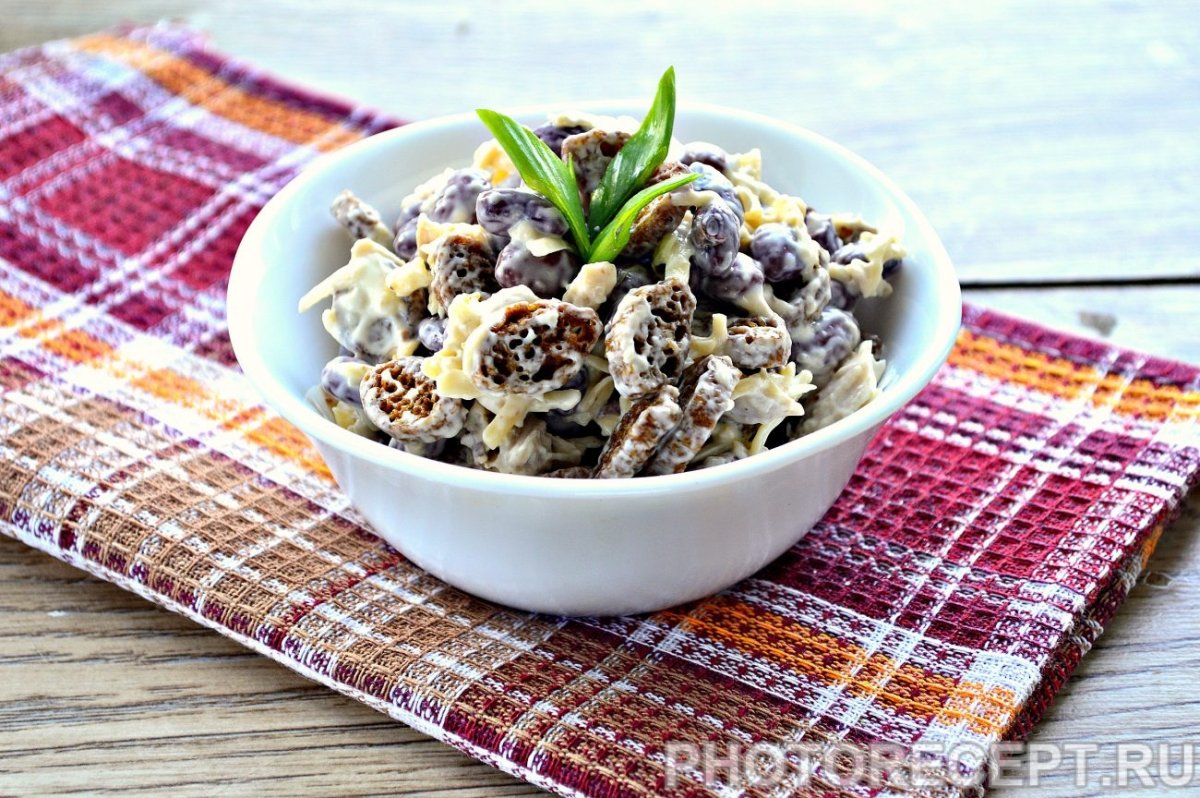 Салат из красной фасоли с сухариками и сыром