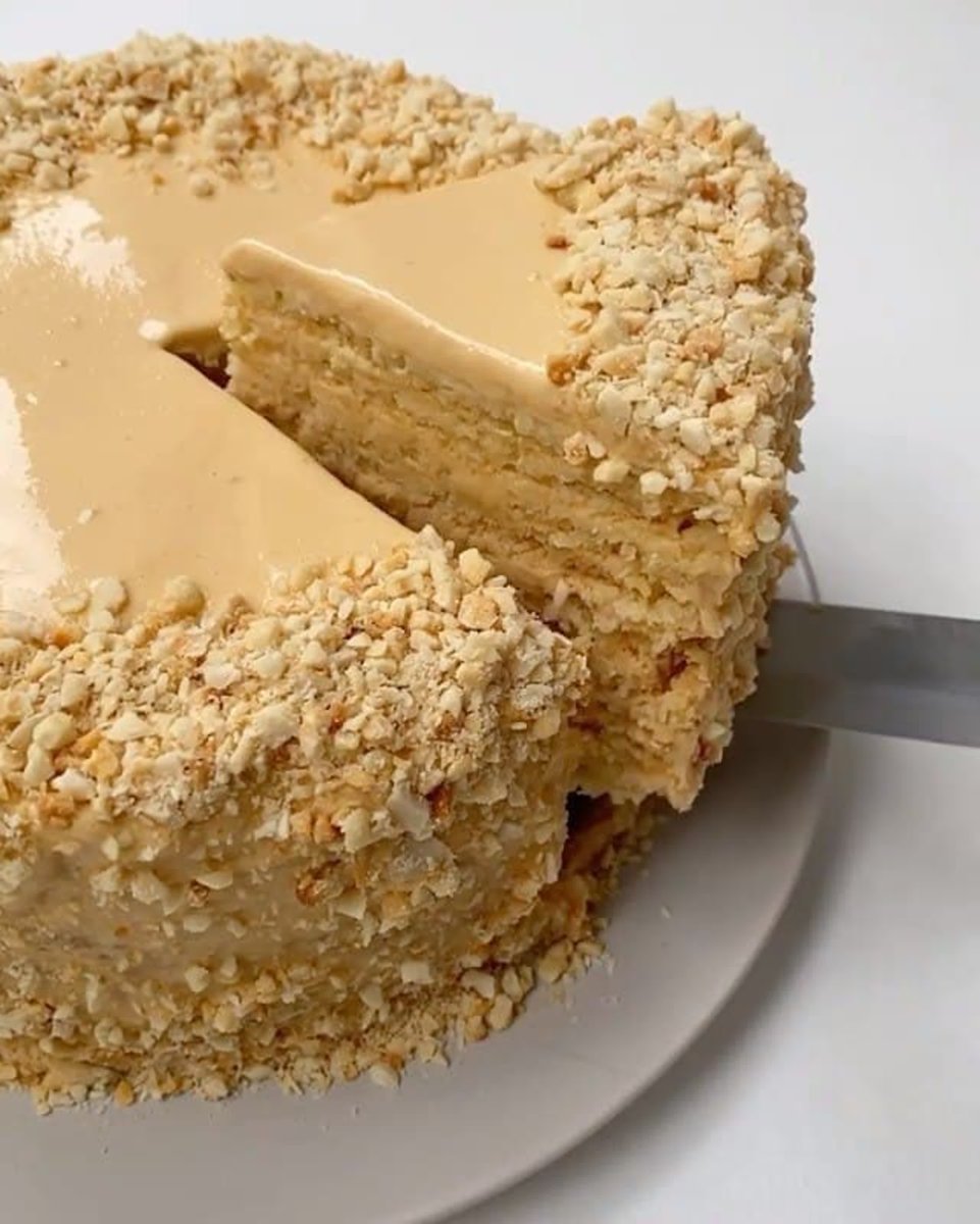 Торт со сгущёнкой и орехами грецкими Лакомка