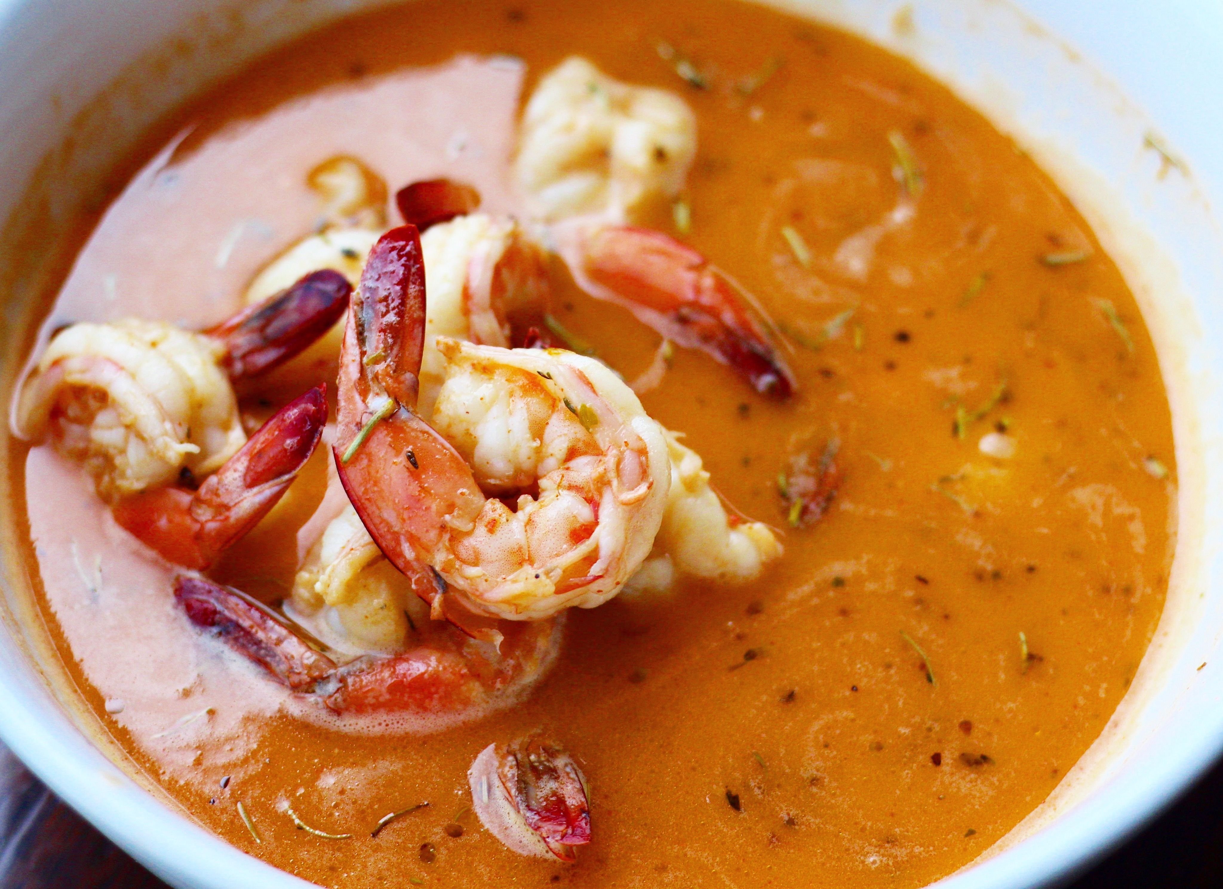 Томатный крем суп с креветками
