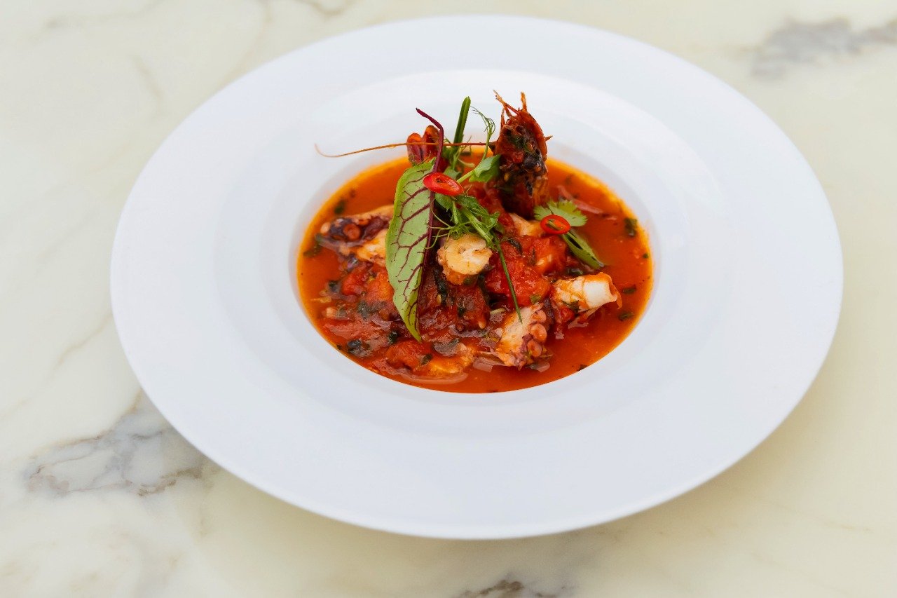 Томатный суп на шафране с морепродуктами