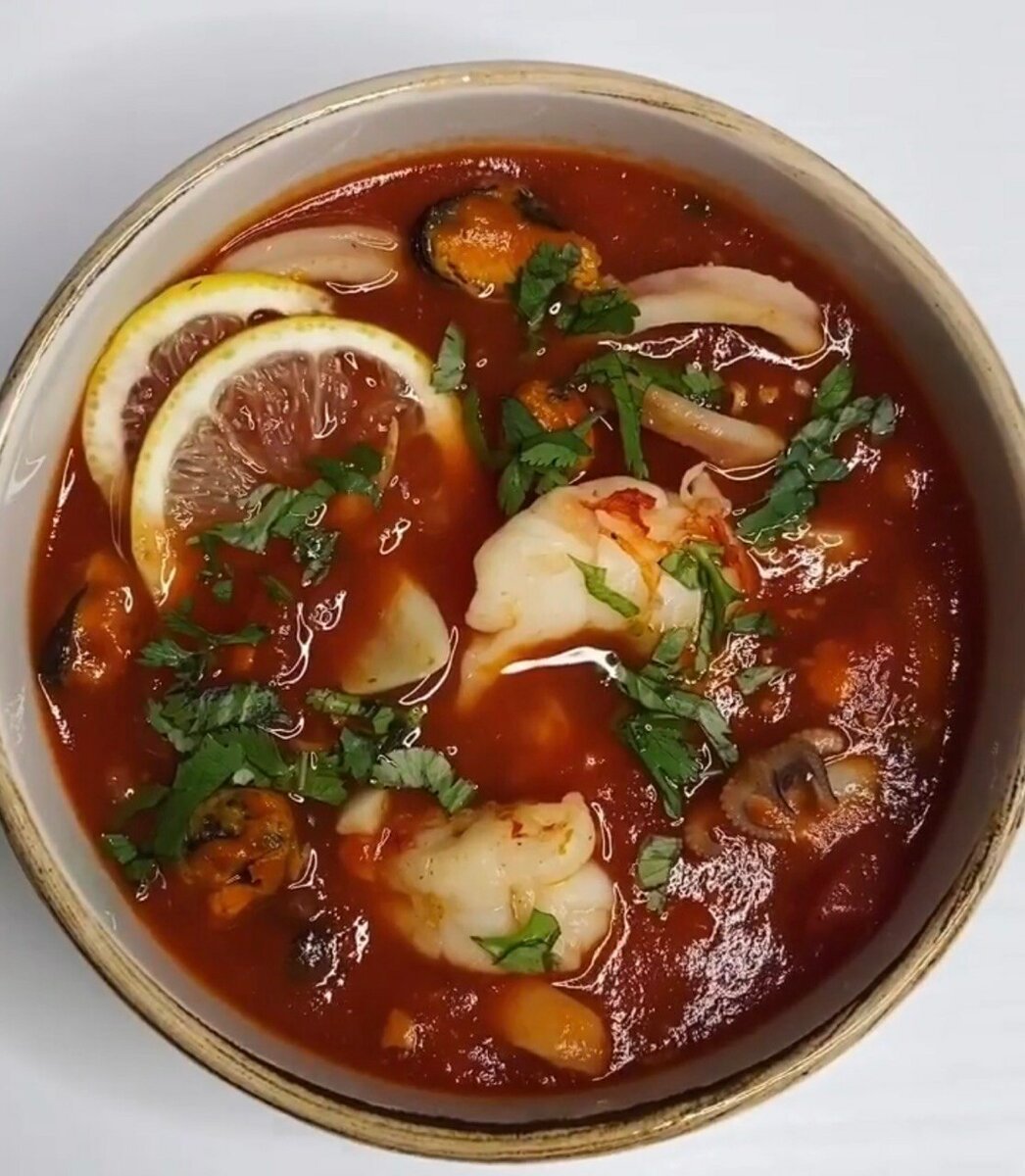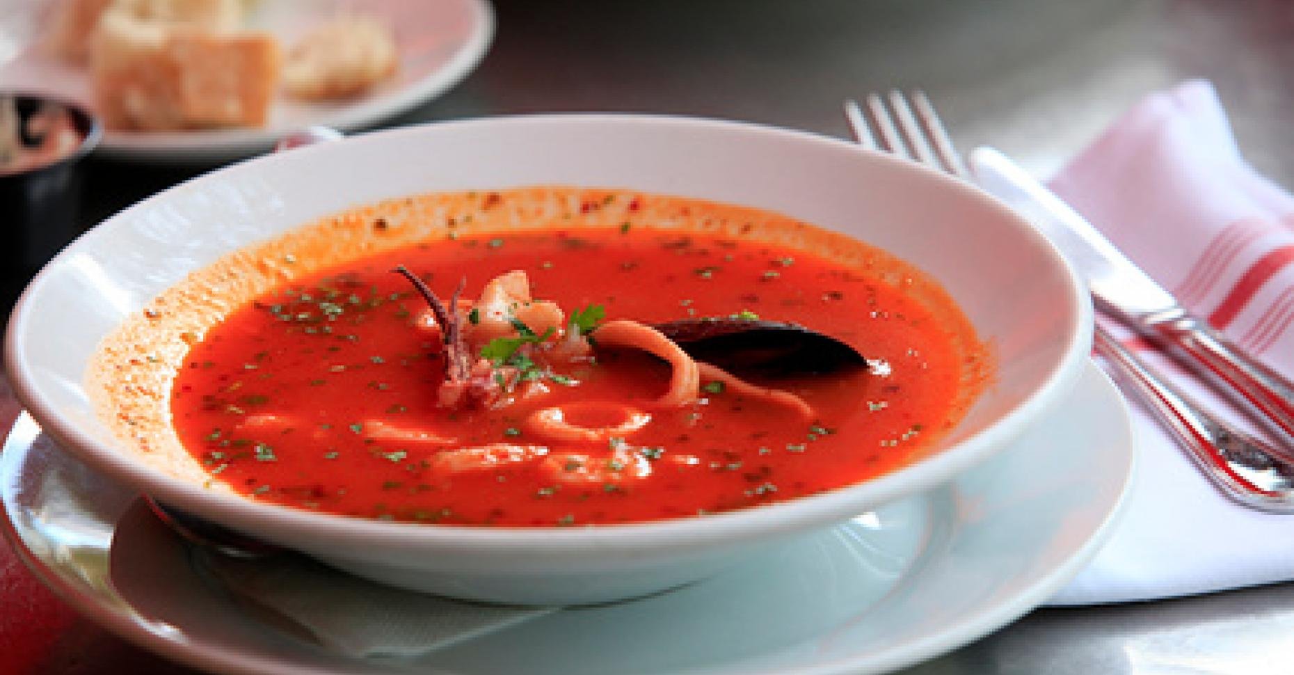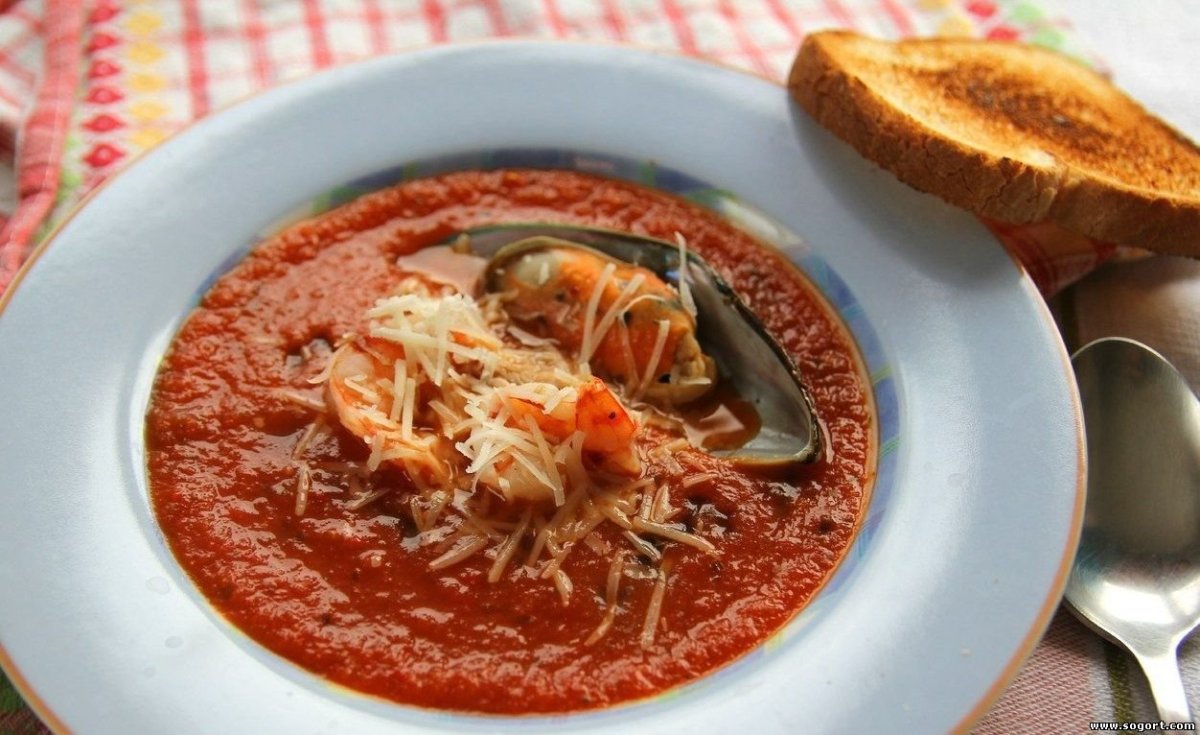 Томатный суп из морепродуктов