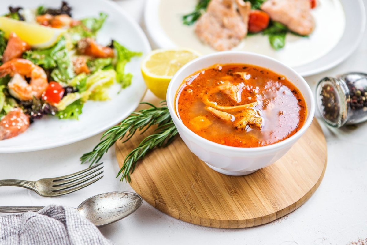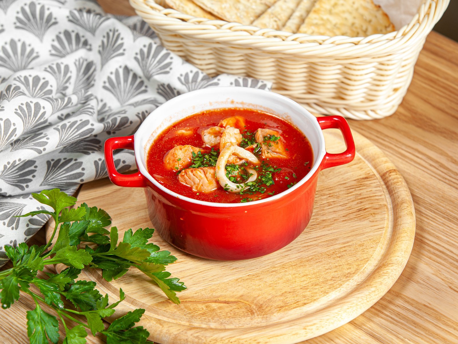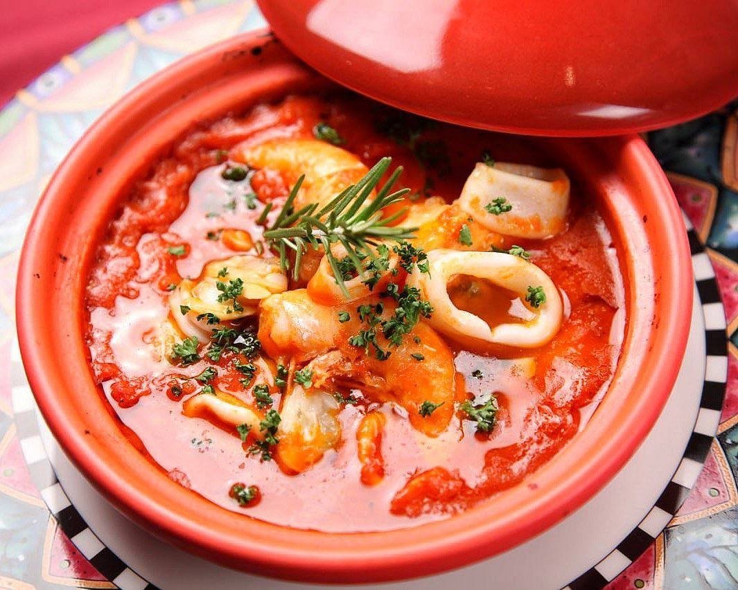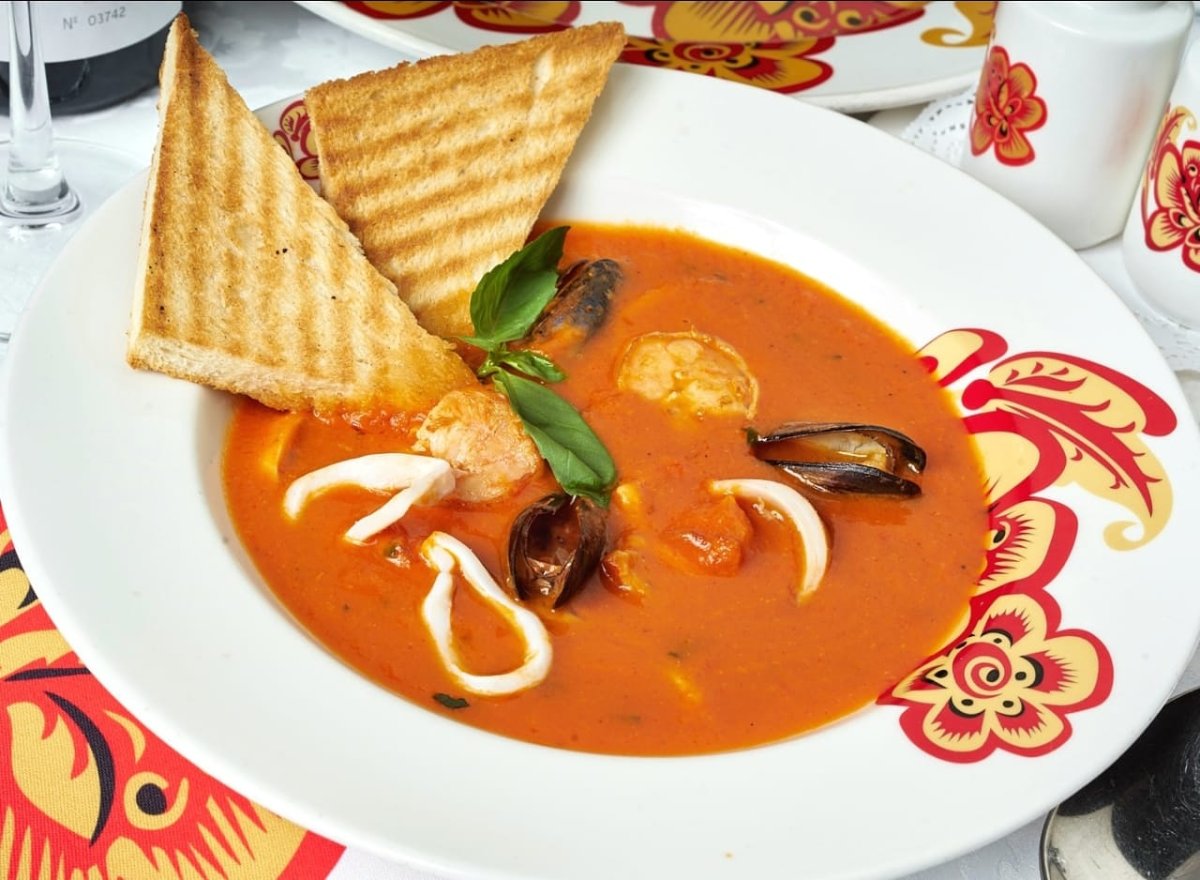 Томатный суп из морепродуктов
