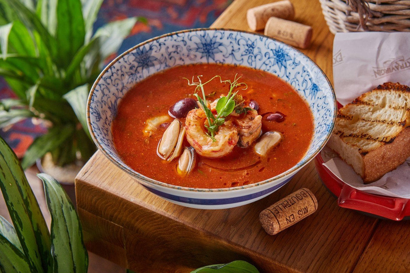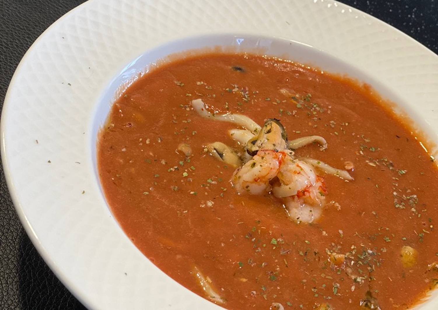 Томатный суп с морепродуктами