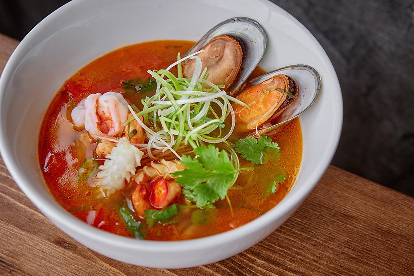 Острый суп с морепродуктами