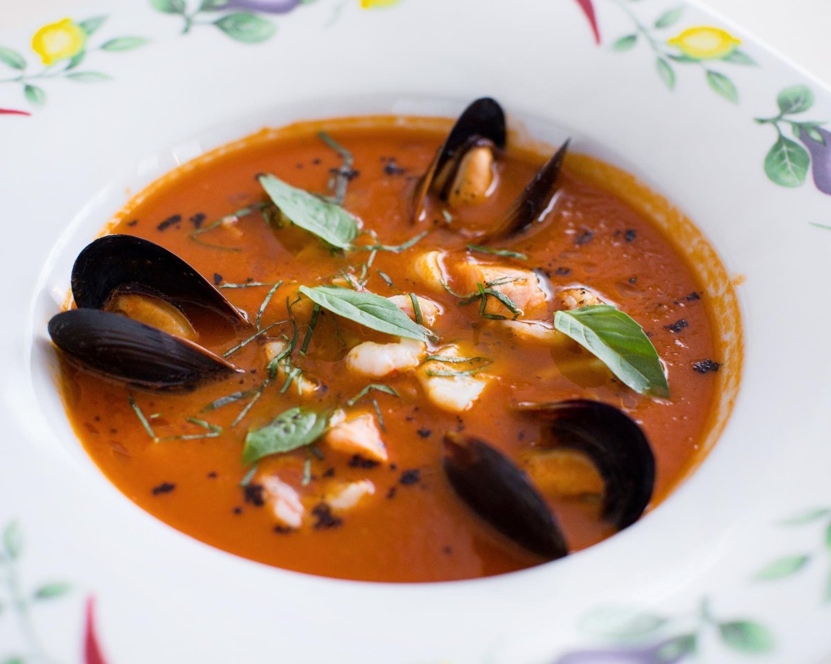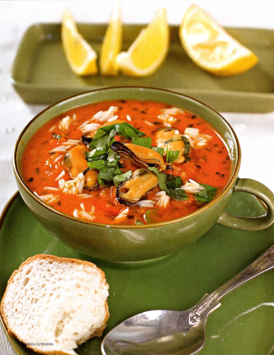 Томатный суп с мидиями