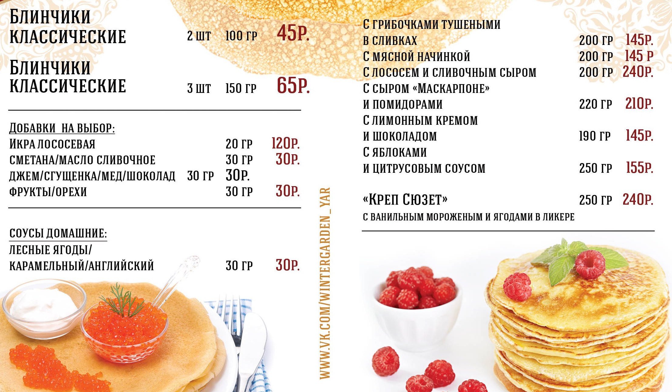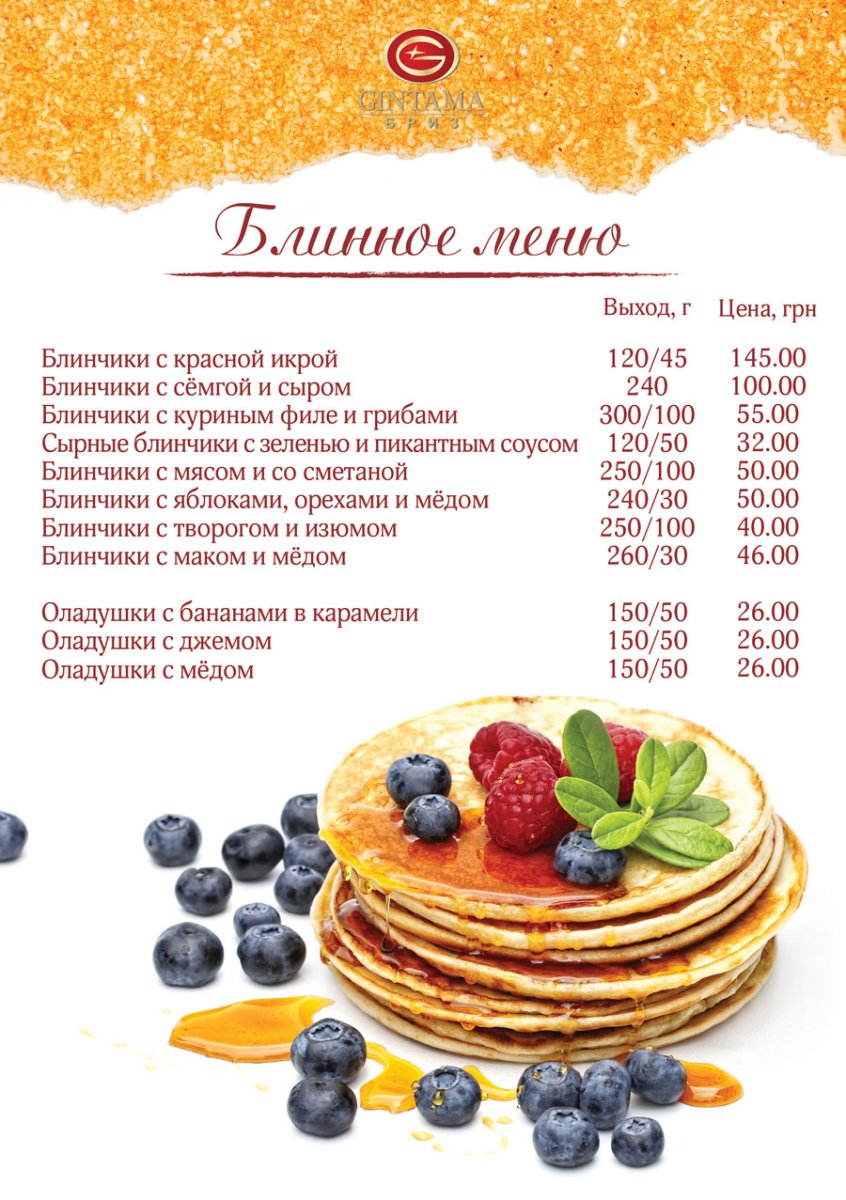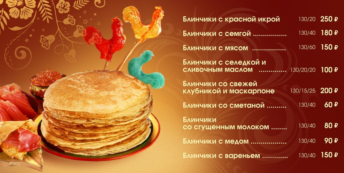 Меню блинной