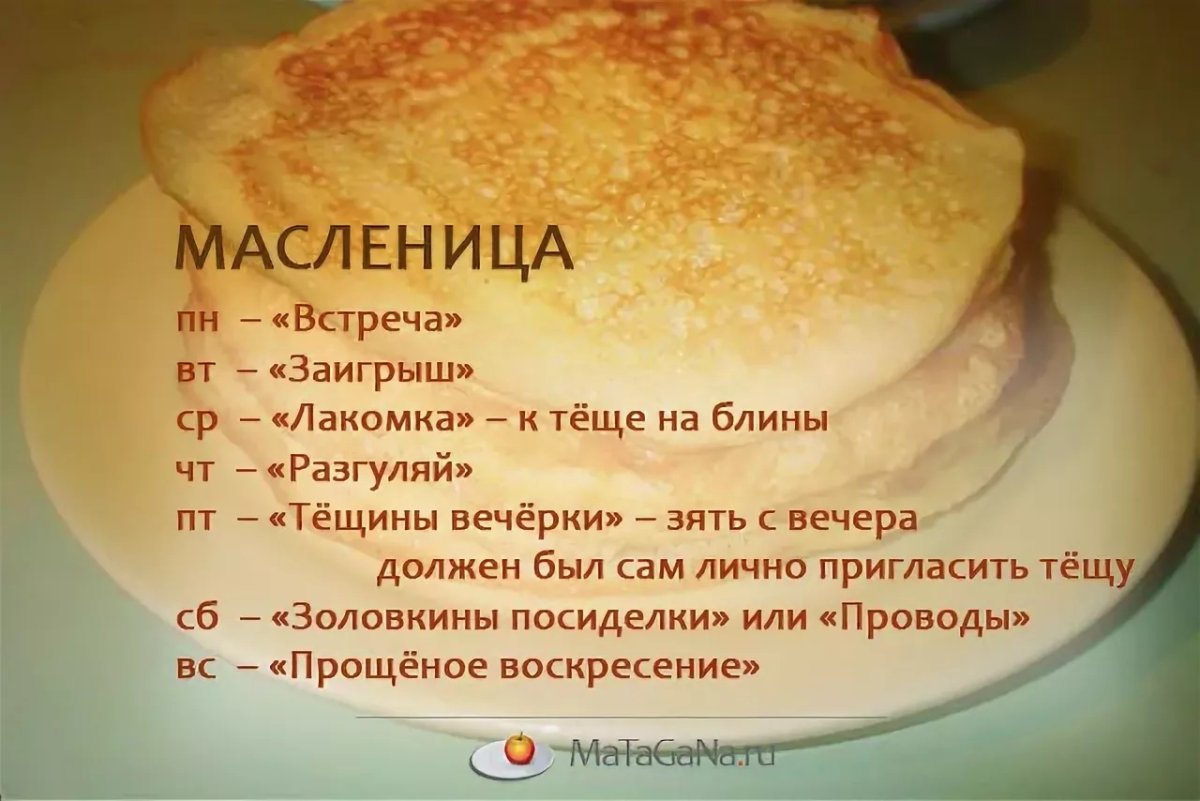 Масленица по дням недели