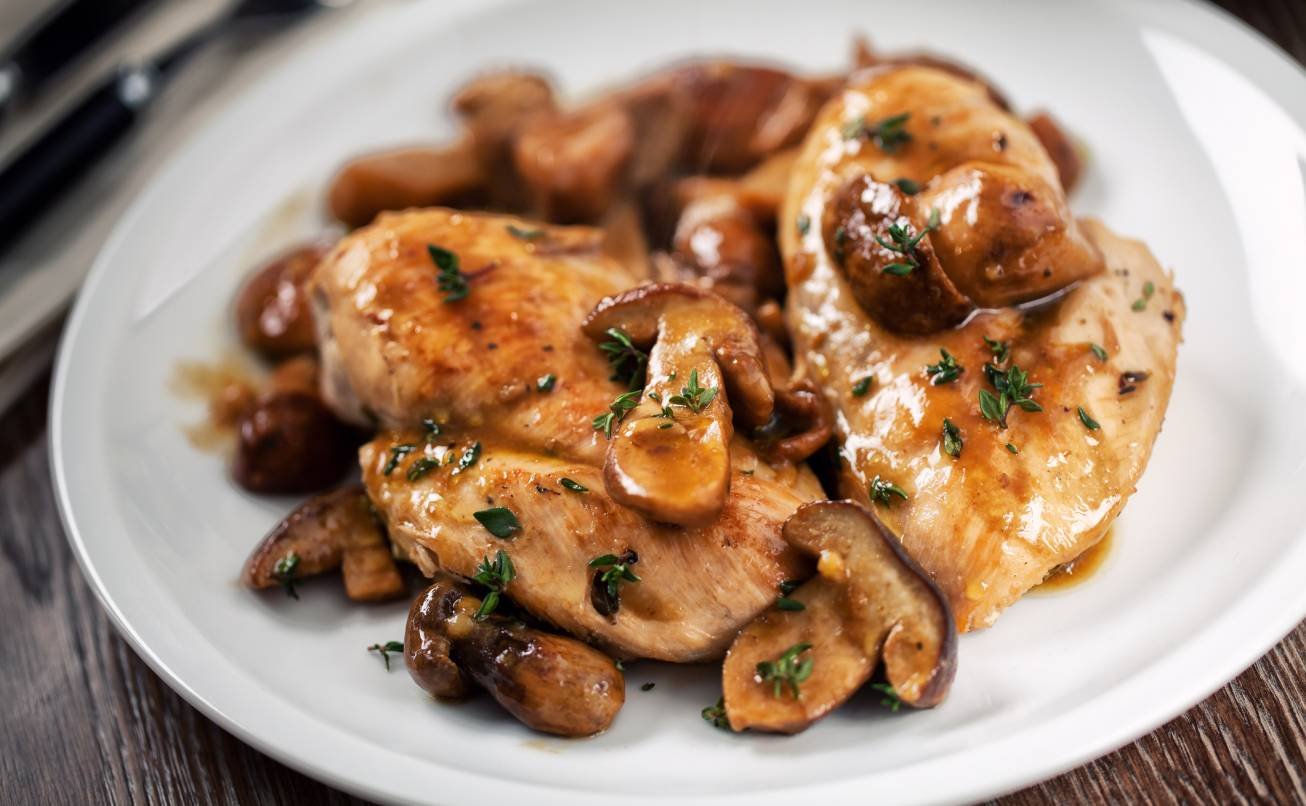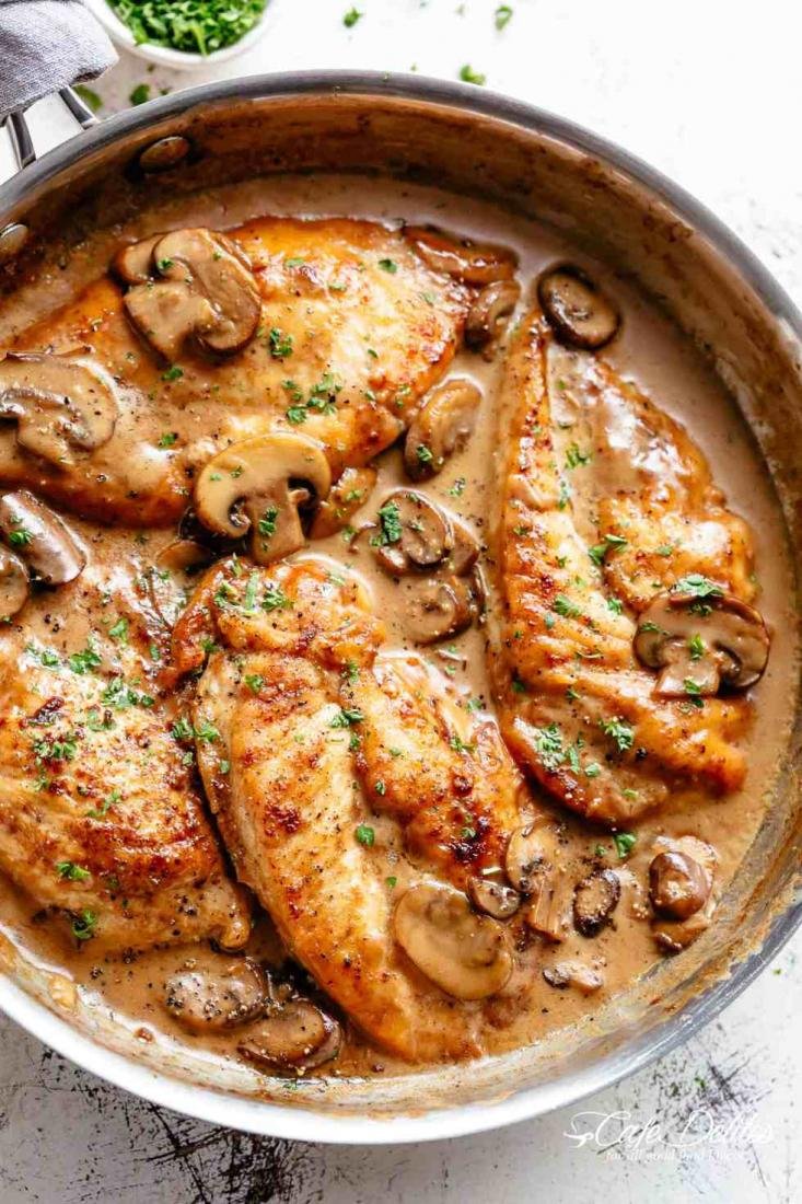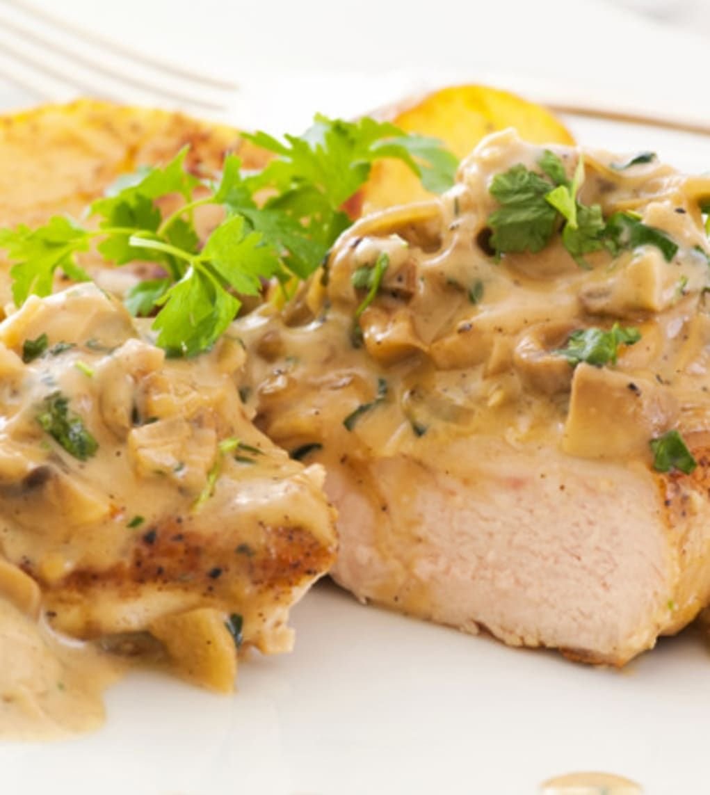 Куриная грудка с грибами в сметанном соусе