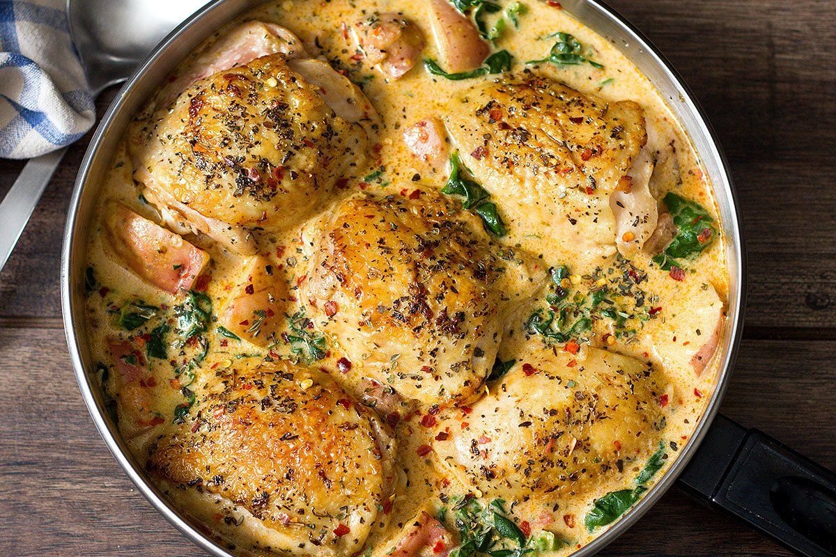 Курица со шпинатом в сливочном соусе