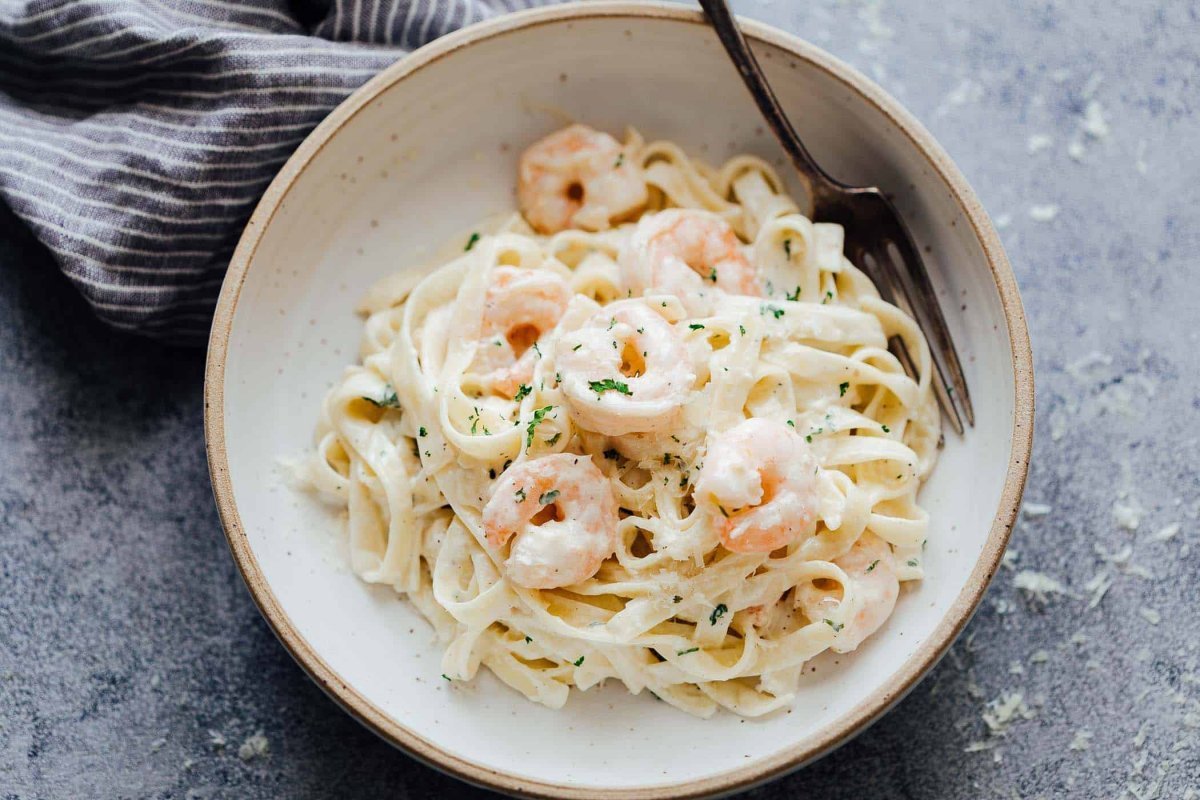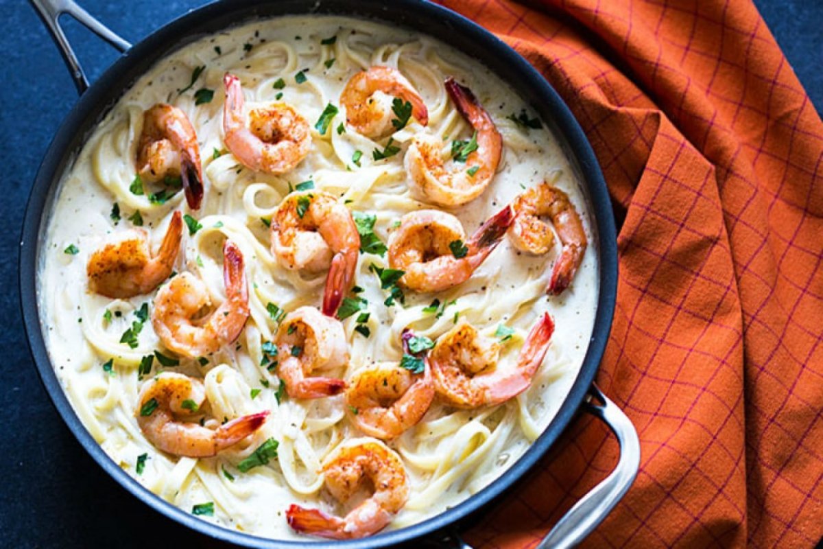Лингвини с креветками в сливочном соусе