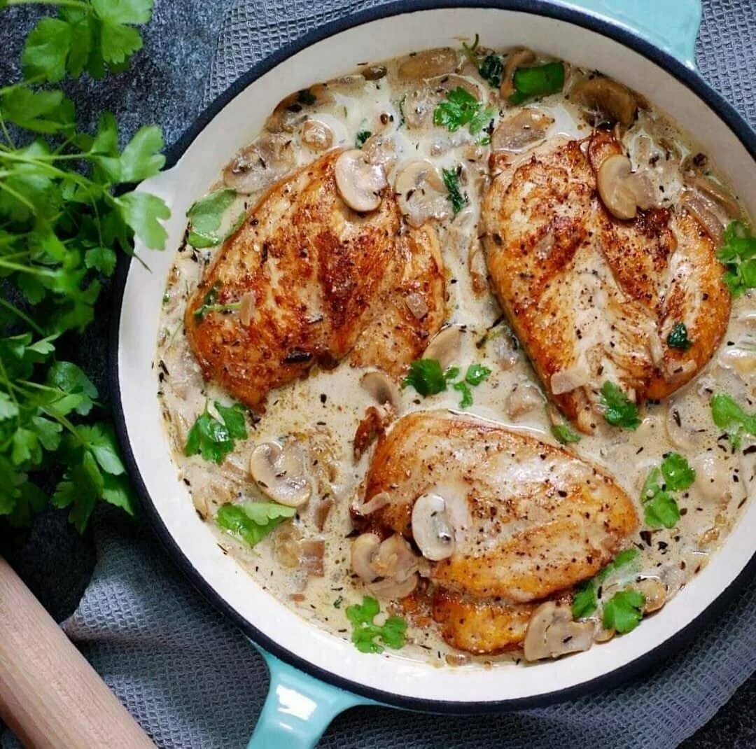 Курица в сливочно грибном соусе