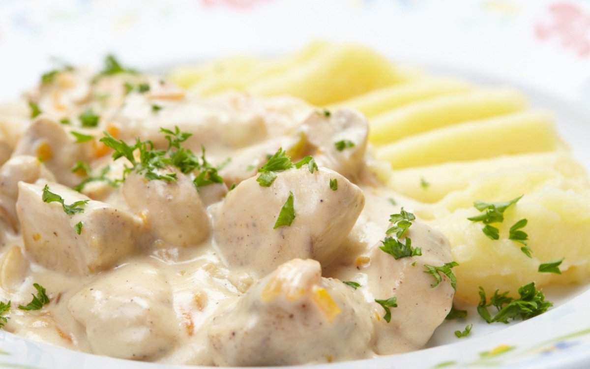 Фрикасе из курицы с грибами в сливочном соусе