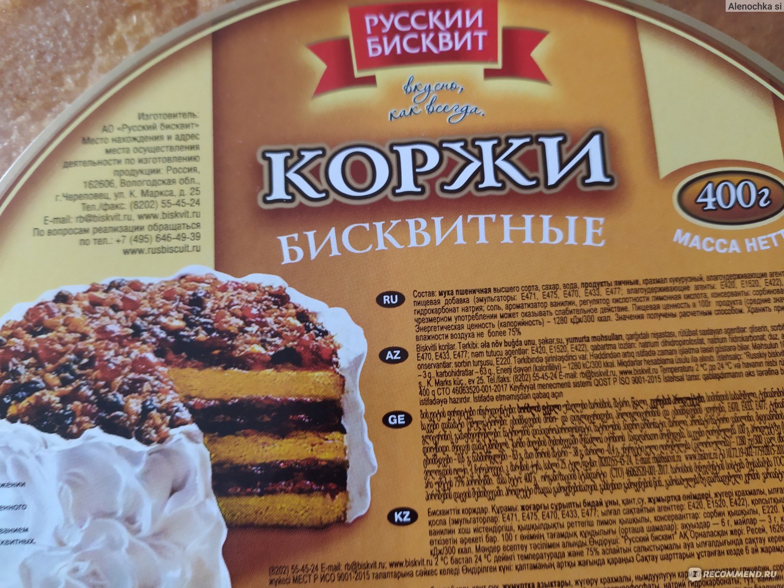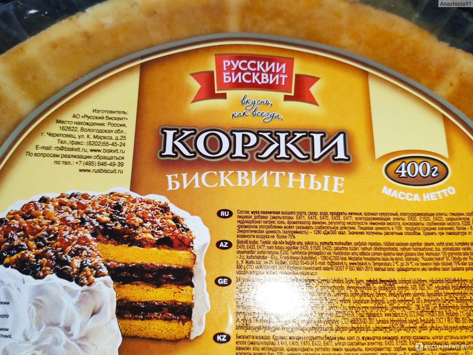 Русский бисквит коржи бисквит 400г