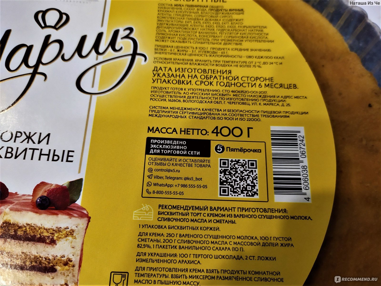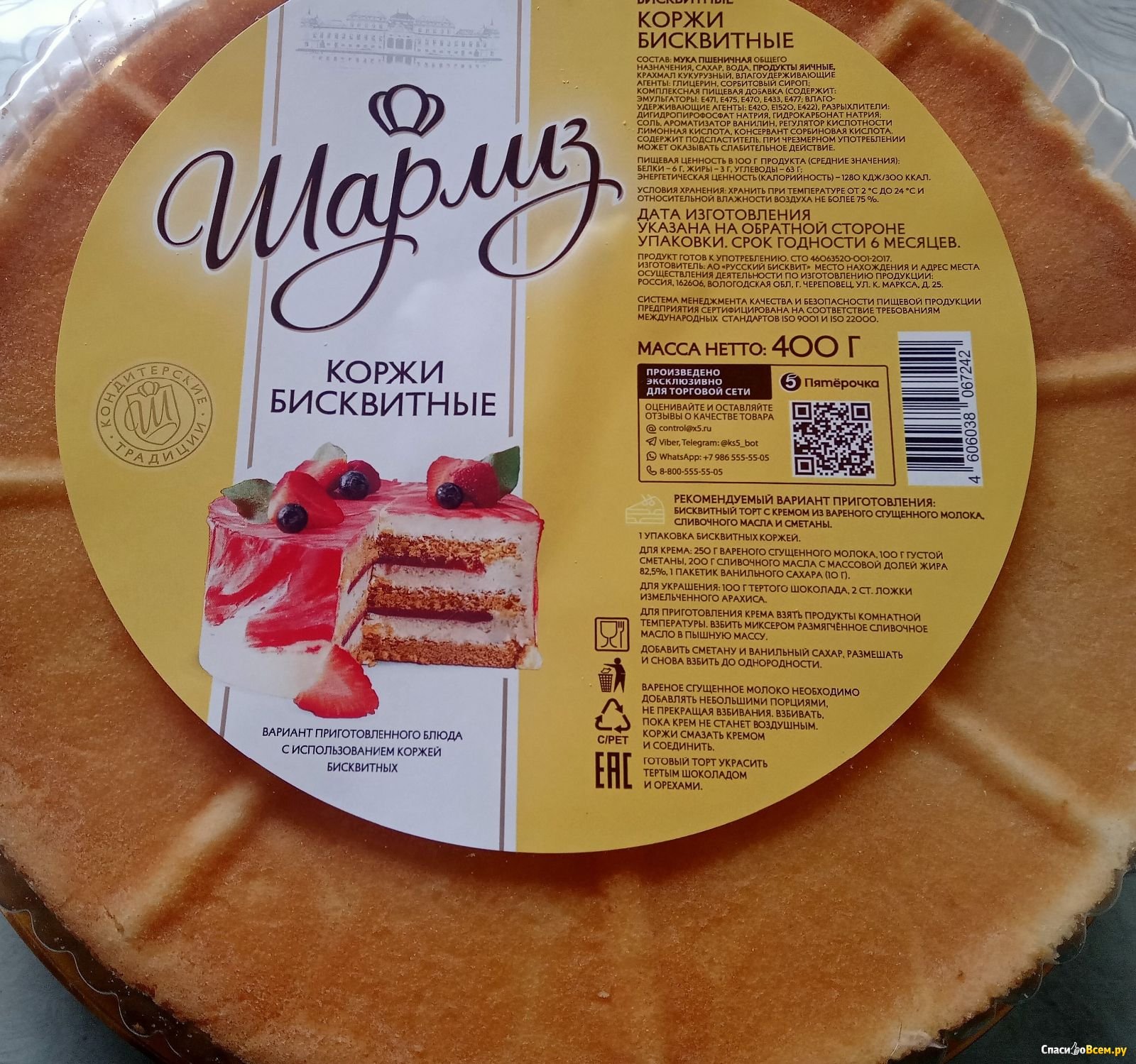 Коржи Шарлиз бисквитные состав