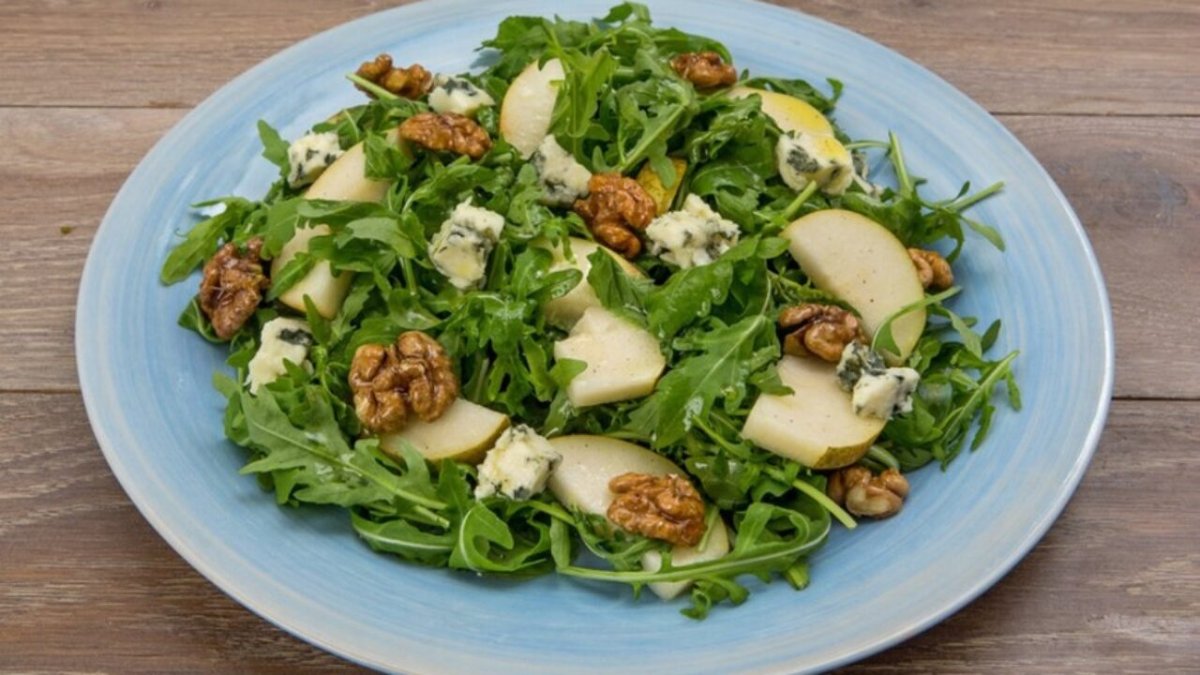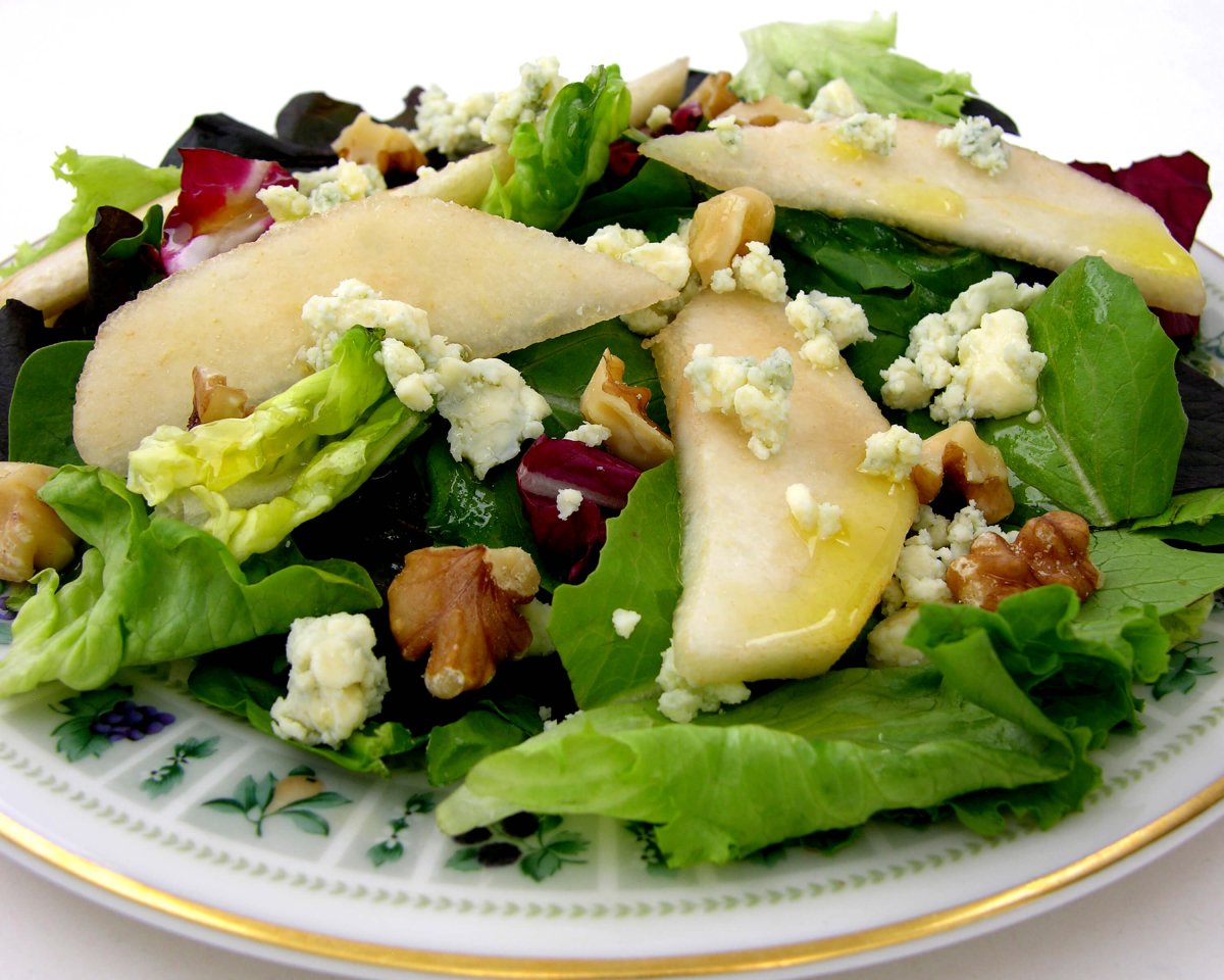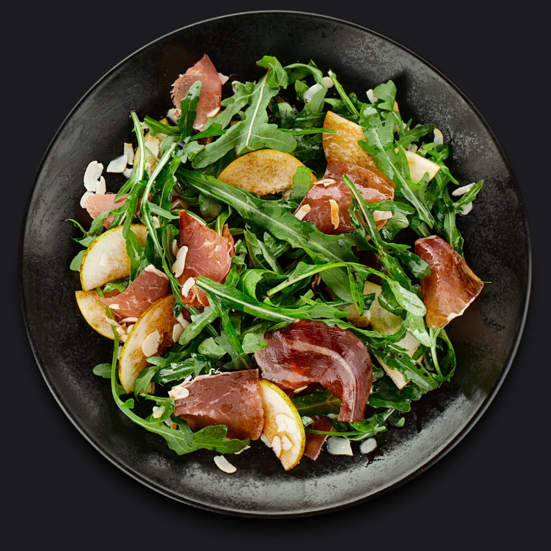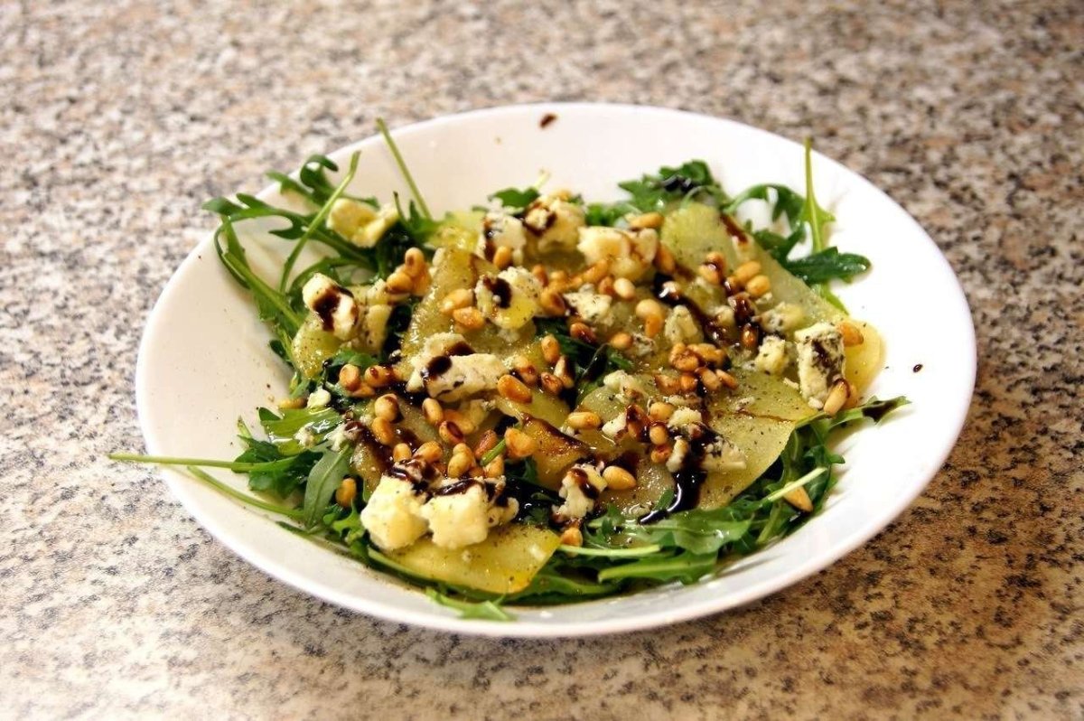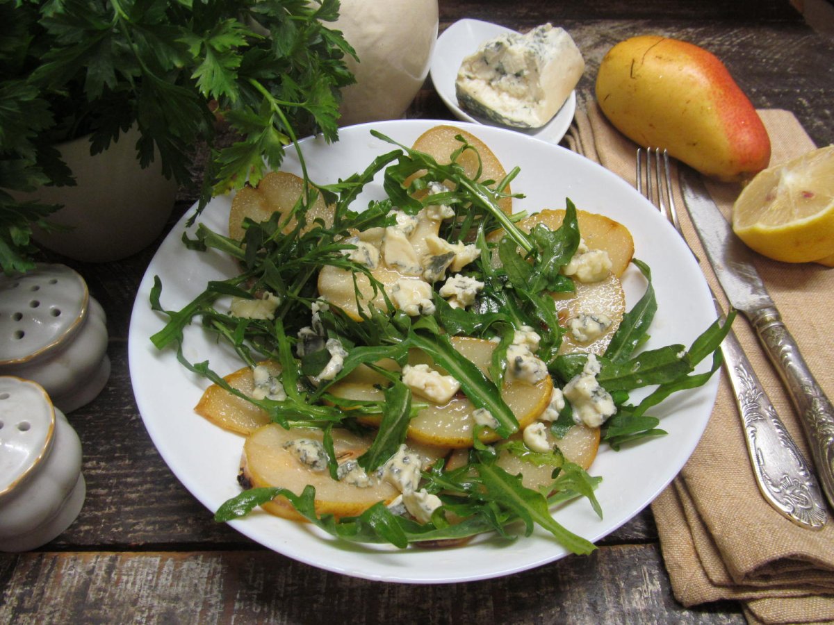 Салат с пармской ветчиной и грушей и сыром дор Блю