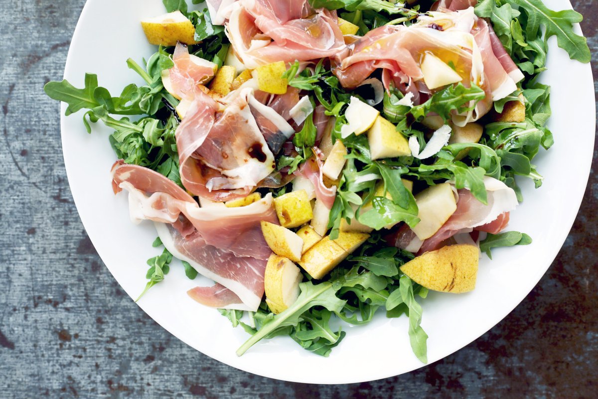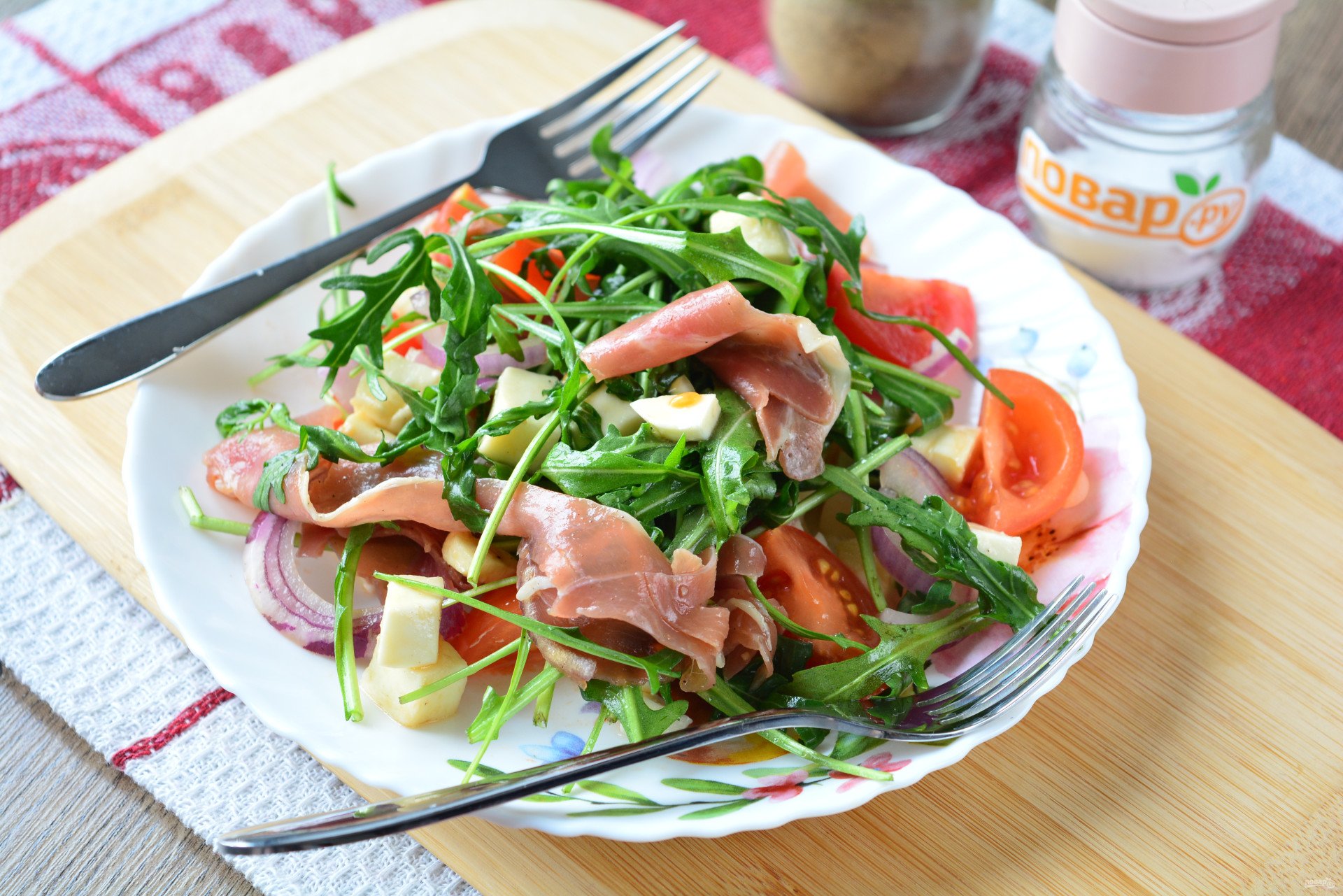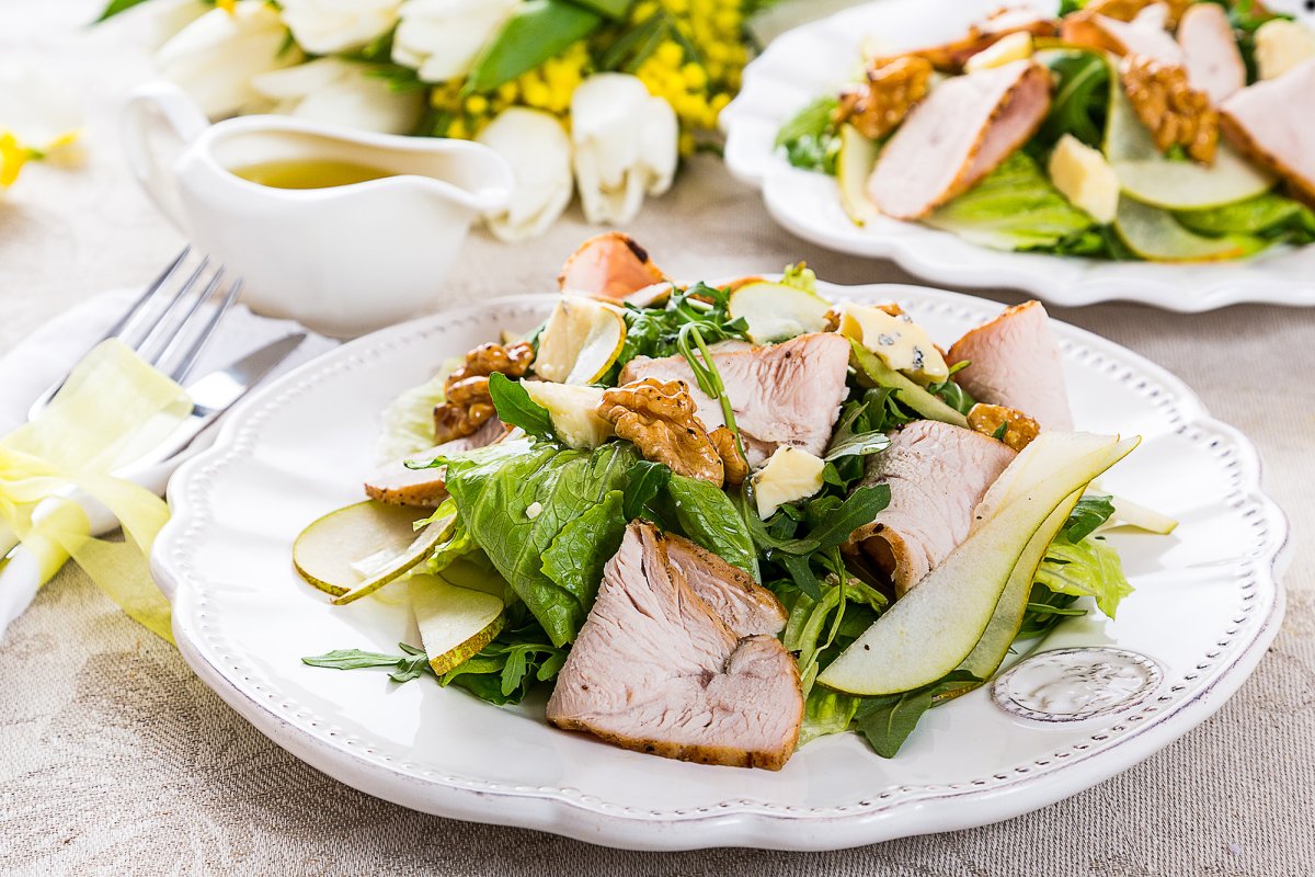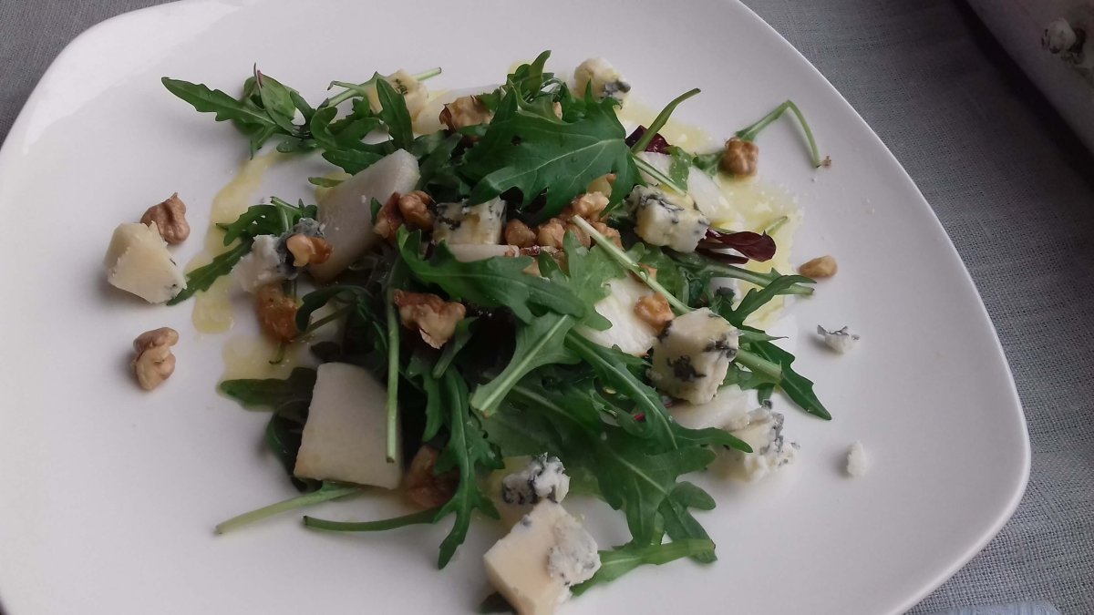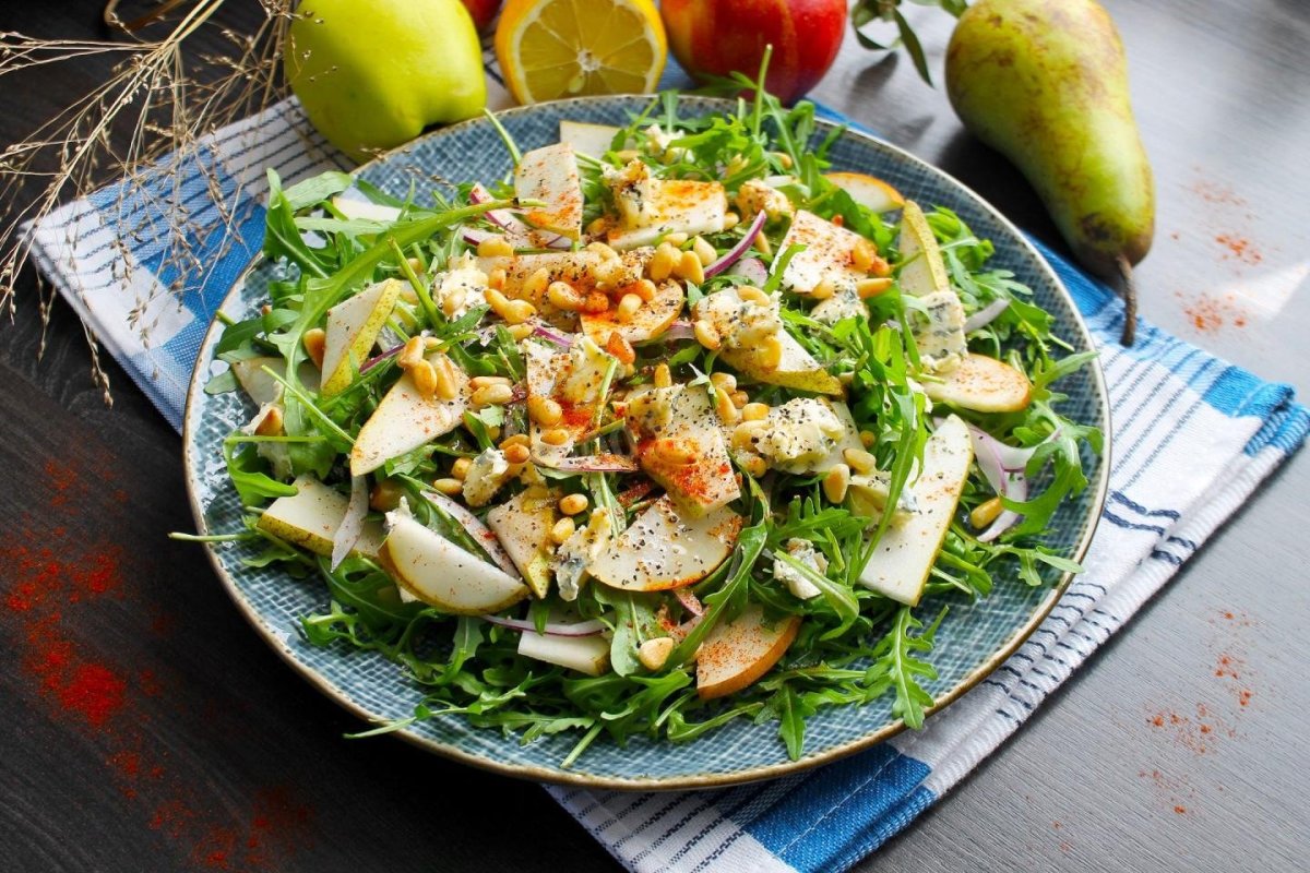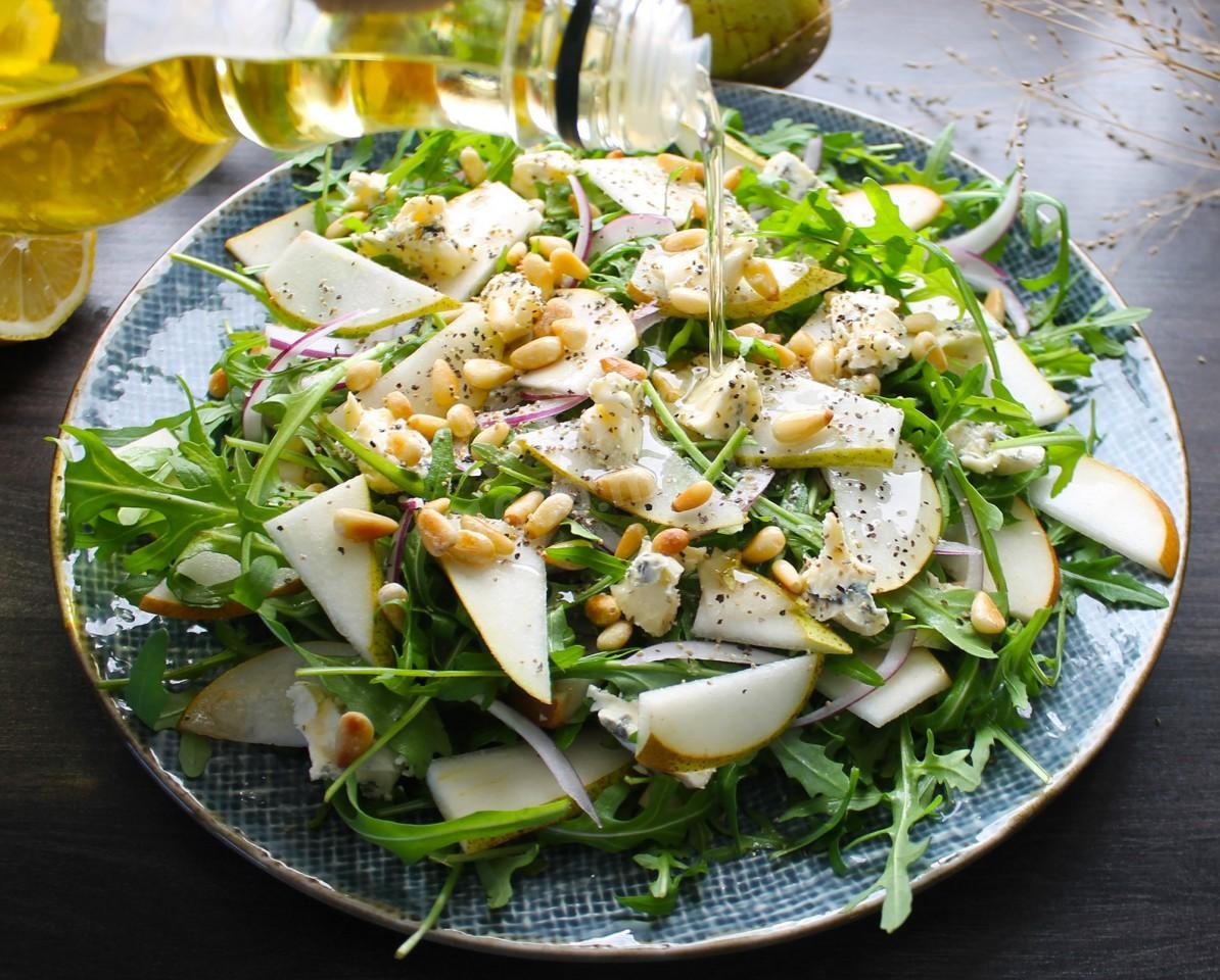 Салат с пармской ветчиной и грушей и сыром дор Блю