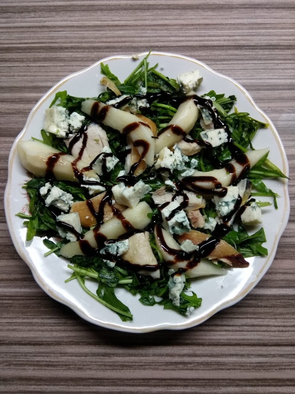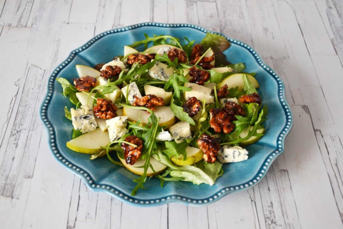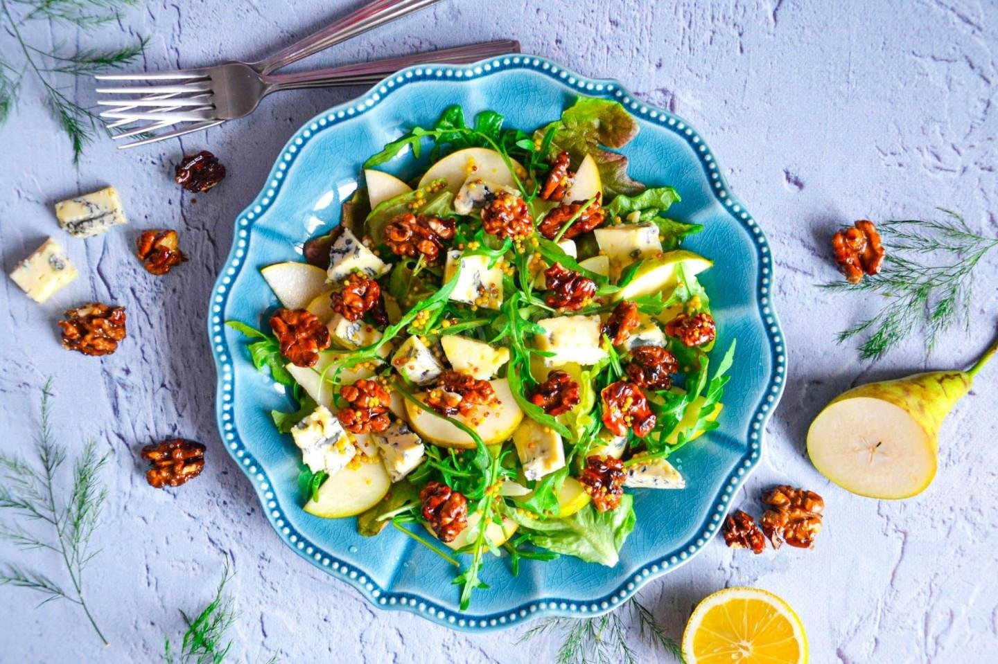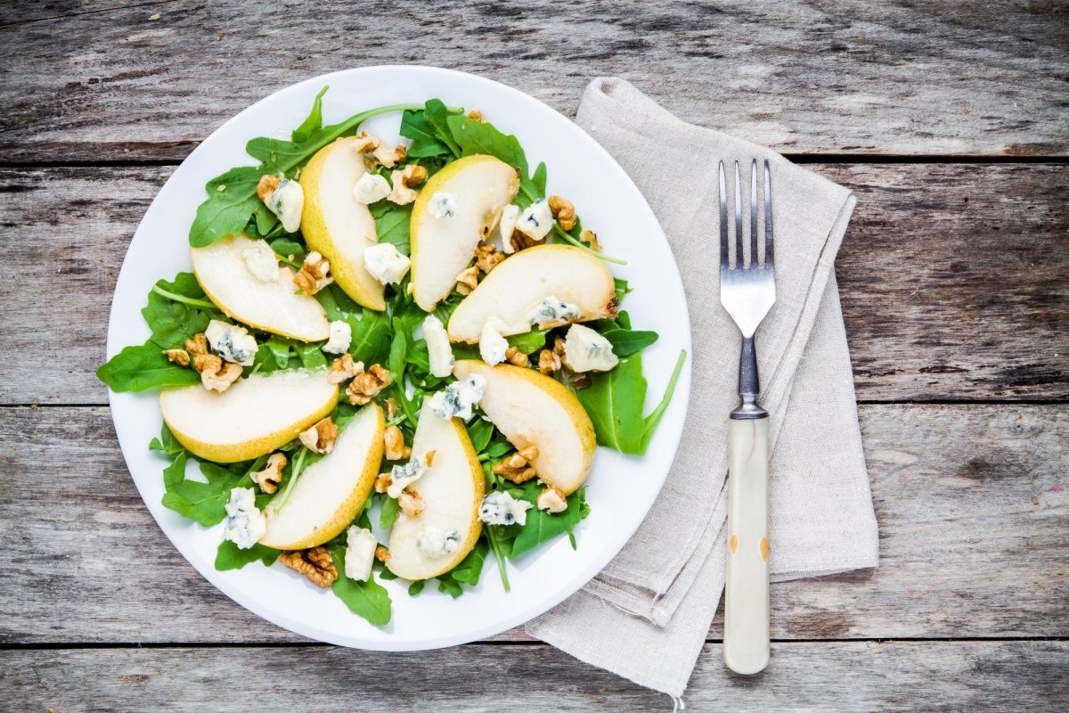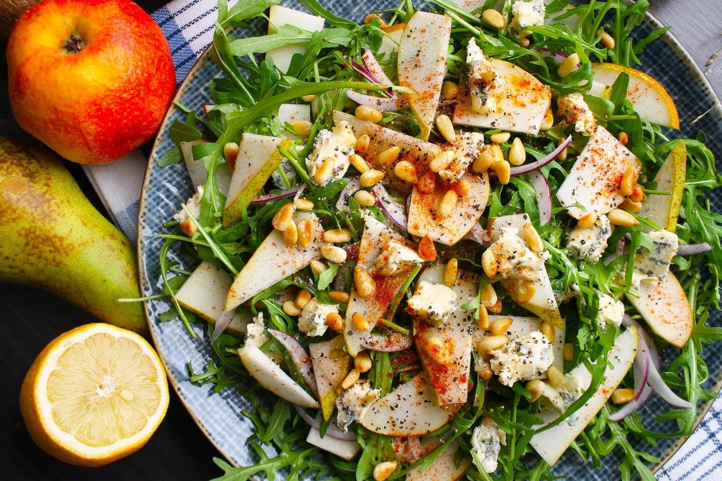 Салат с пармской ветчиной и грушей и сыром дор Блю