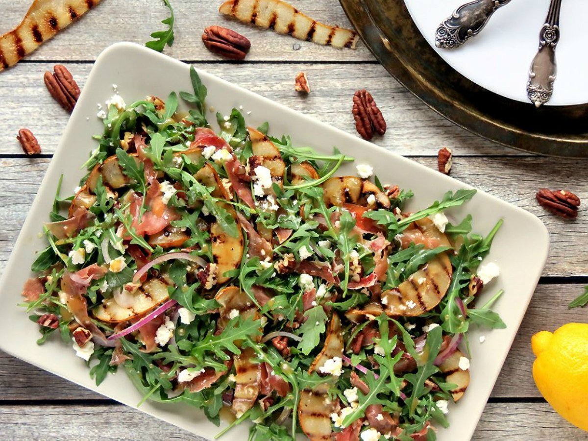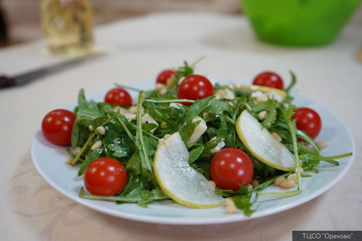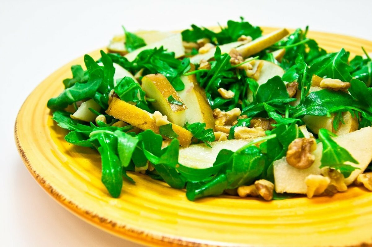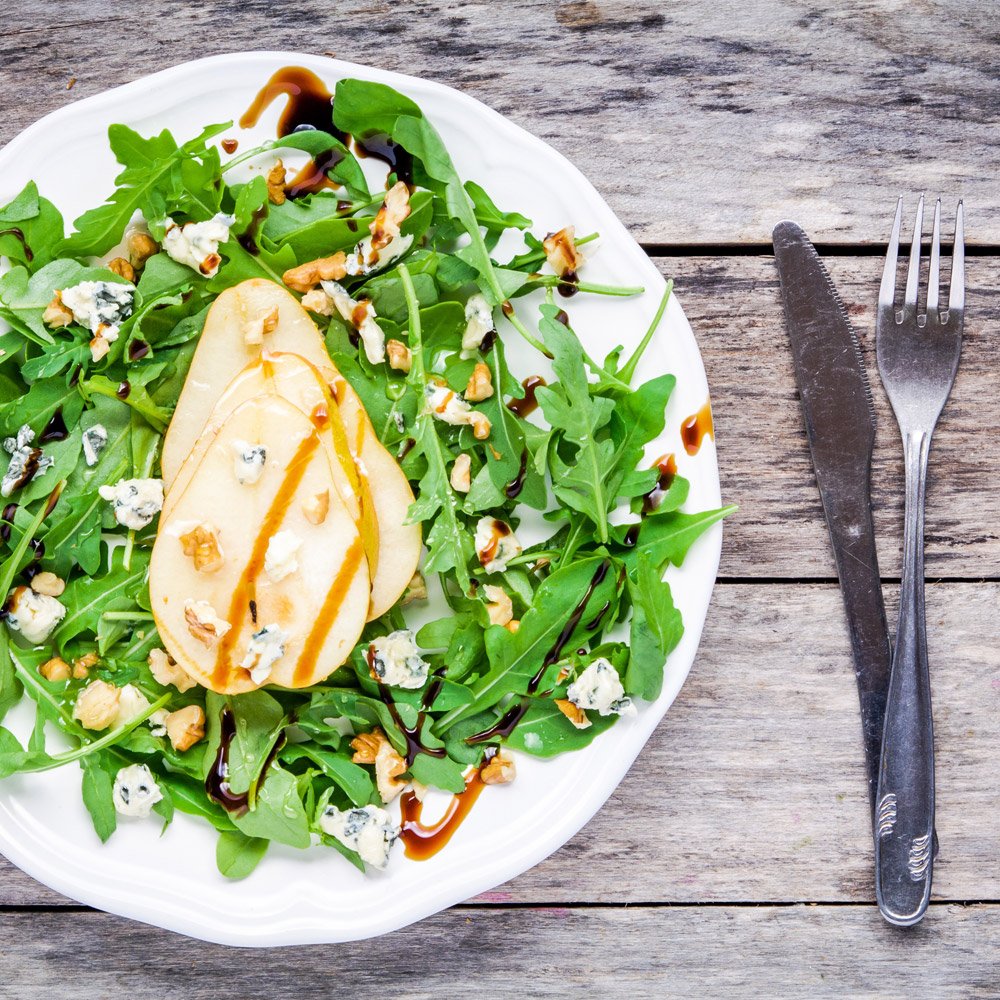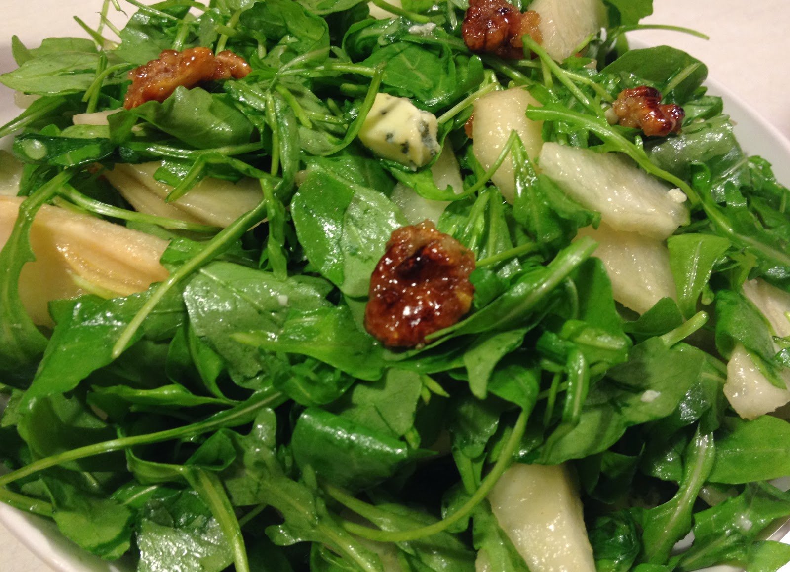 Салат с пармской ветчиной и грушей и сыром дор Блю