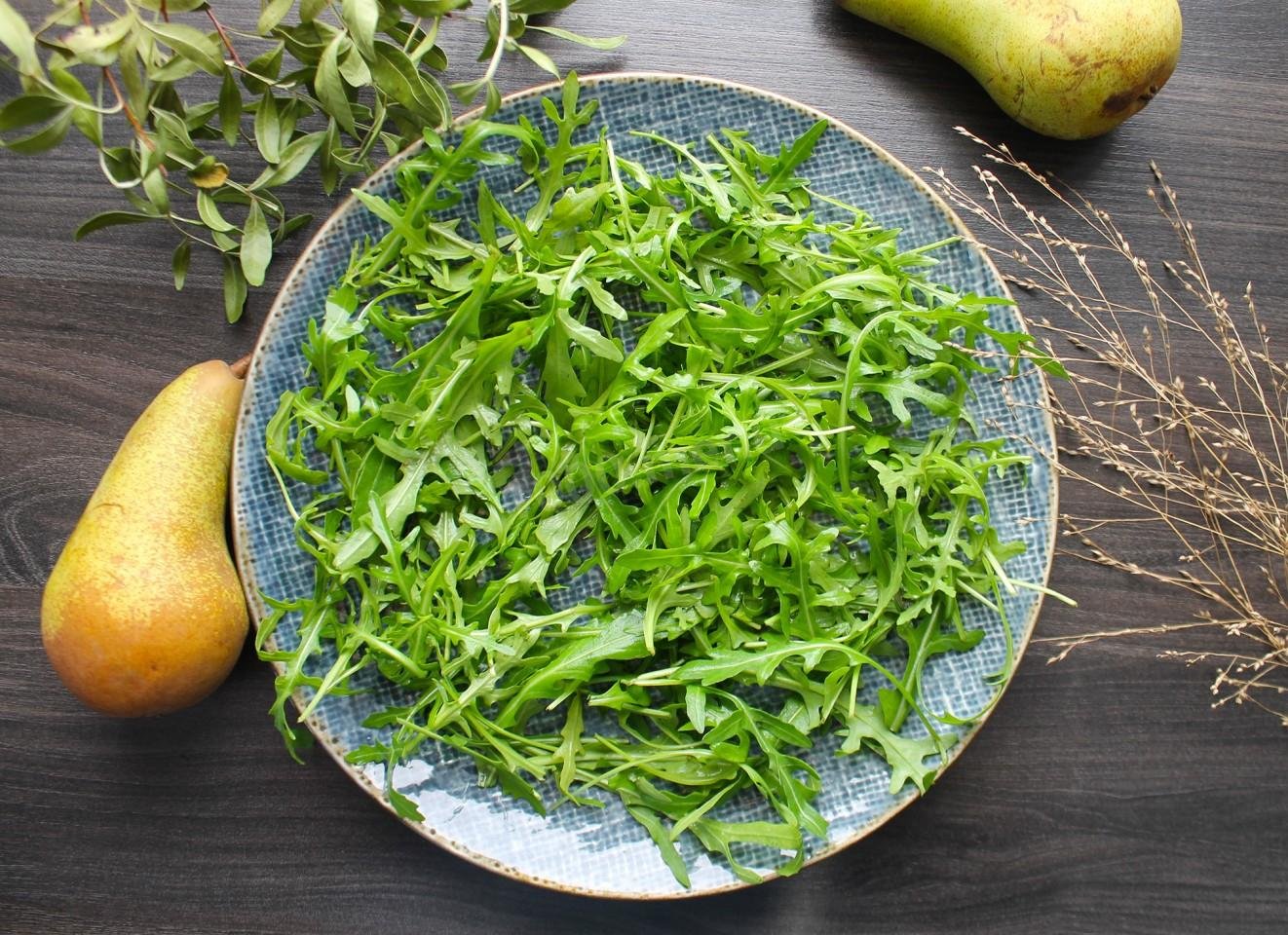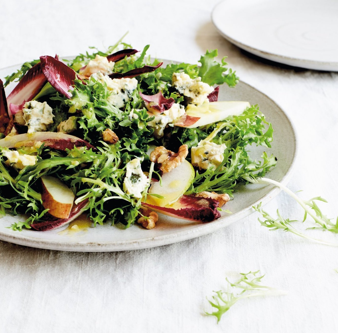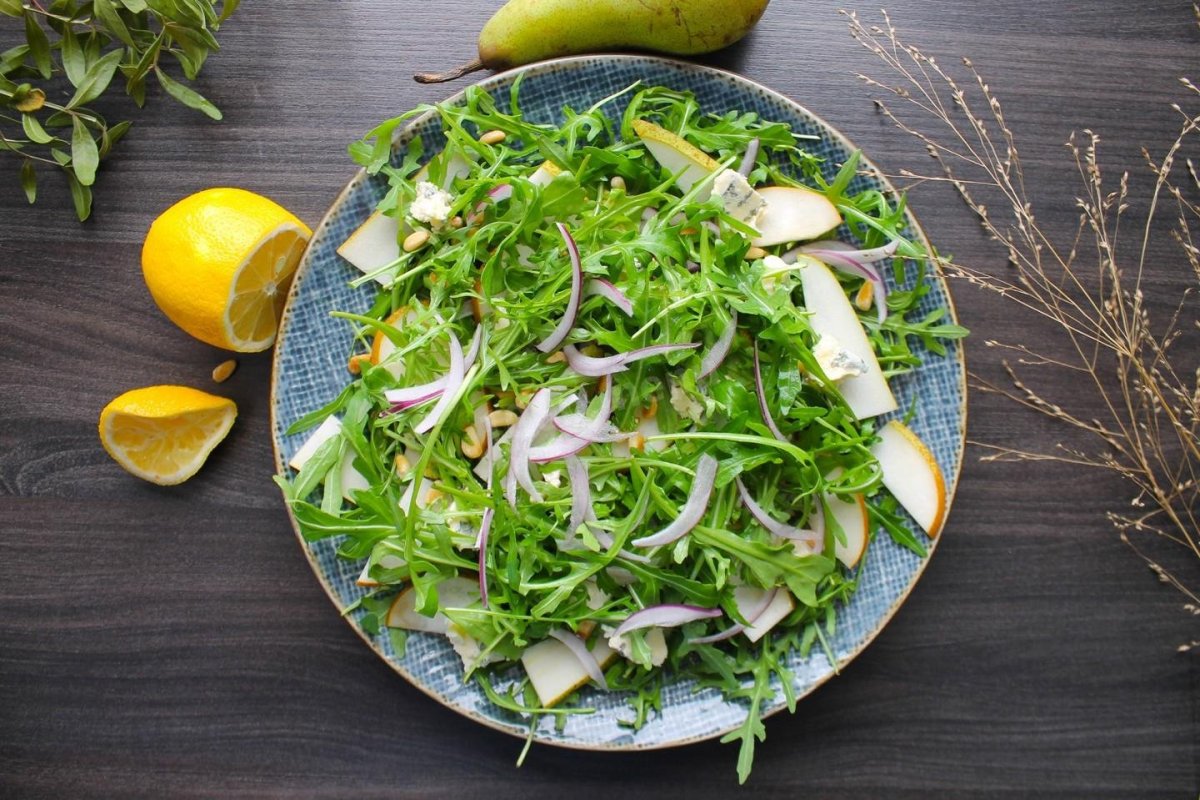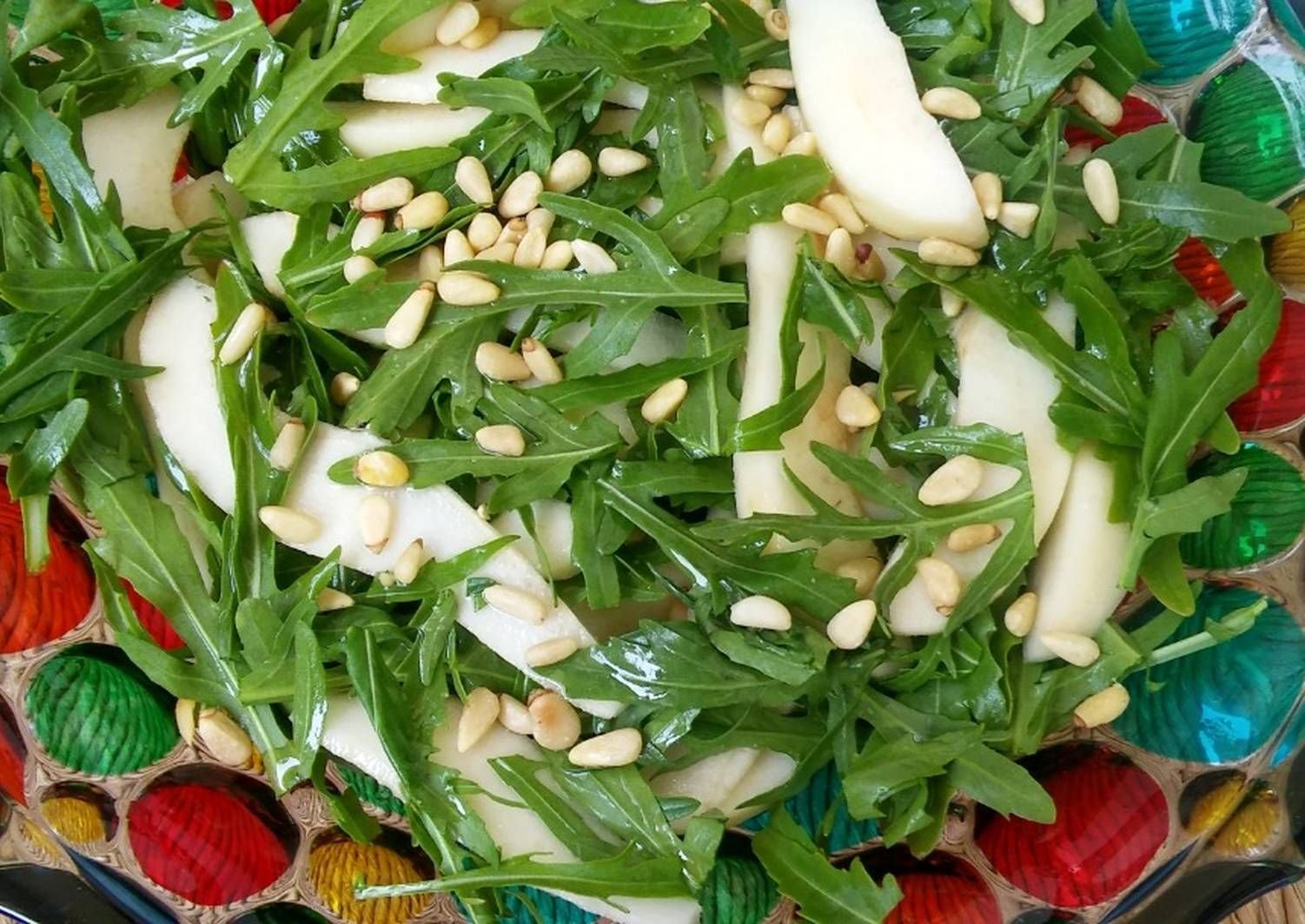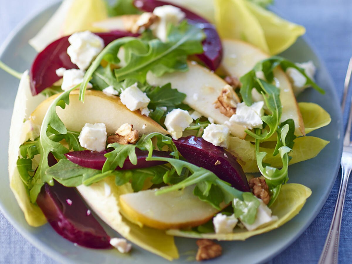 Салат с пармской ветчиной и грушей и сыром дор Блю