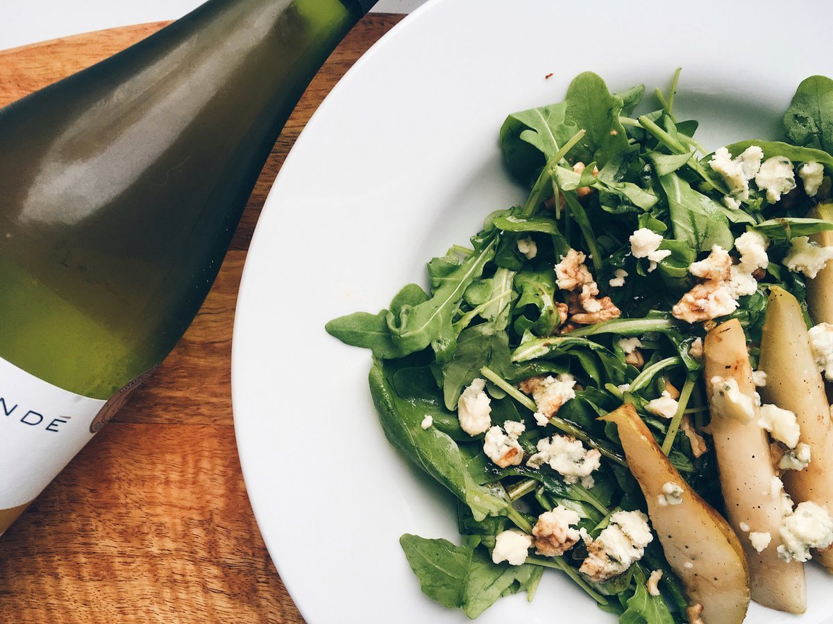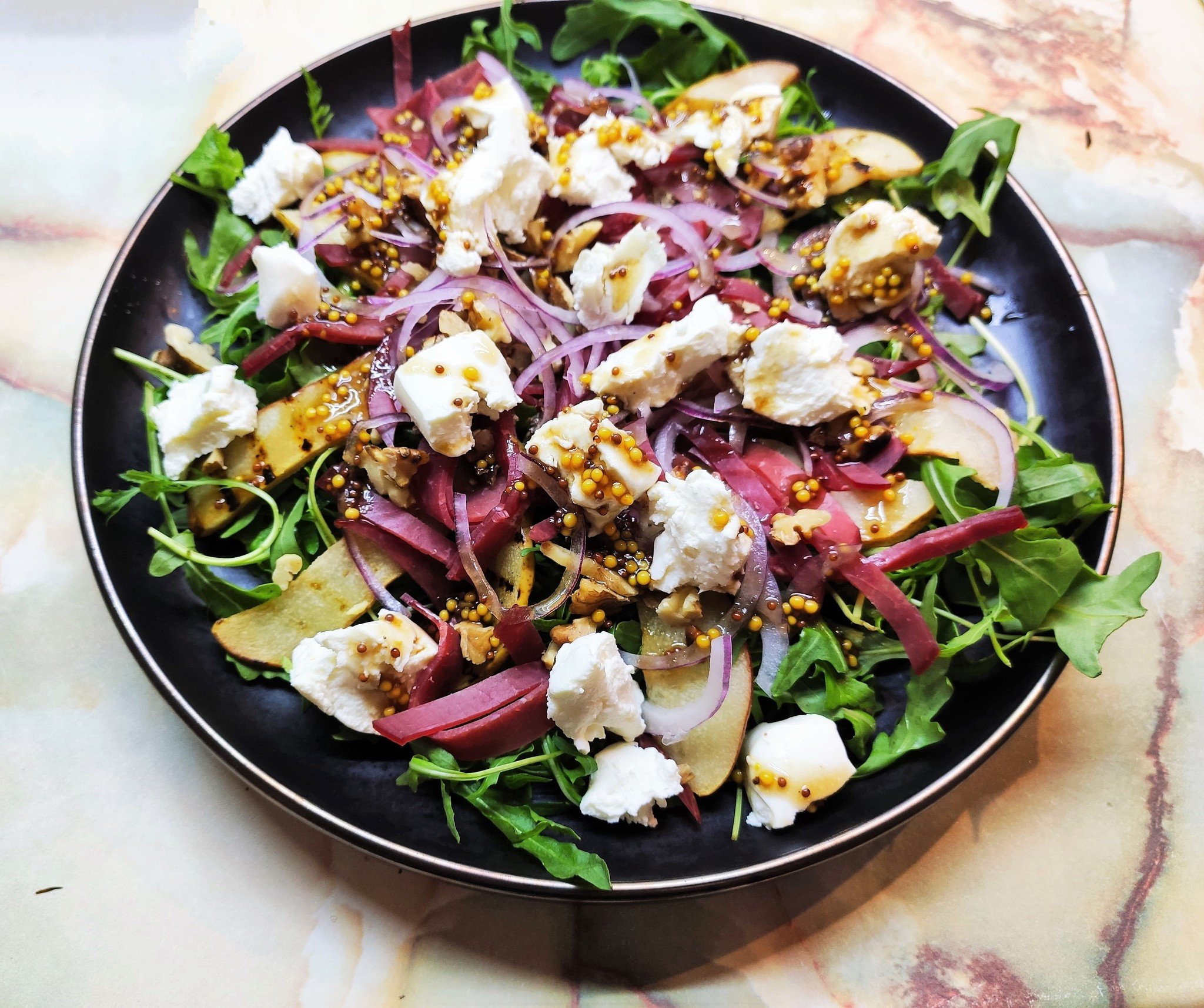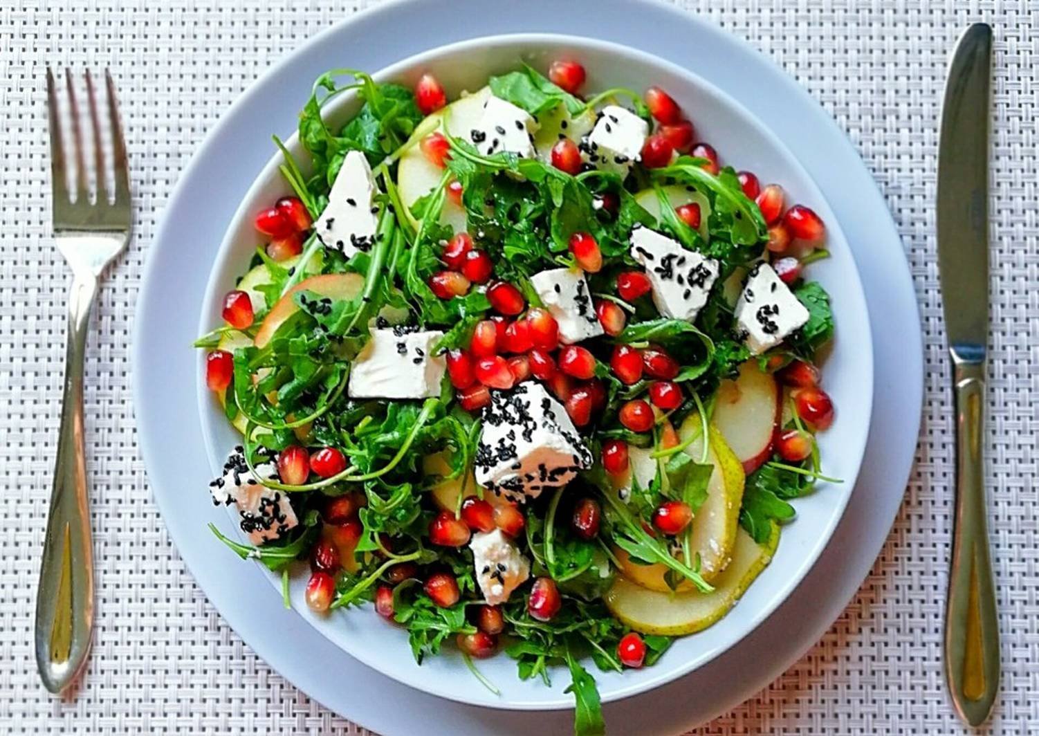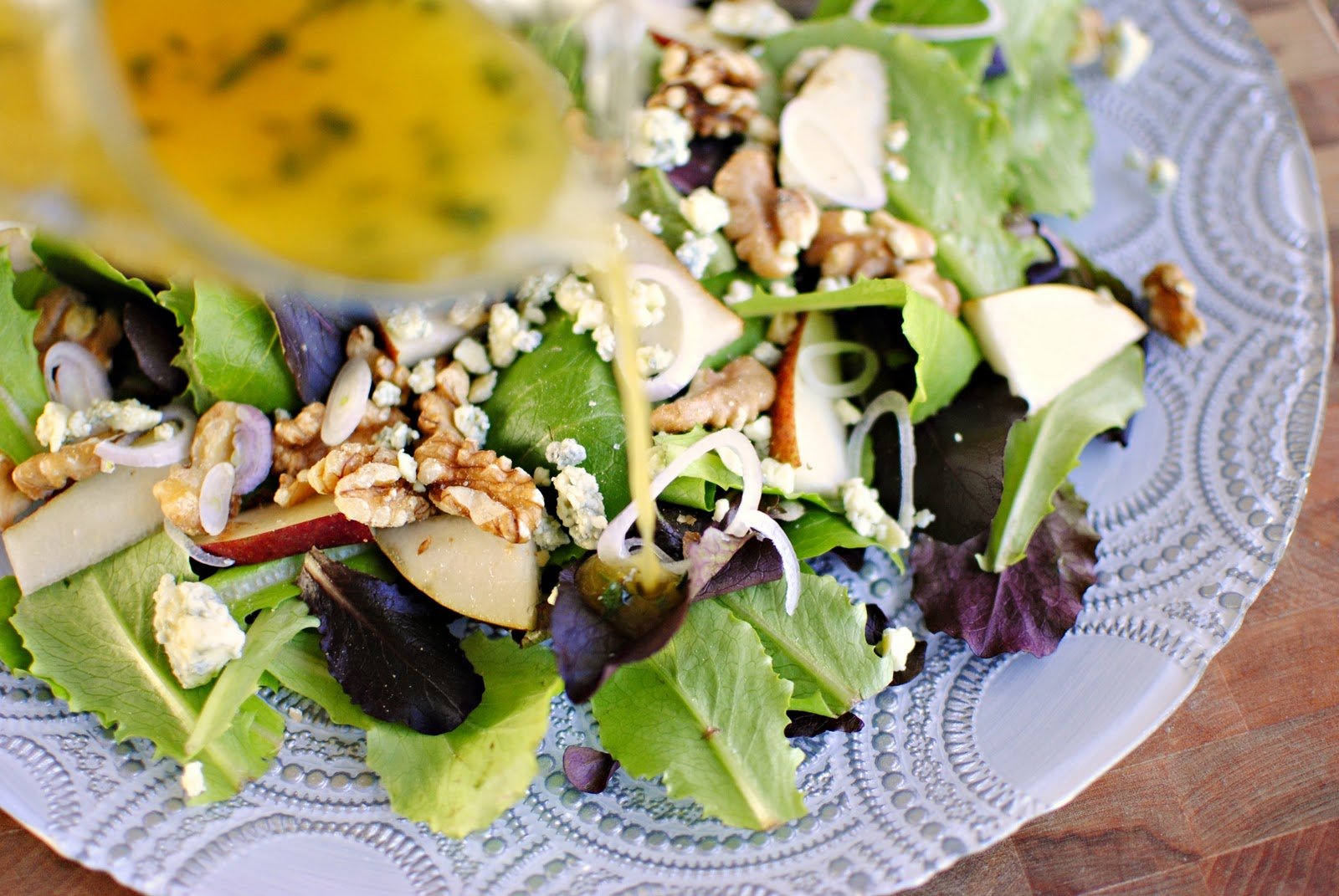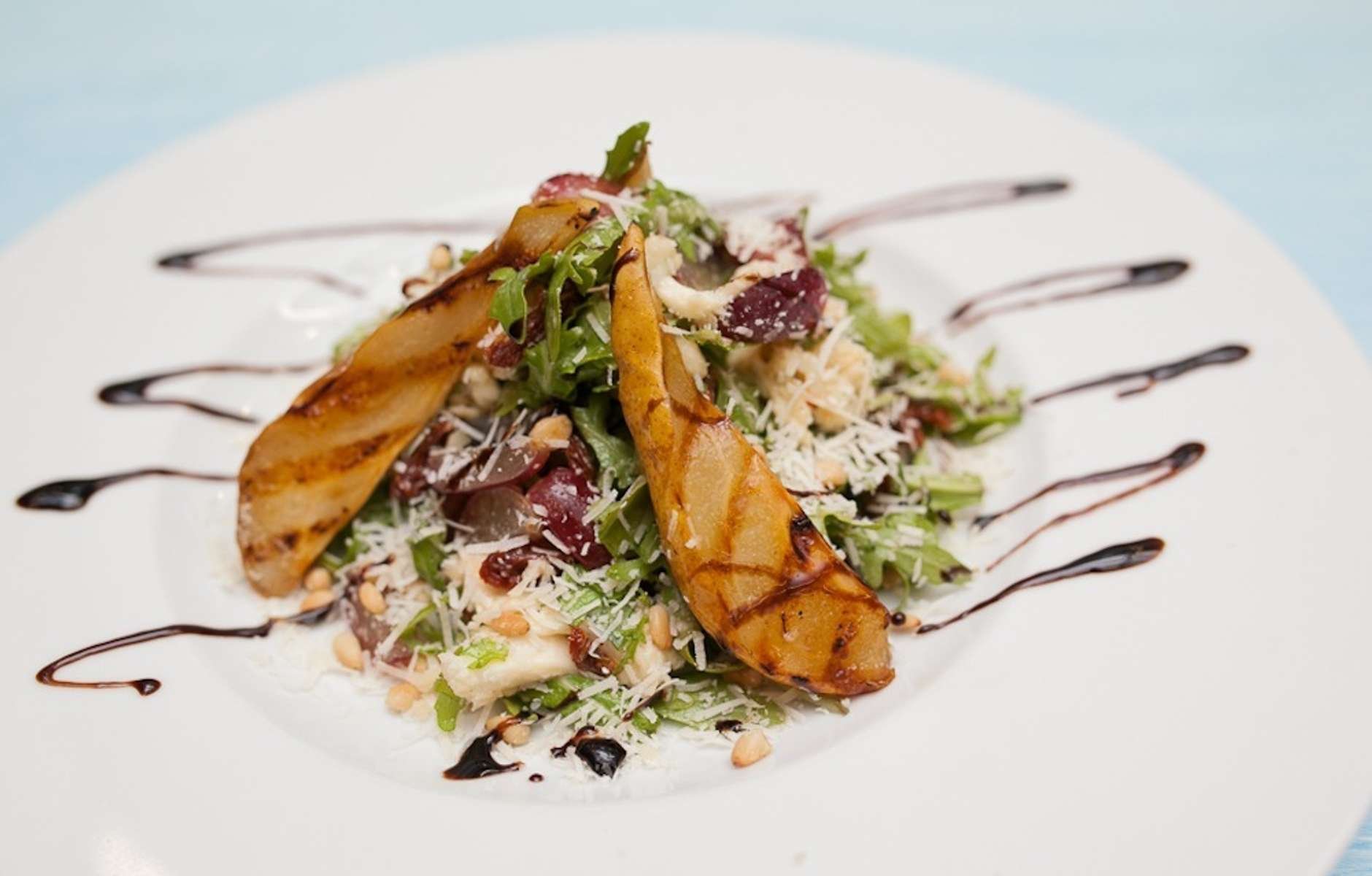 Салат с пармской ветчиной и грушей и сыром дор Блю