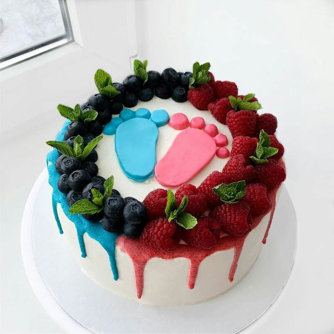 Торт на гендер пати с ягодами