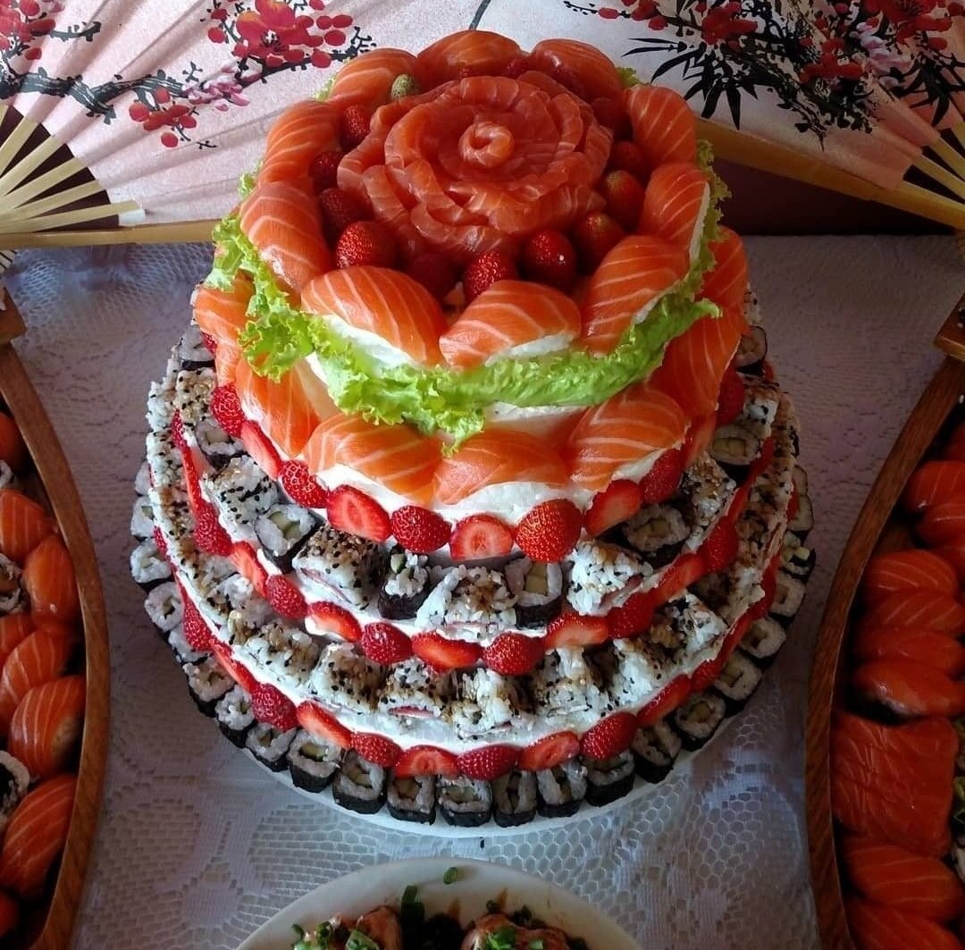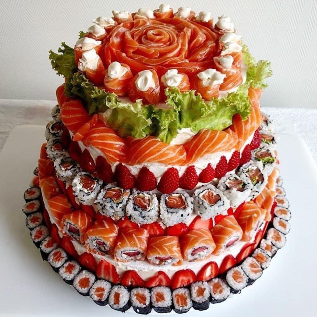 Торт из суши и роллов на день рождения