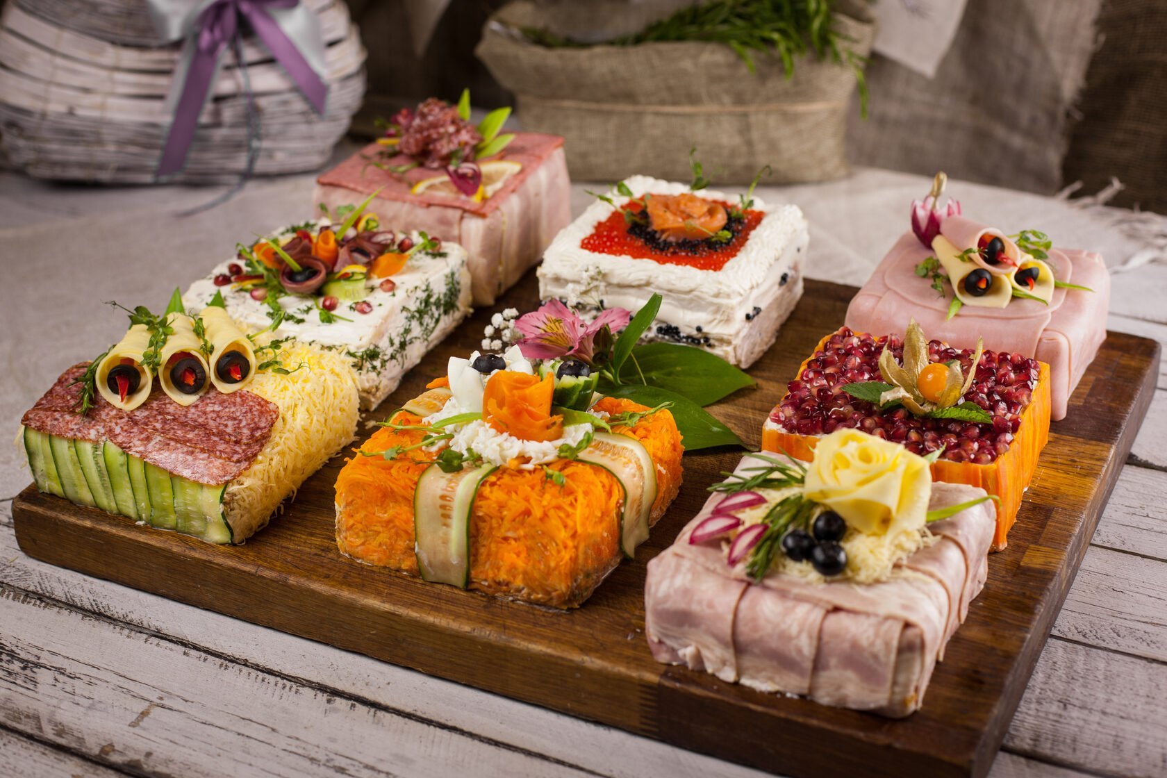 Украсить закусочный торт