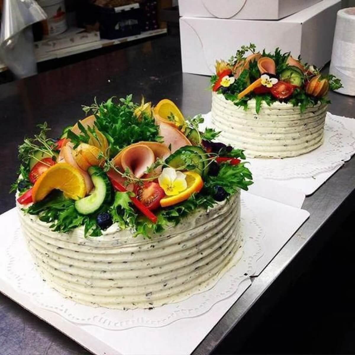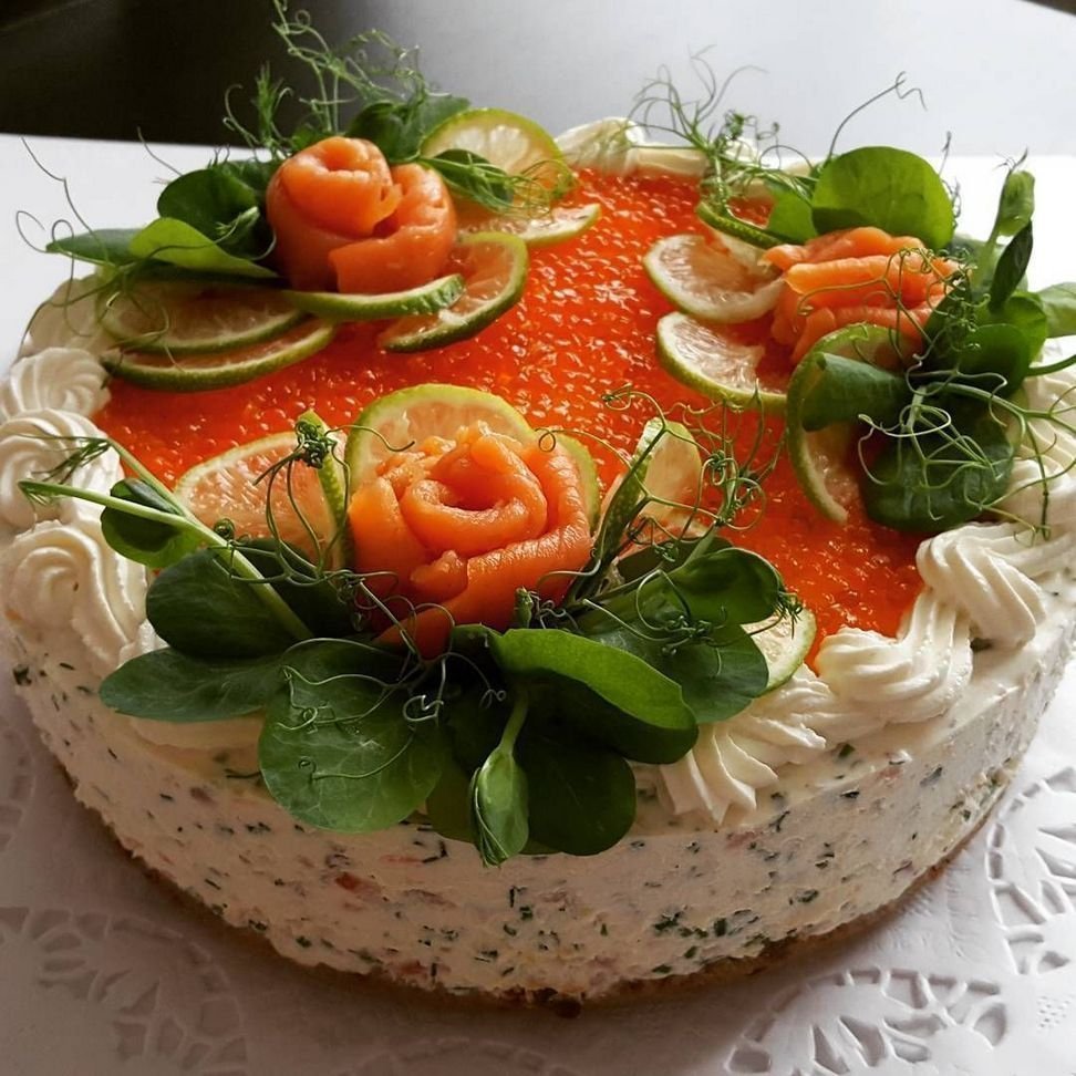 Красивое оформление закусочных тортов