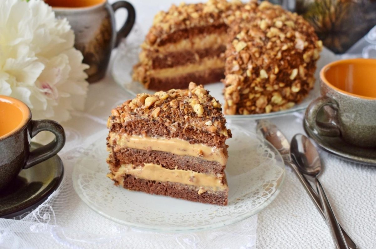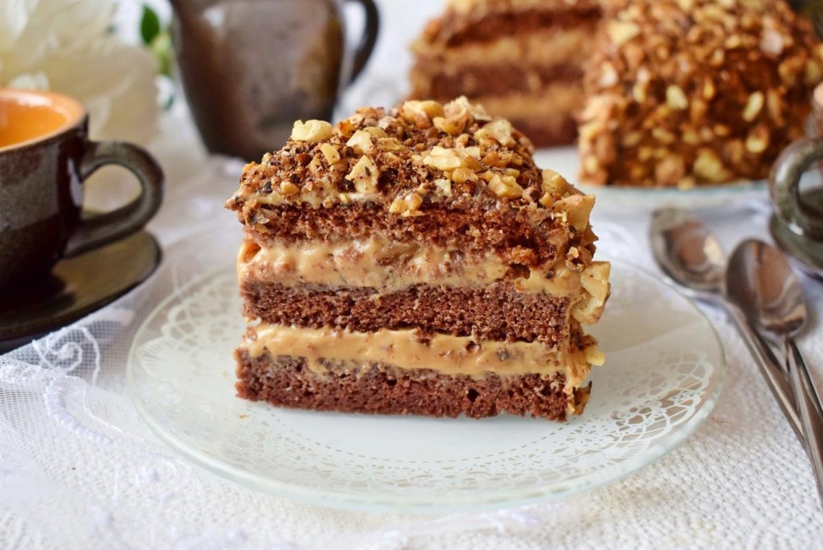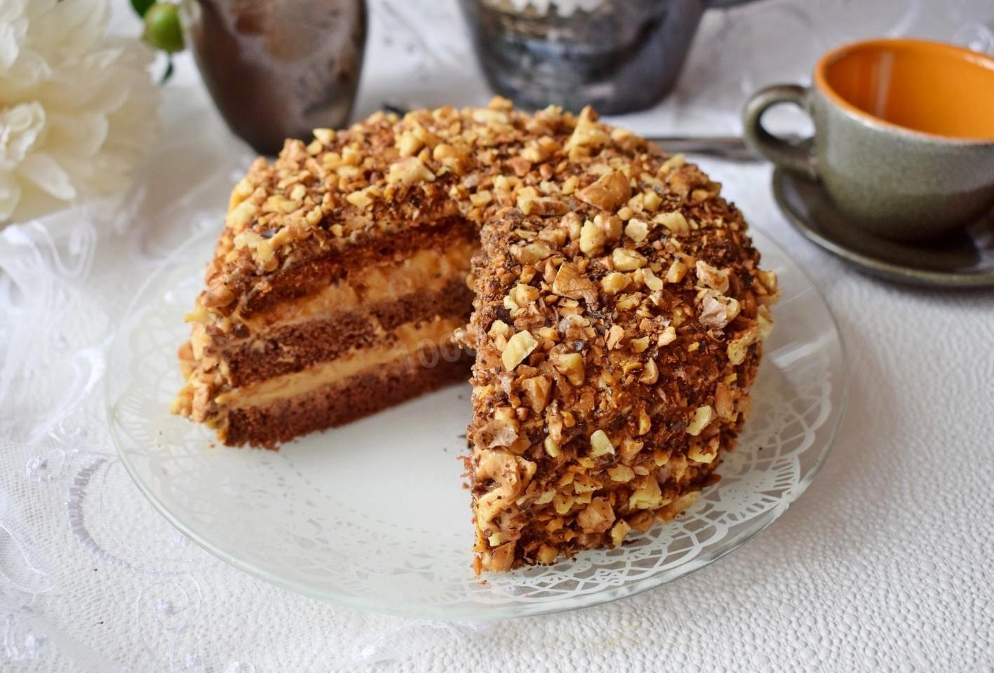Торт со сгущёнкой и орехами грецкими Лакомка