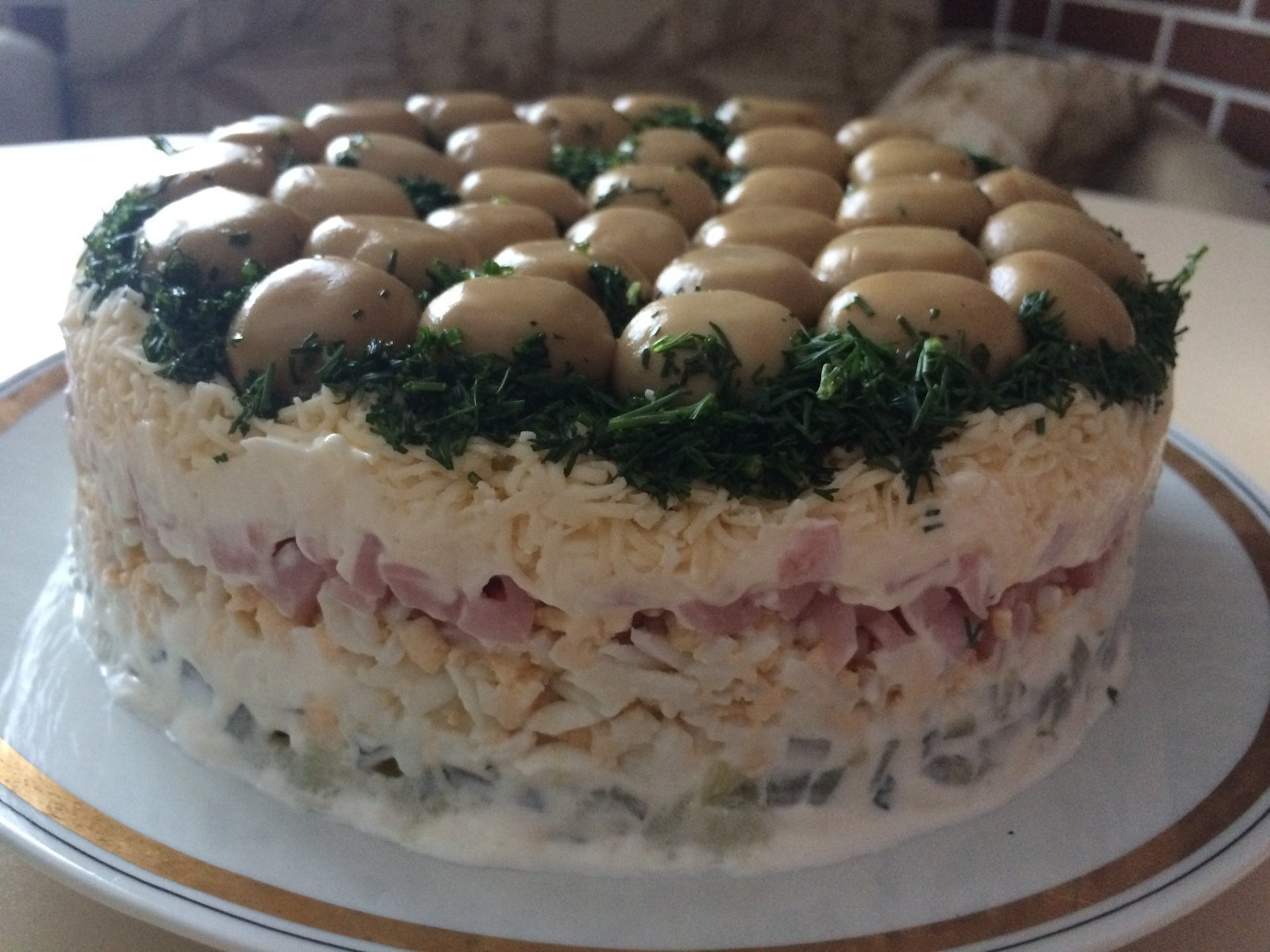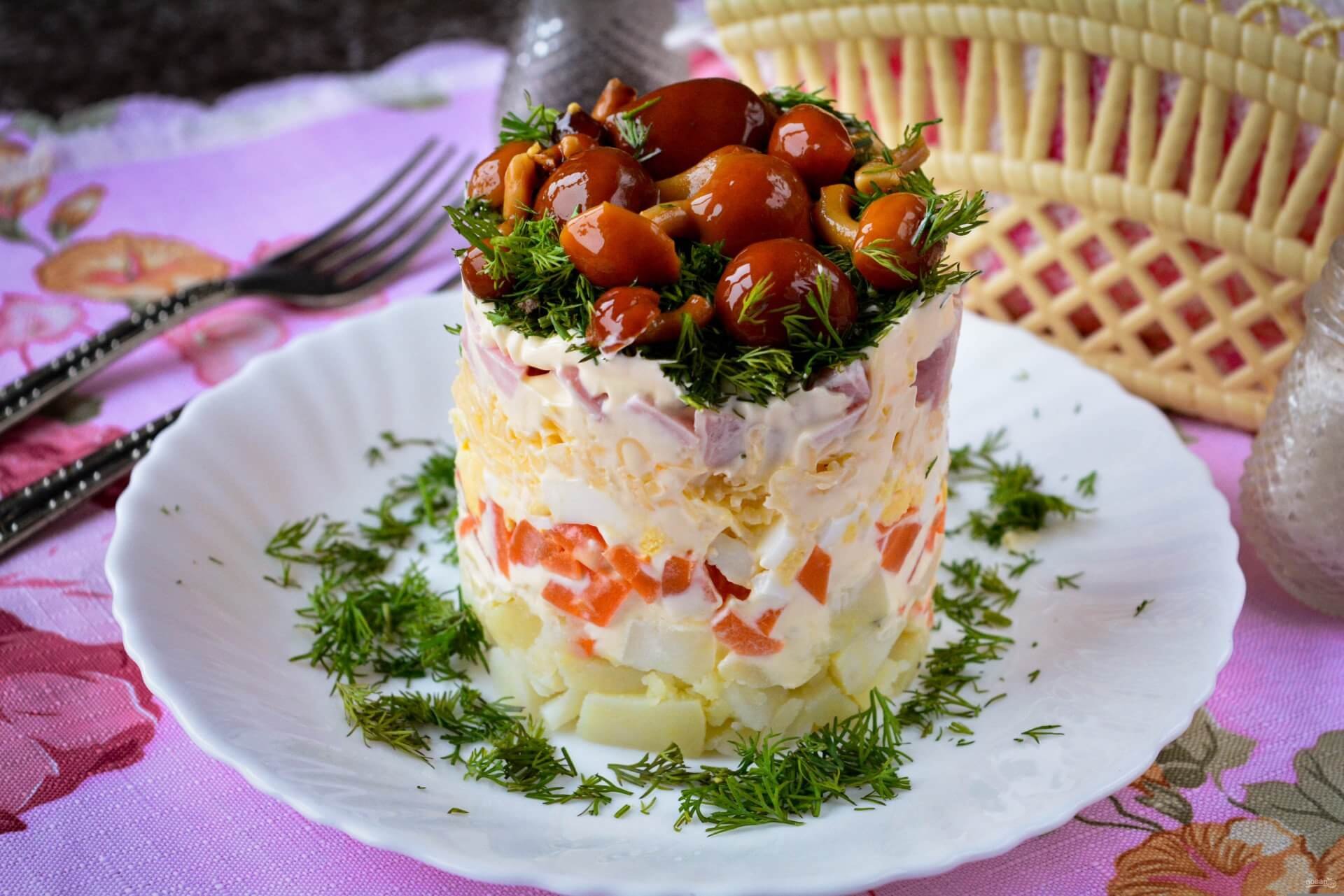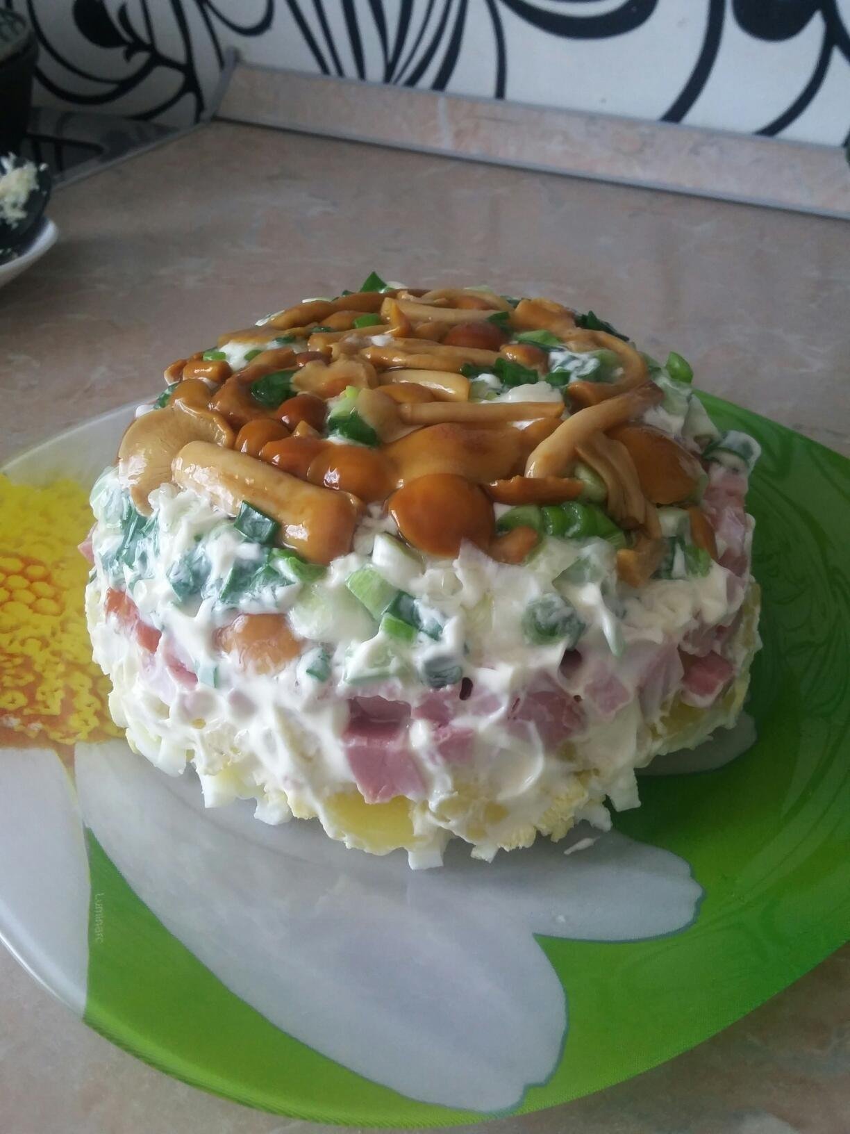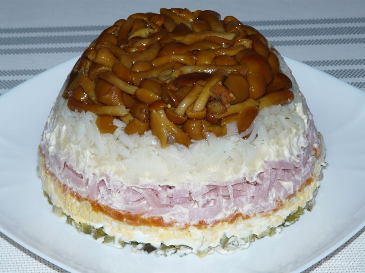 Салаты с маринованными опятами и ветчиной рецепт с фото слоями