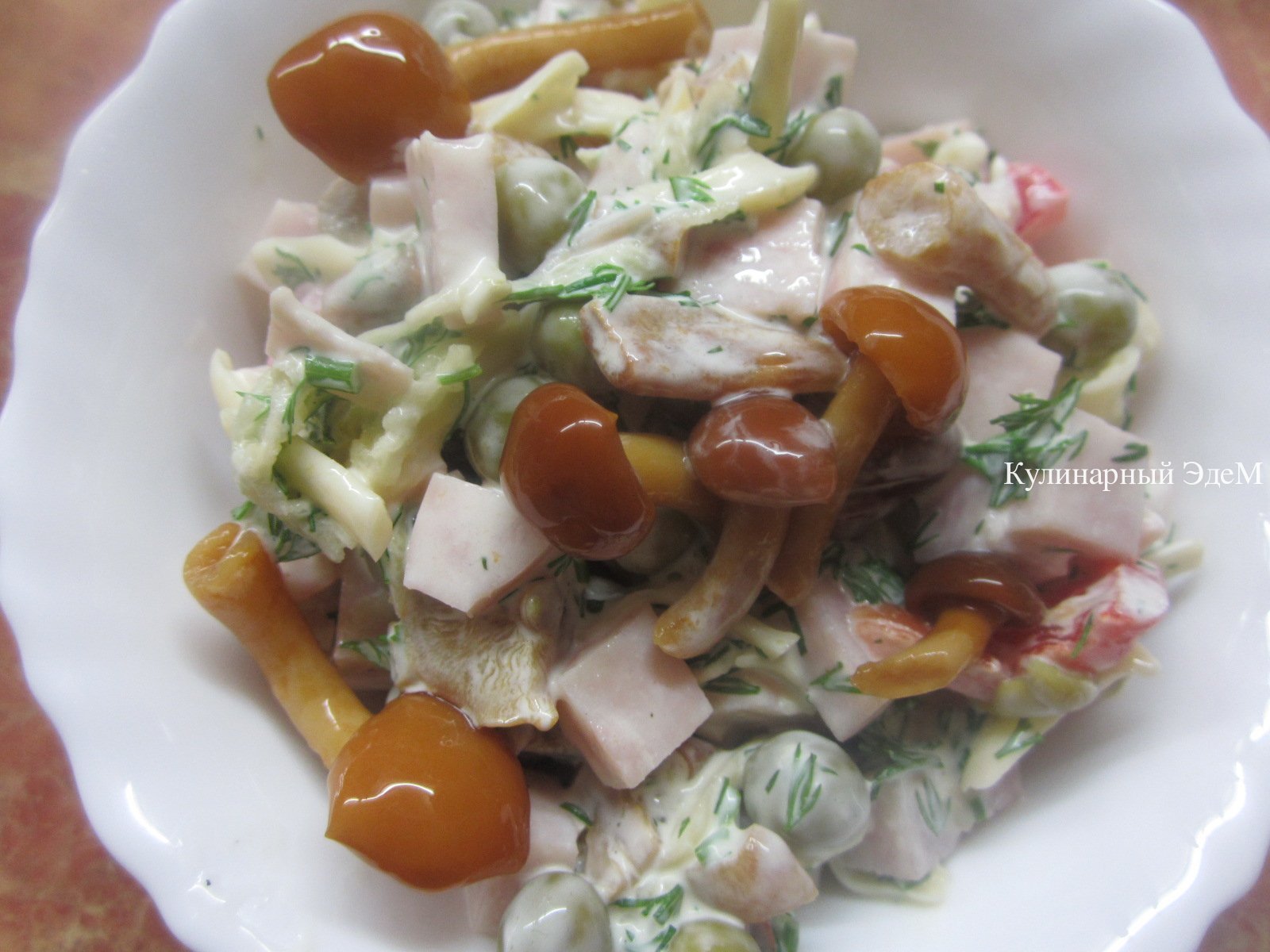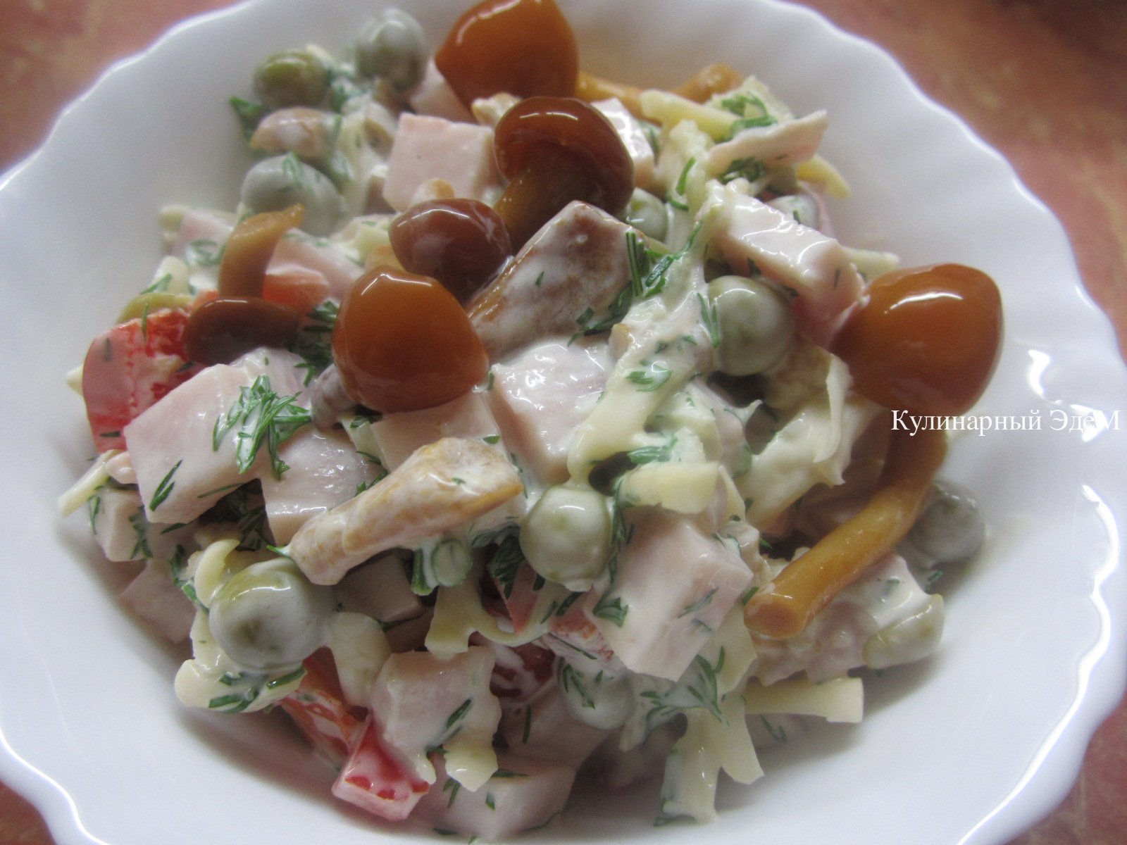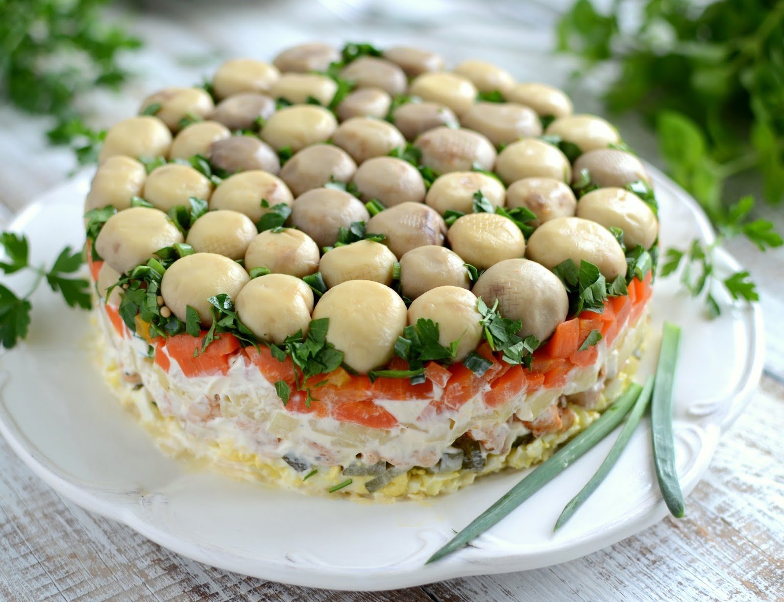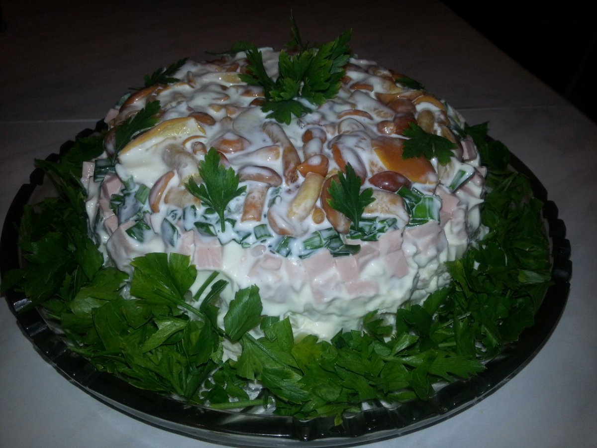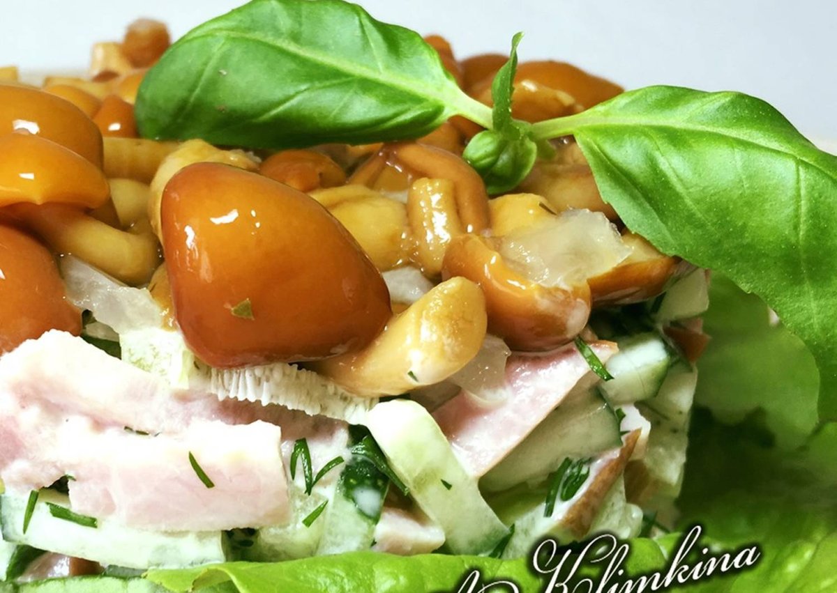 Салаты с маринованными опятами и ветчиной рецепт с фото слоями