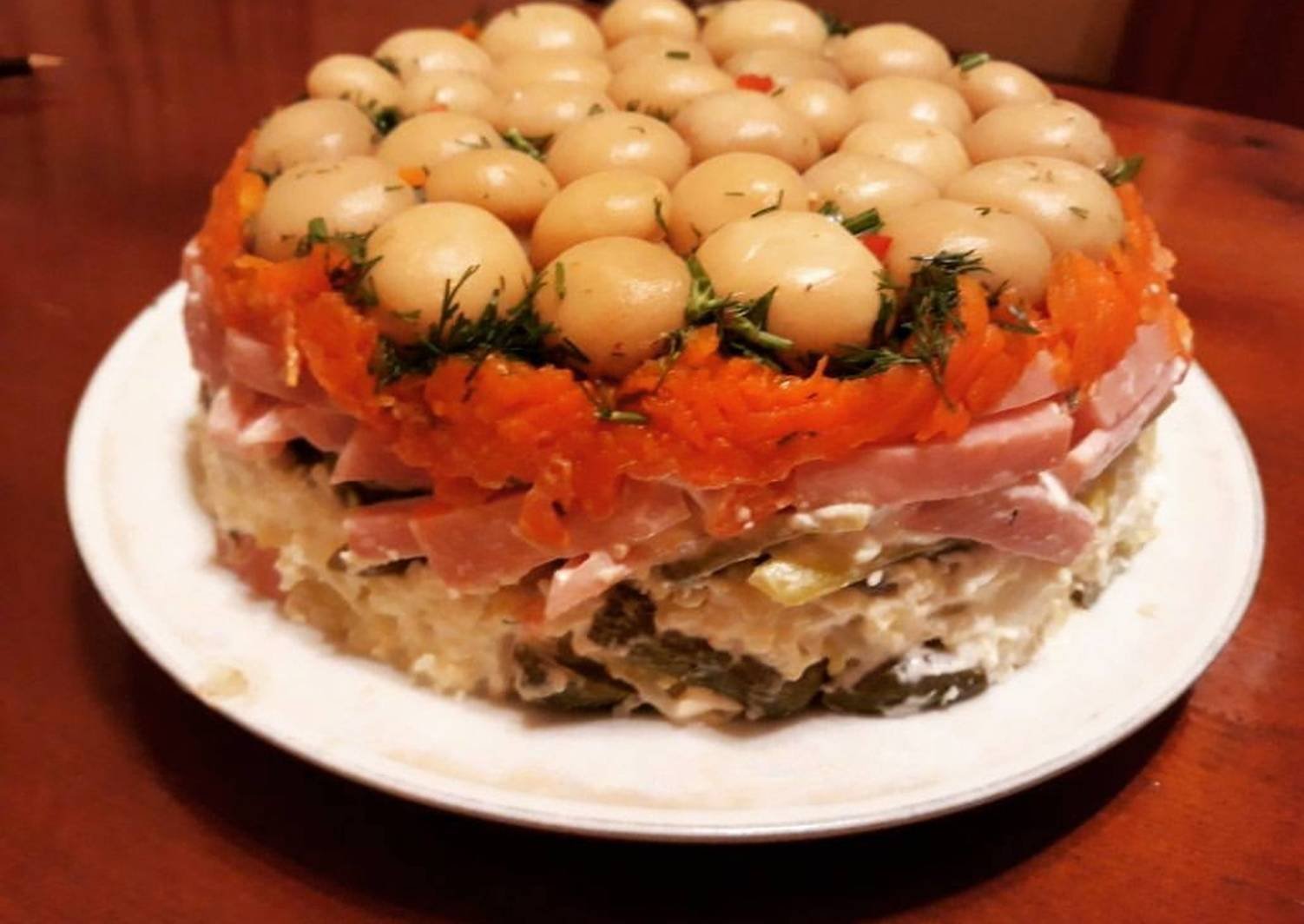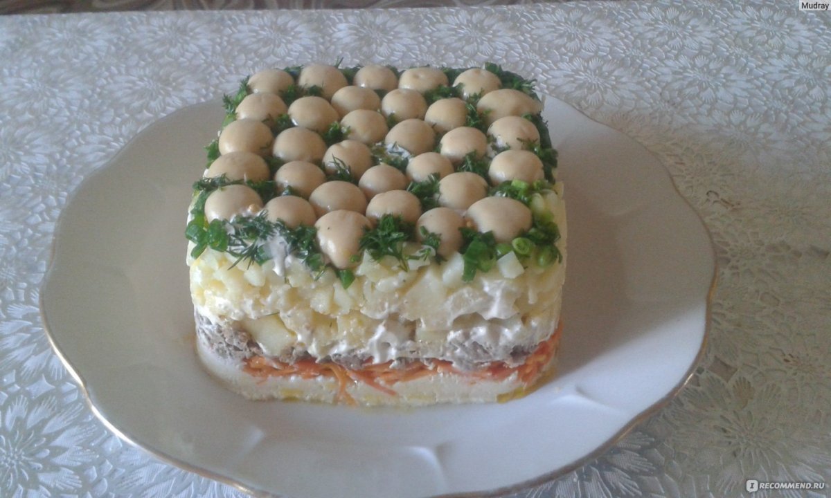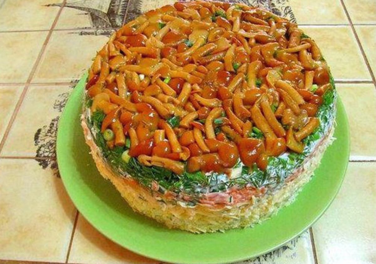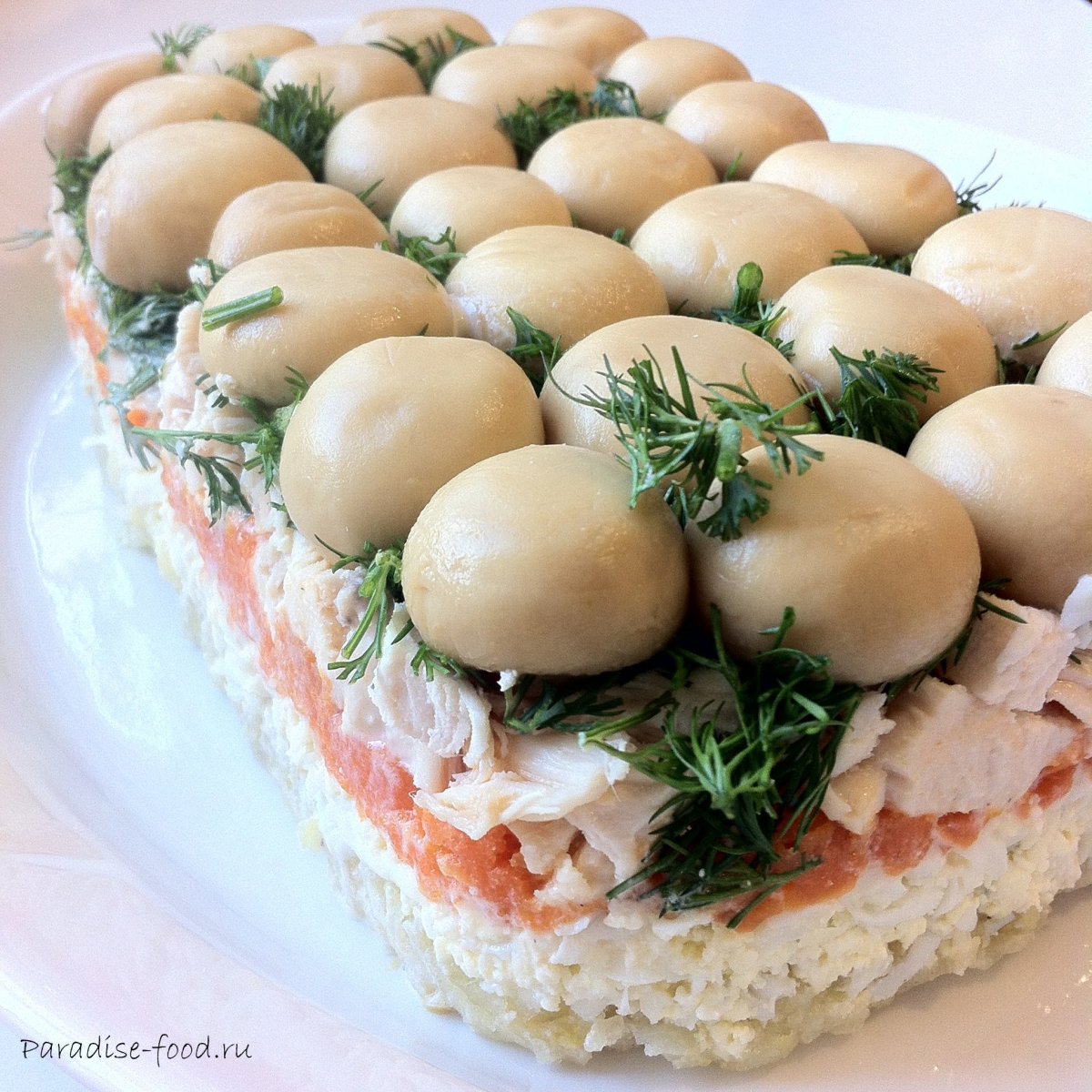 Салаты с маринованными опятами и ветчиной рецепт с фото слоями