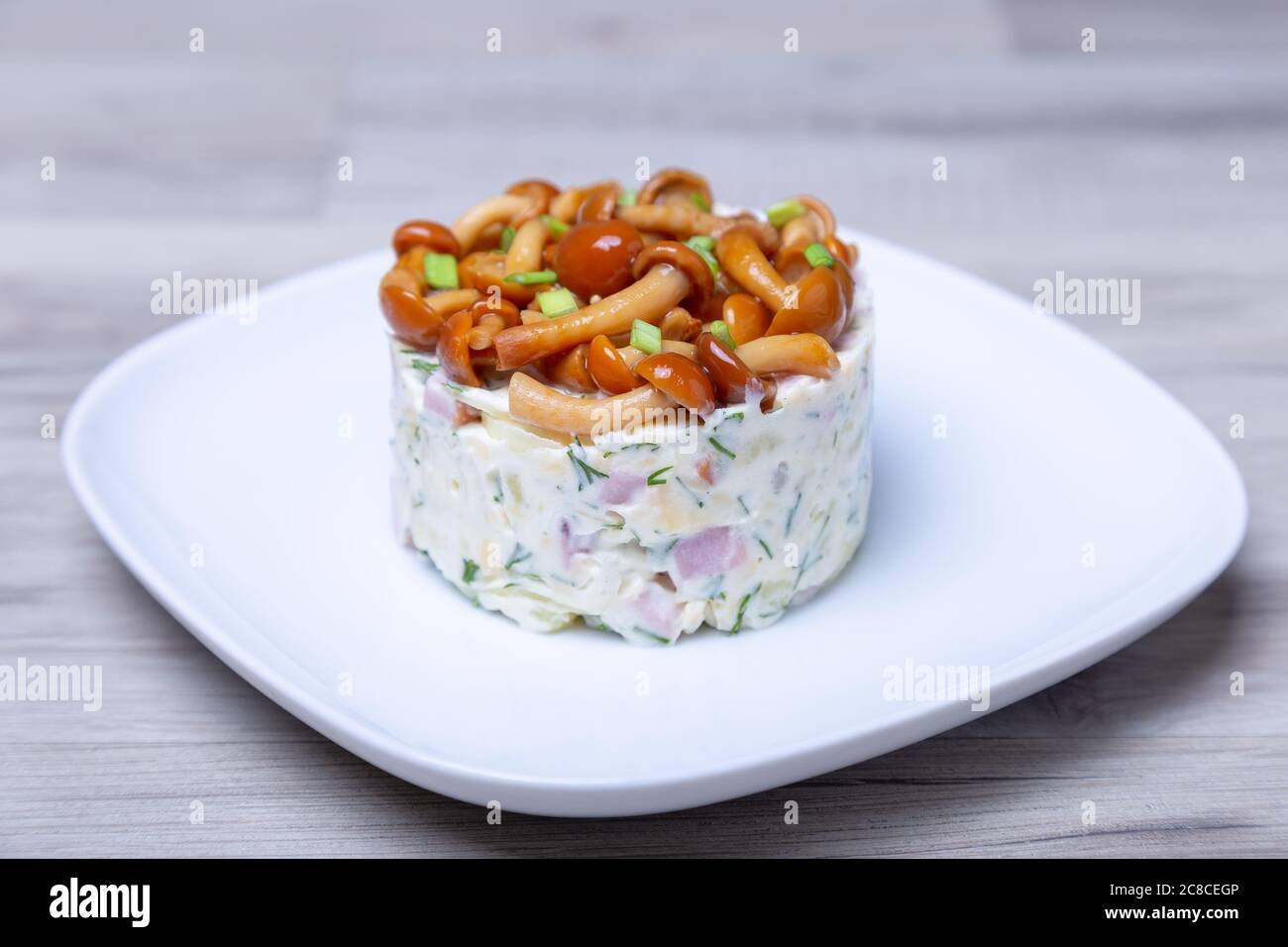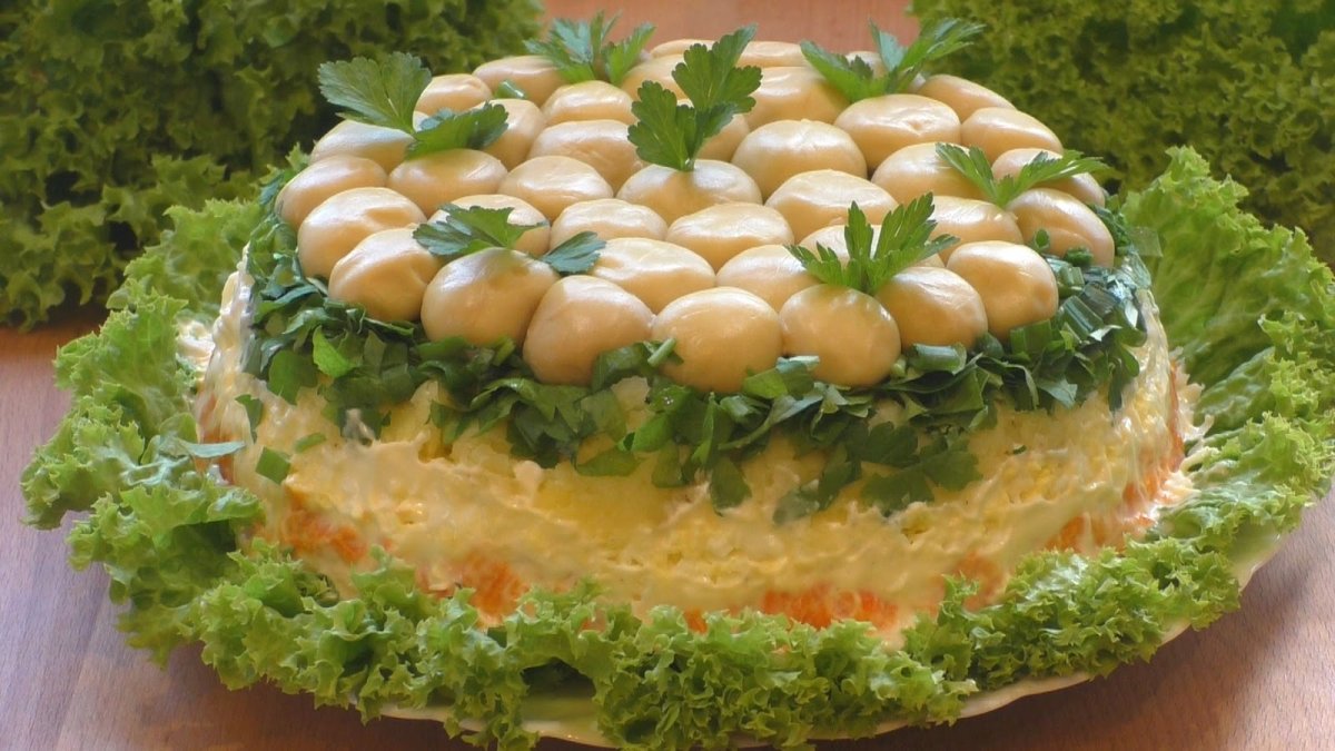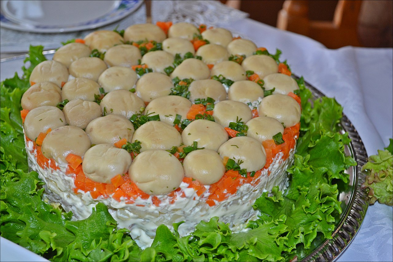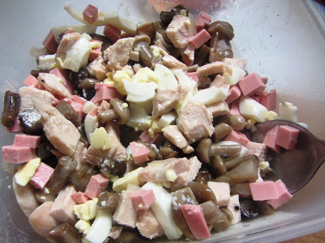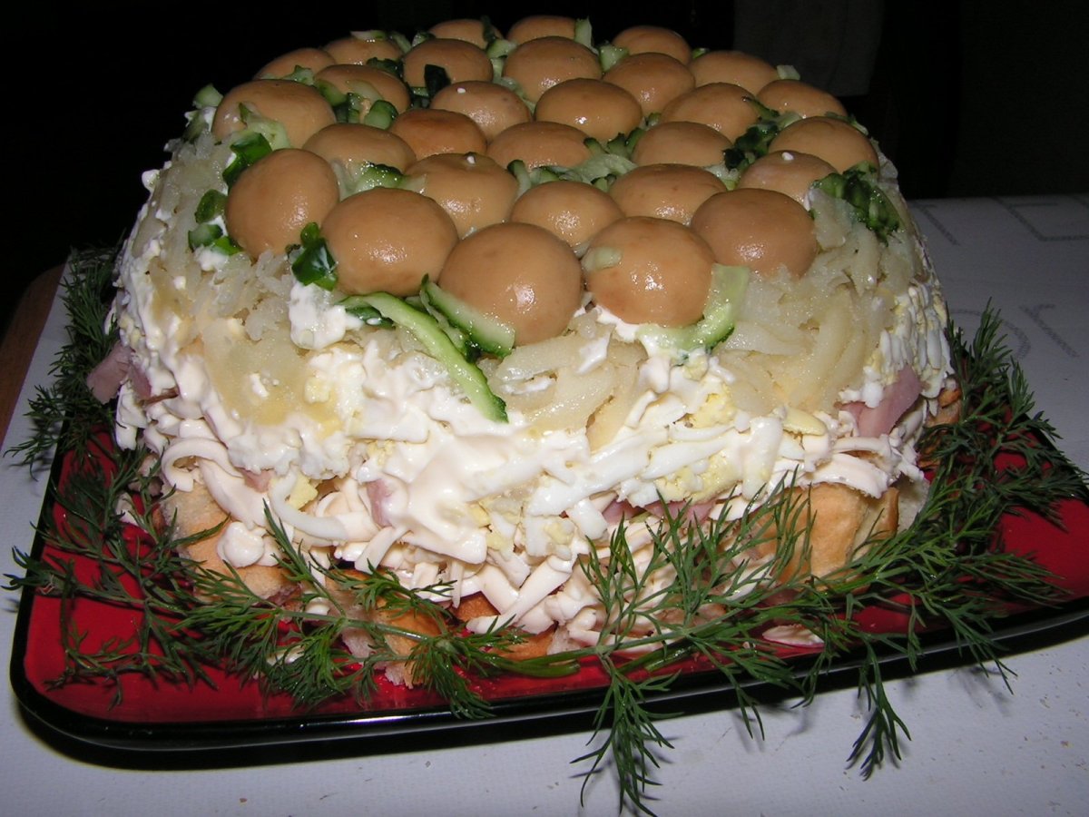 Салаты с маринованными опятами и ветчиной рецепт с фото слоями
