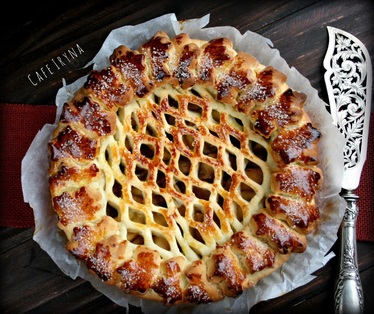 Открытый пирог с яблоками из дрожжевого теста в духовке