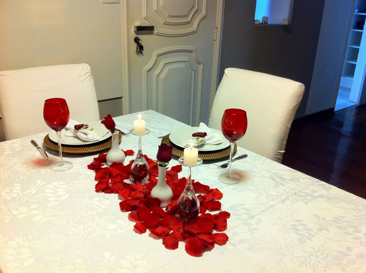 Украшение стола на романтический ужин