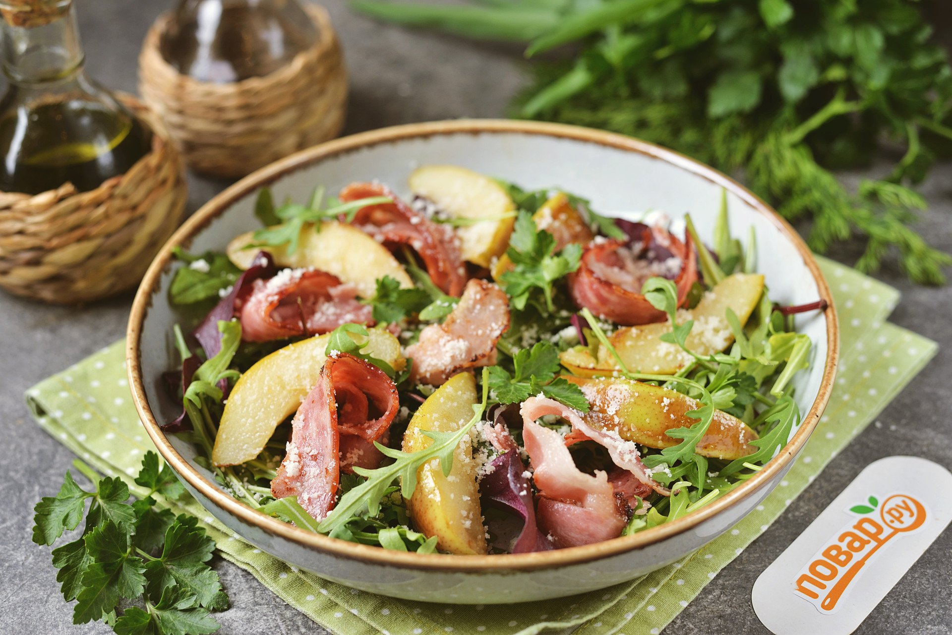 Салат с грушей и беконом