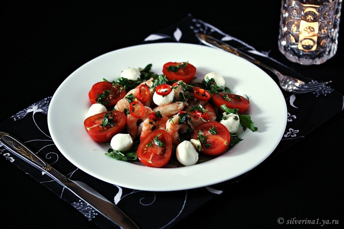 Руккола черри креветки моцарелла
