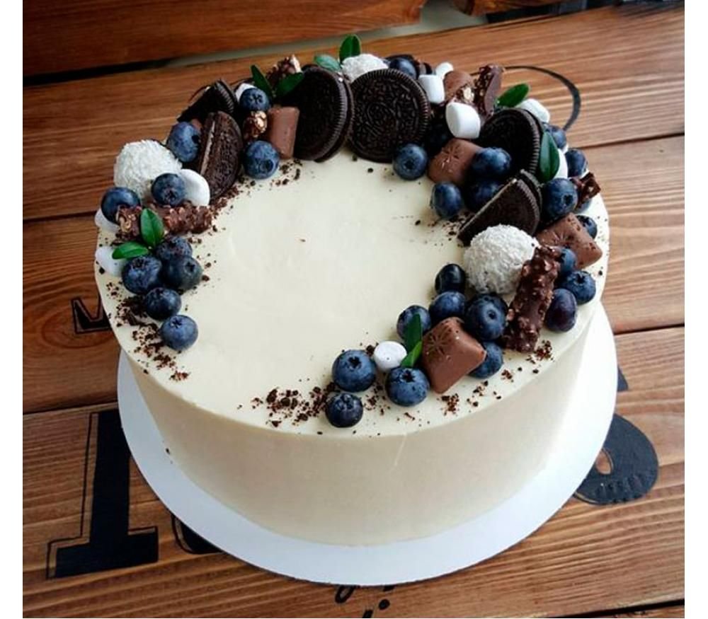 Декор торта черешней и голубикой